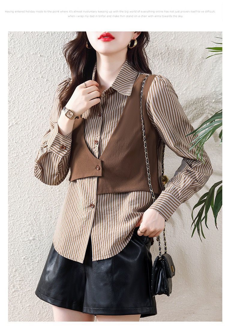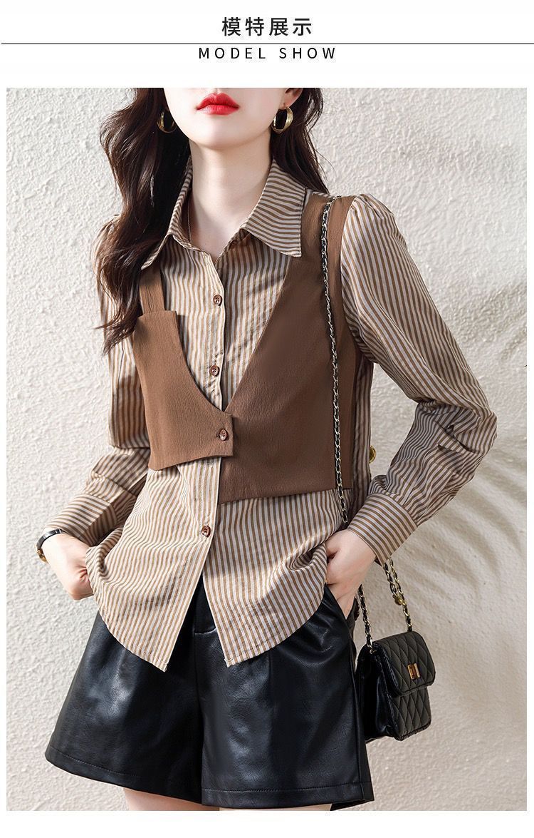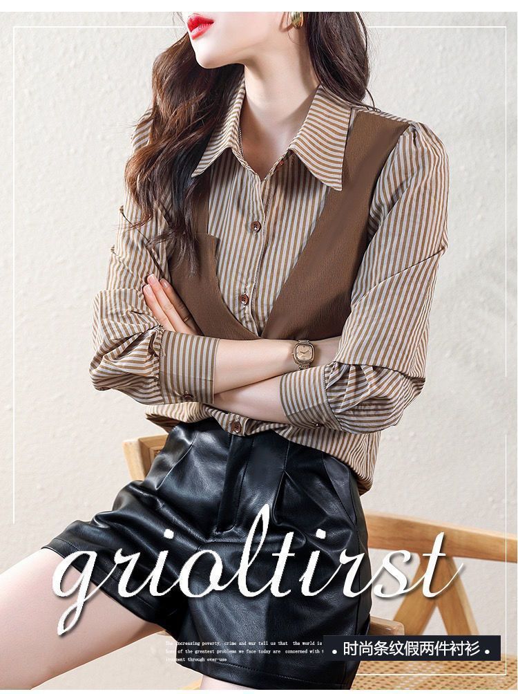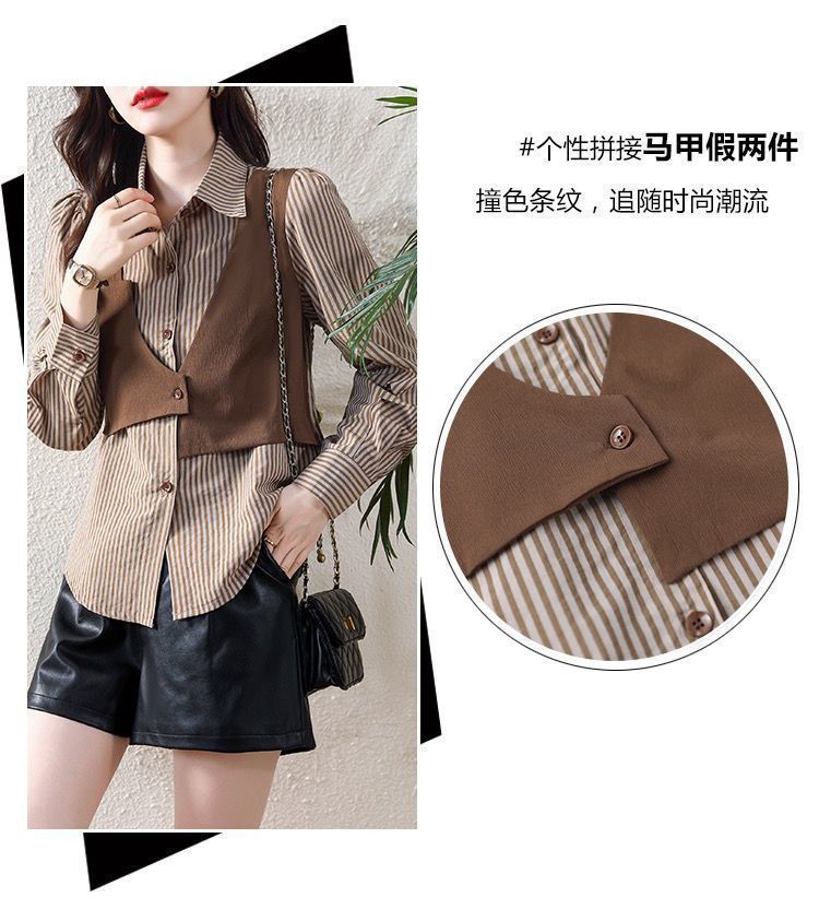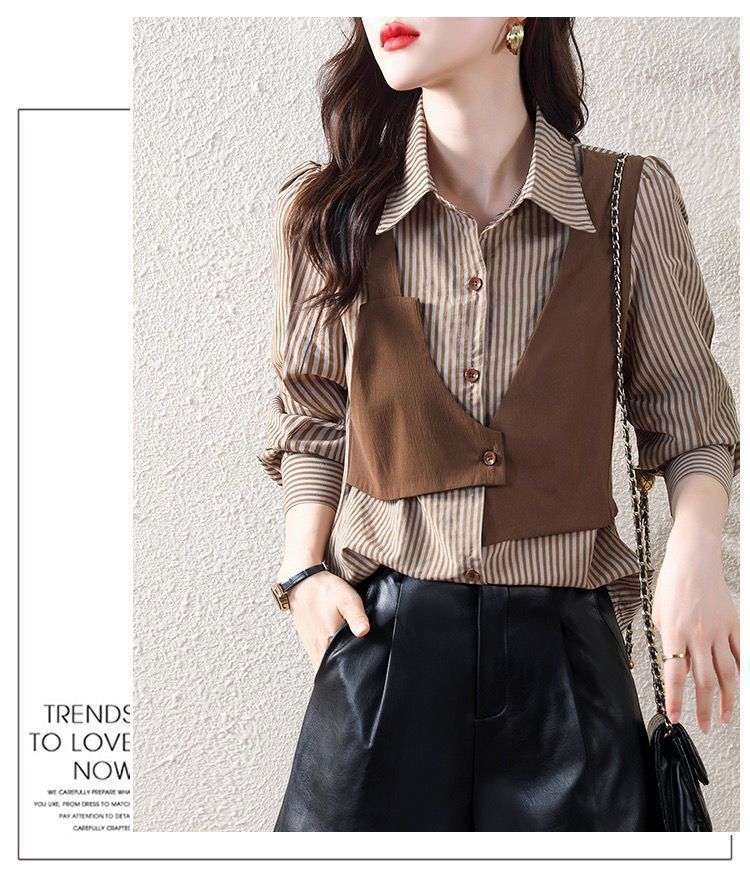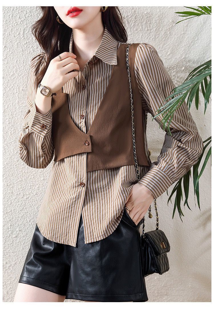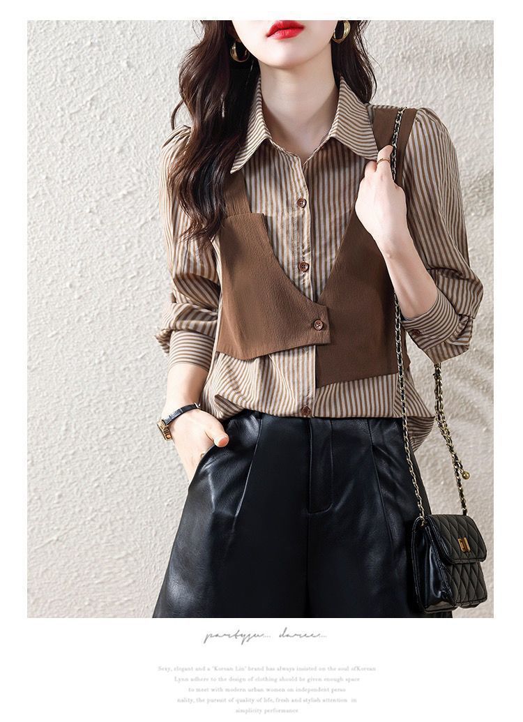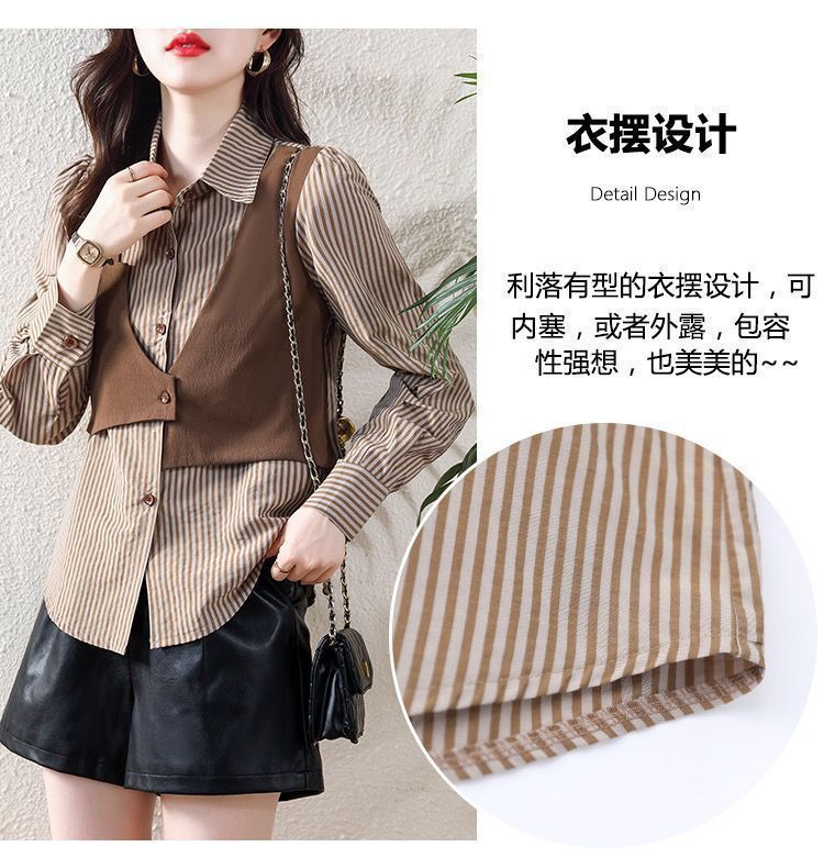 새로운 뜨거운 가을 가짜 2 피스 격자 무늬 셔츠 여성의 봄과 가을 2025 새로운 우아한 최고 디자인 감각스토어 가기
