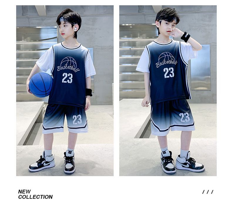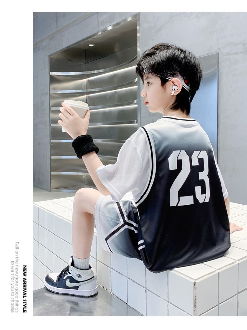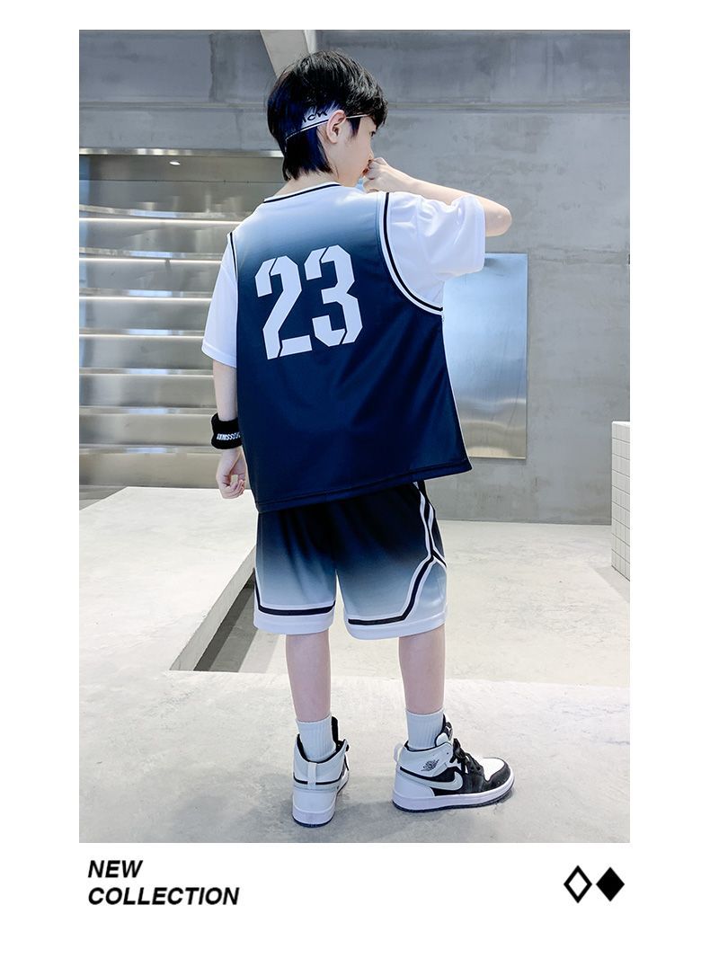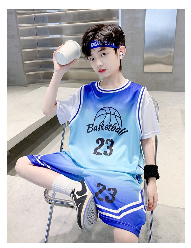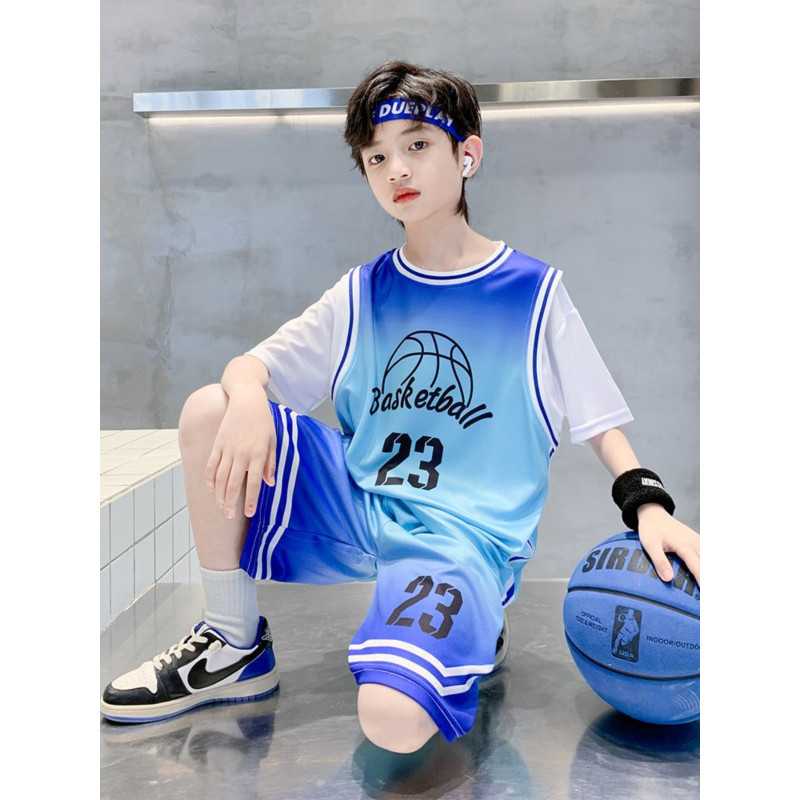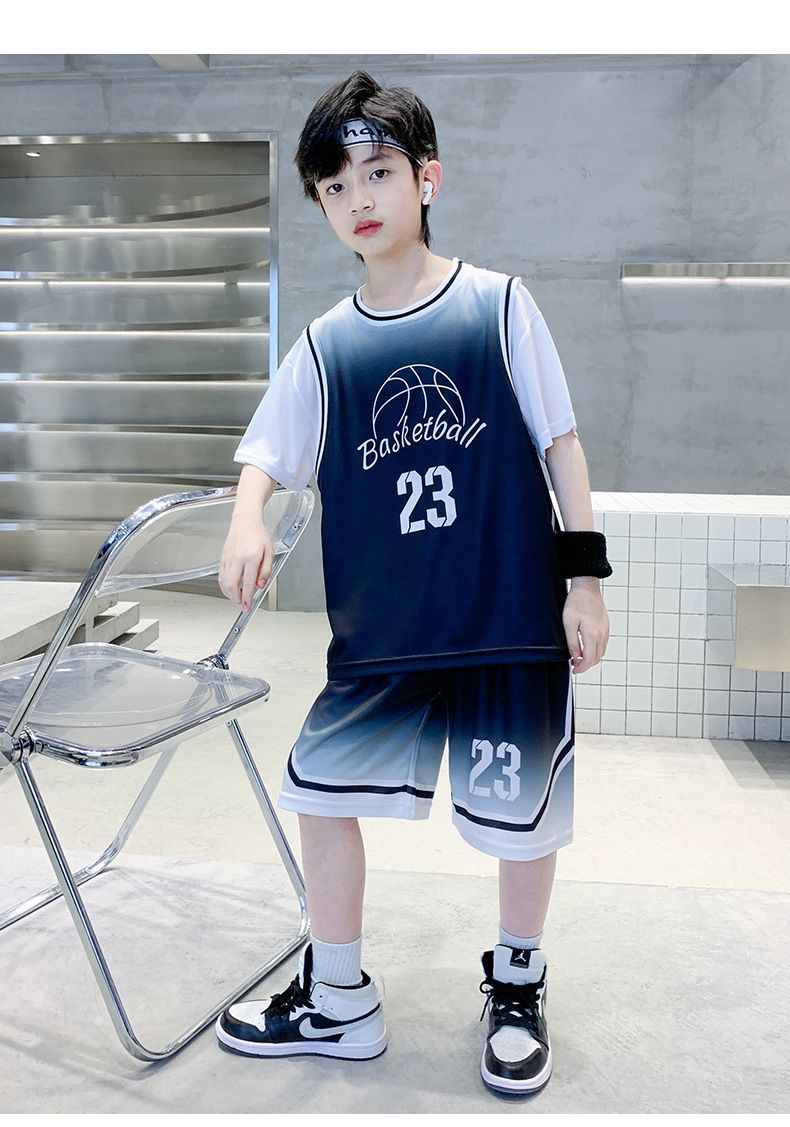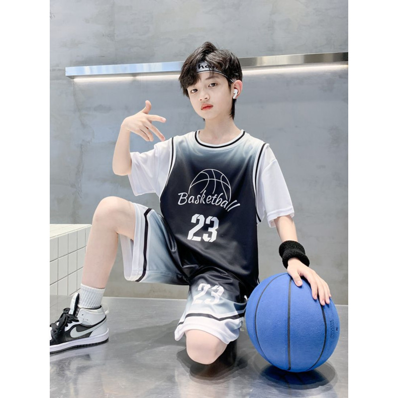 소년 여름 세트 농구 세트 2025 새로운 어린이 여름 얇은 빠른 건조 공 세트 소년 레저 스포츠 트렌디
