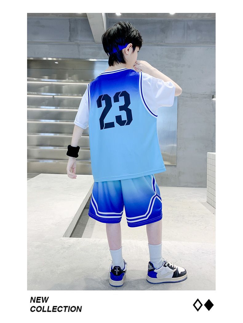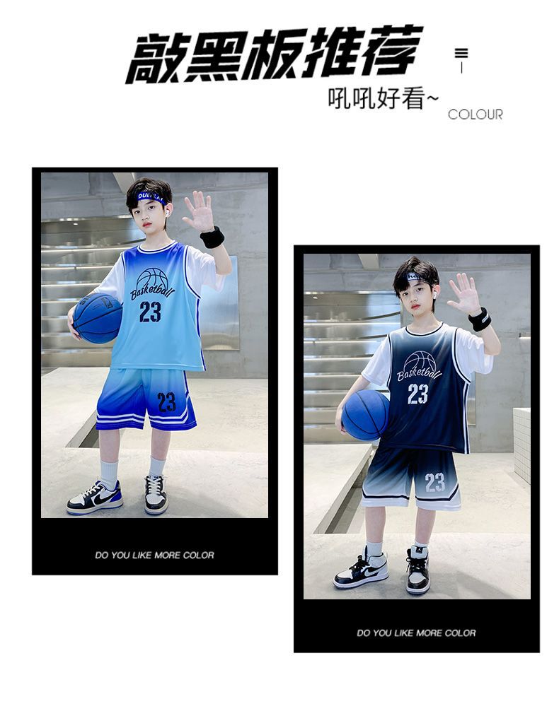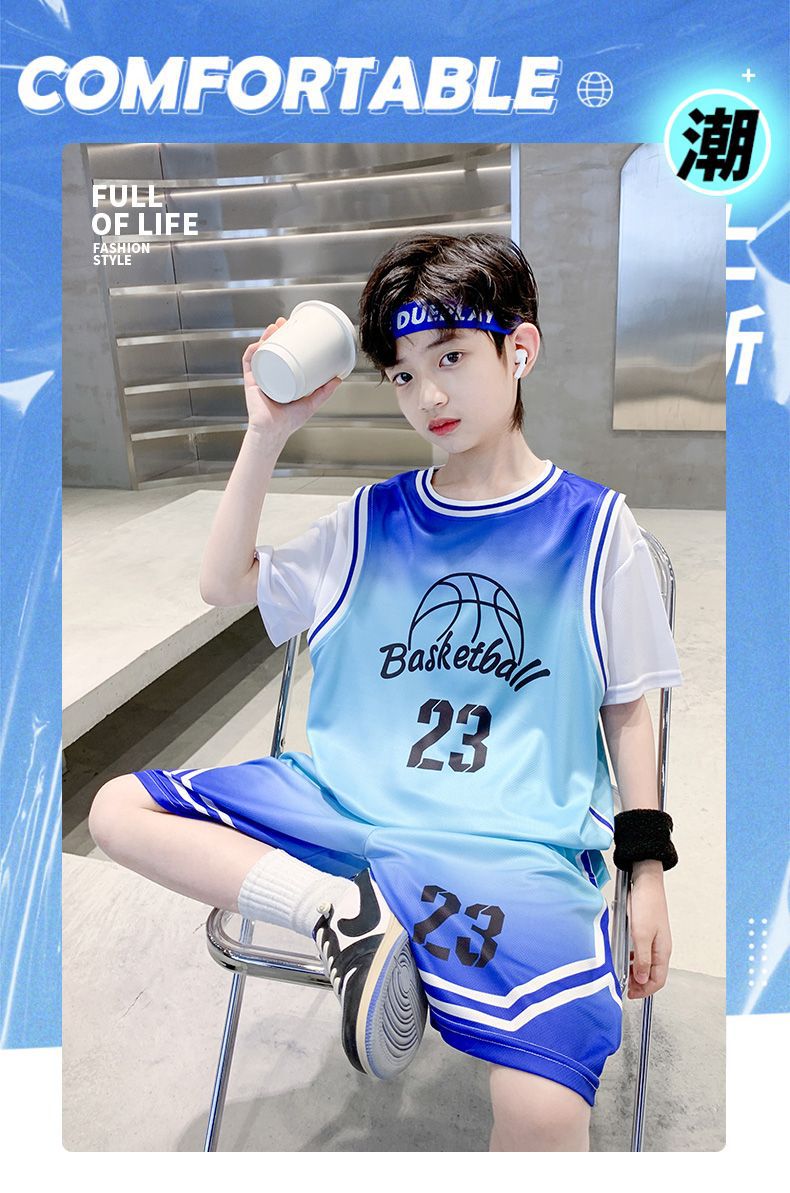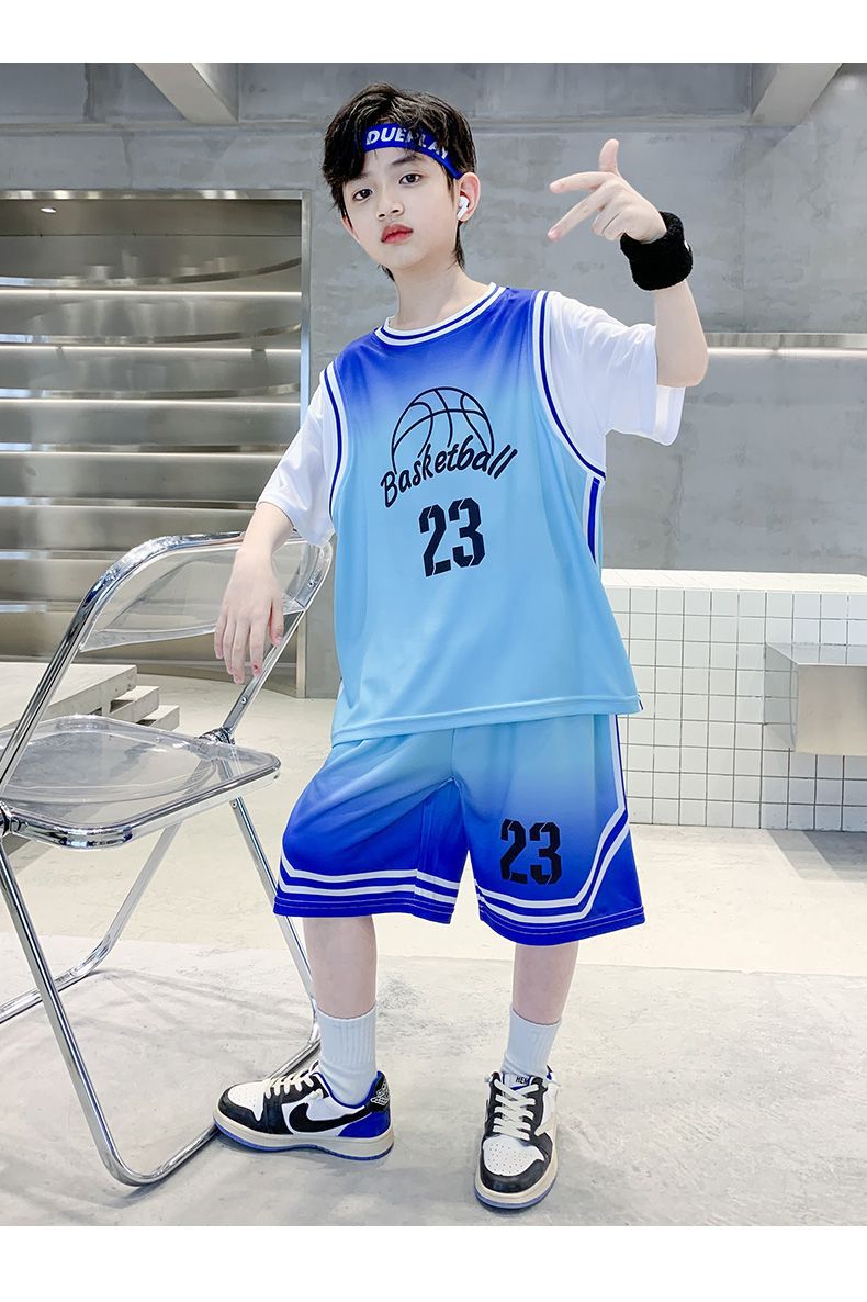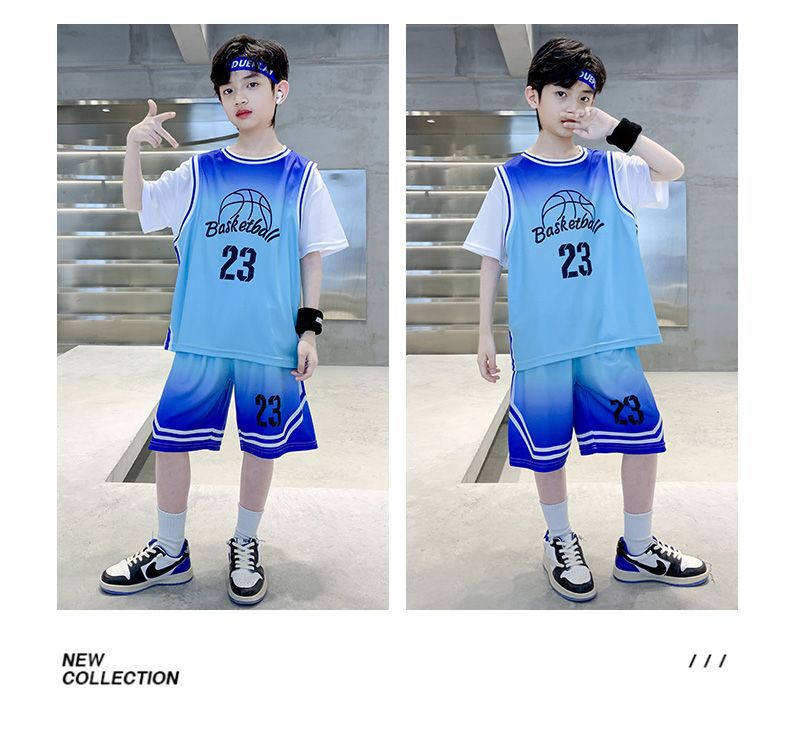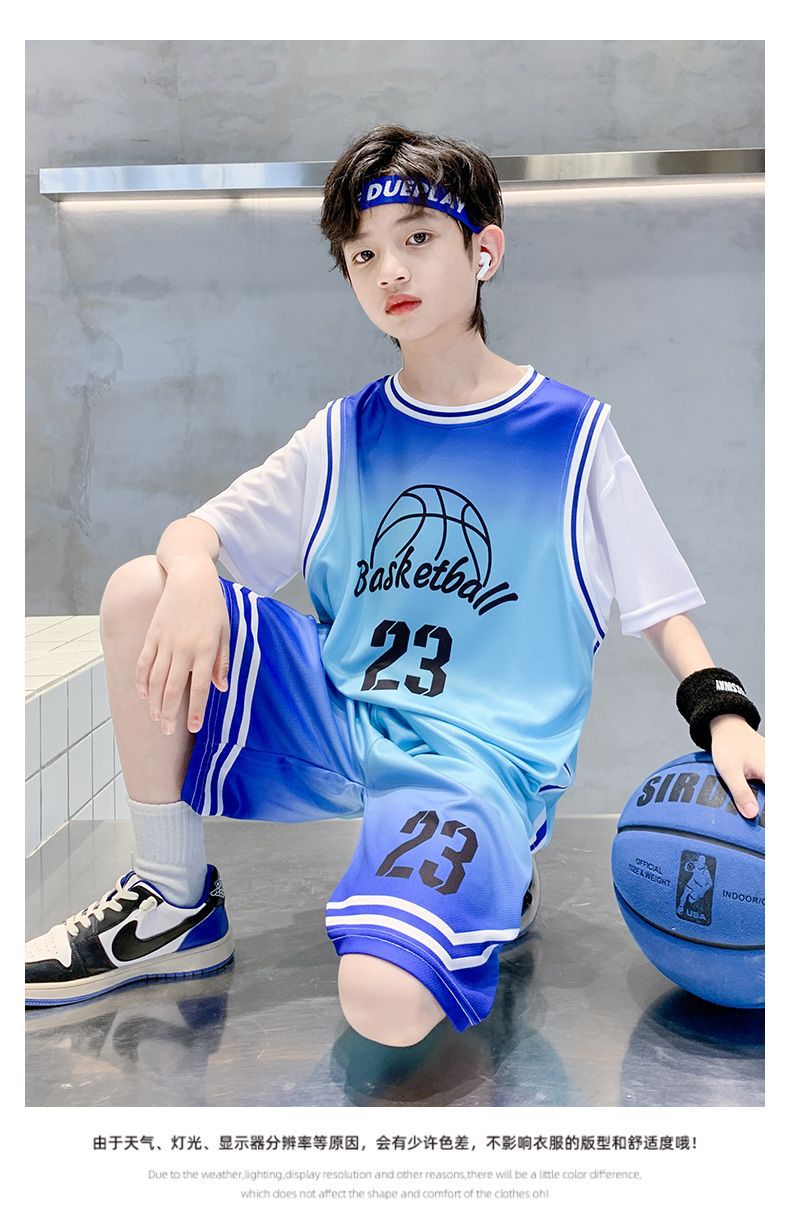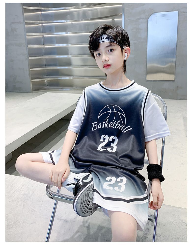 소년 여름 세트 농구 세트 2025 새로운 어린이 여름 얇은 빠른 건조 공 세트 소년 레저 스포츠 트렌디