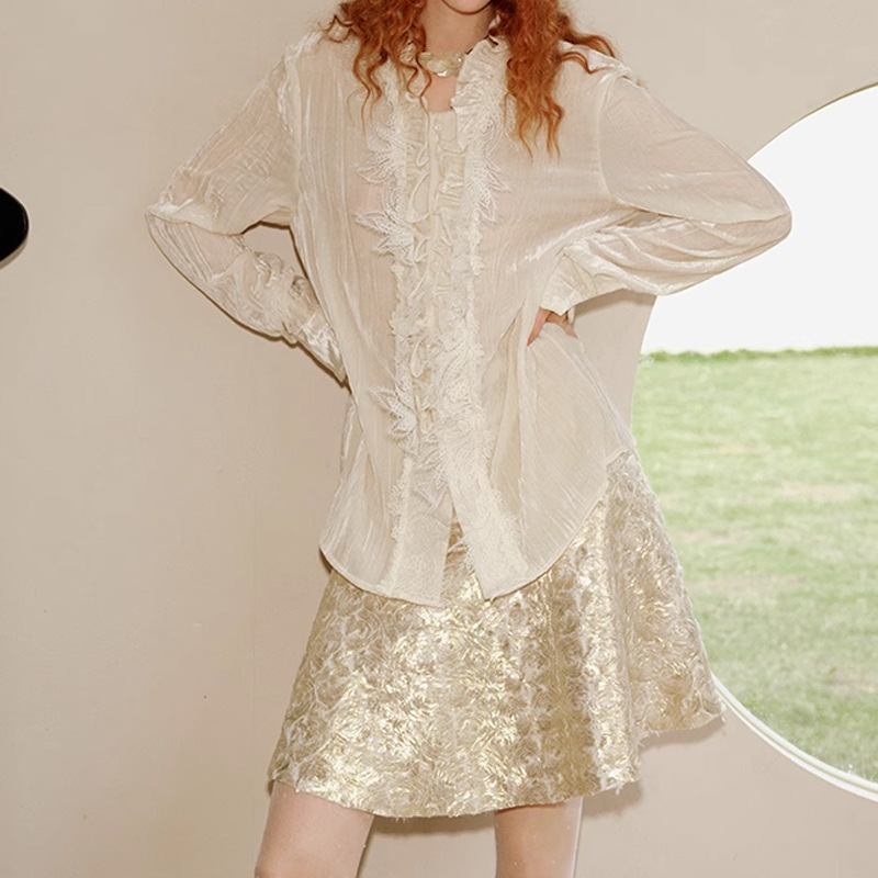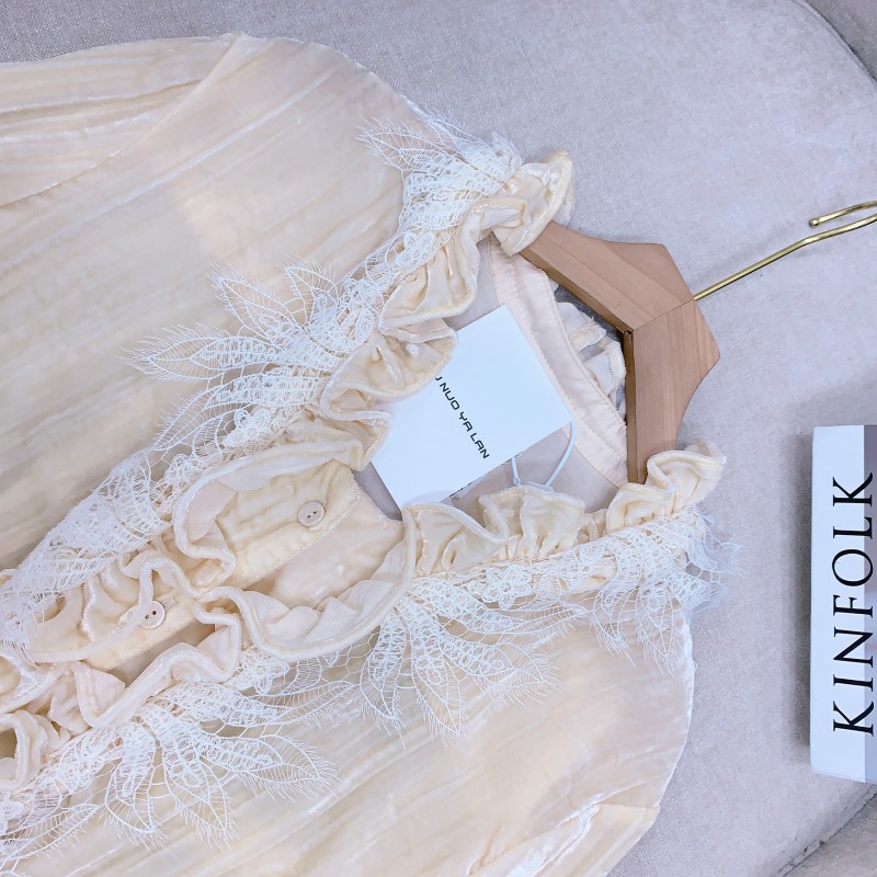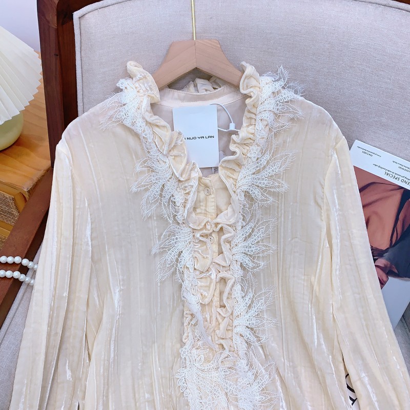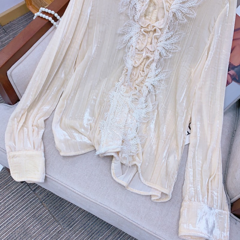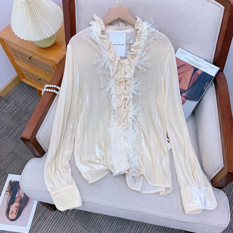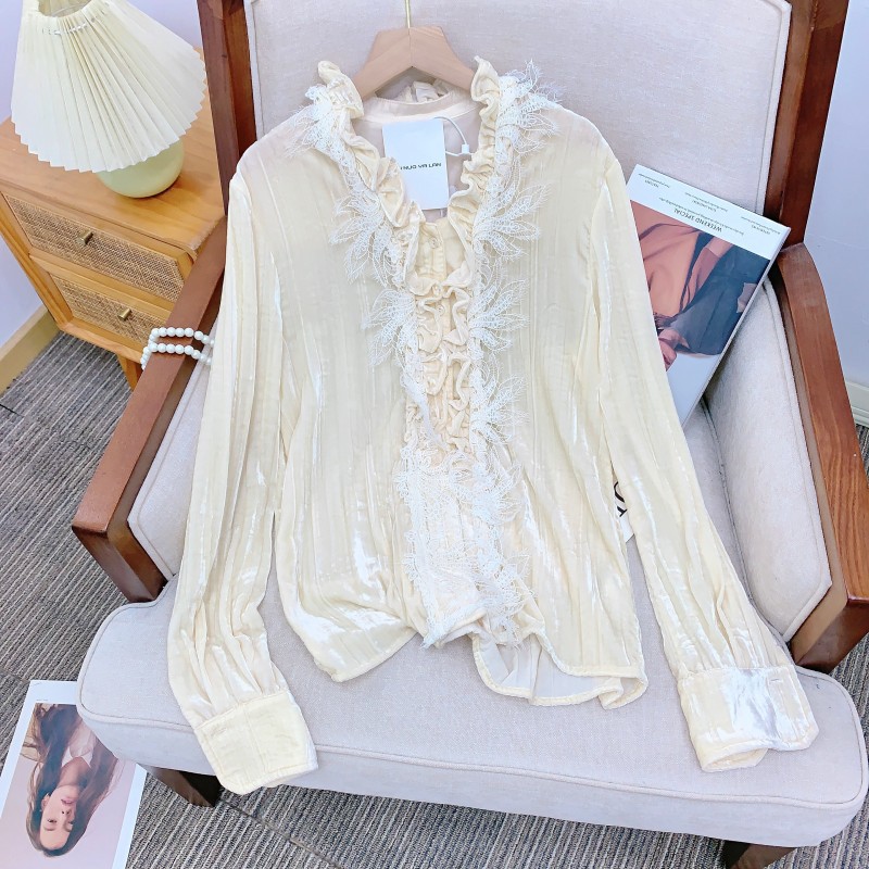 디자이너 브랜드 러플 벨벳 셔츠 여성 프렌치 스타일 니치 긴팔 이너웨어 탑 여성용스토어 가기