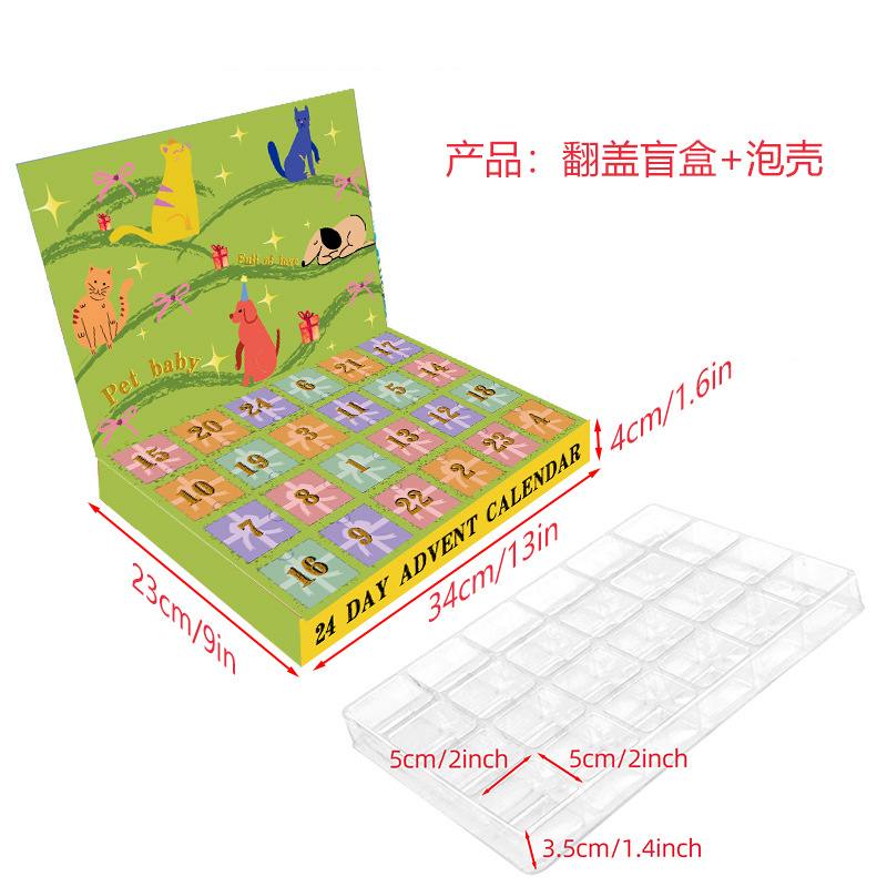 24 케이지 플립 개 고양이 애완 동물 블라인드 상자 빈 상자 선물 상자 음식 동결 건조 장난감 포장 상자 출현 달력 상자