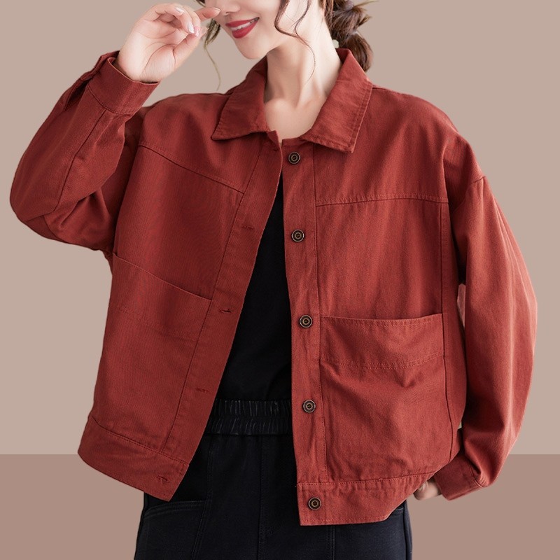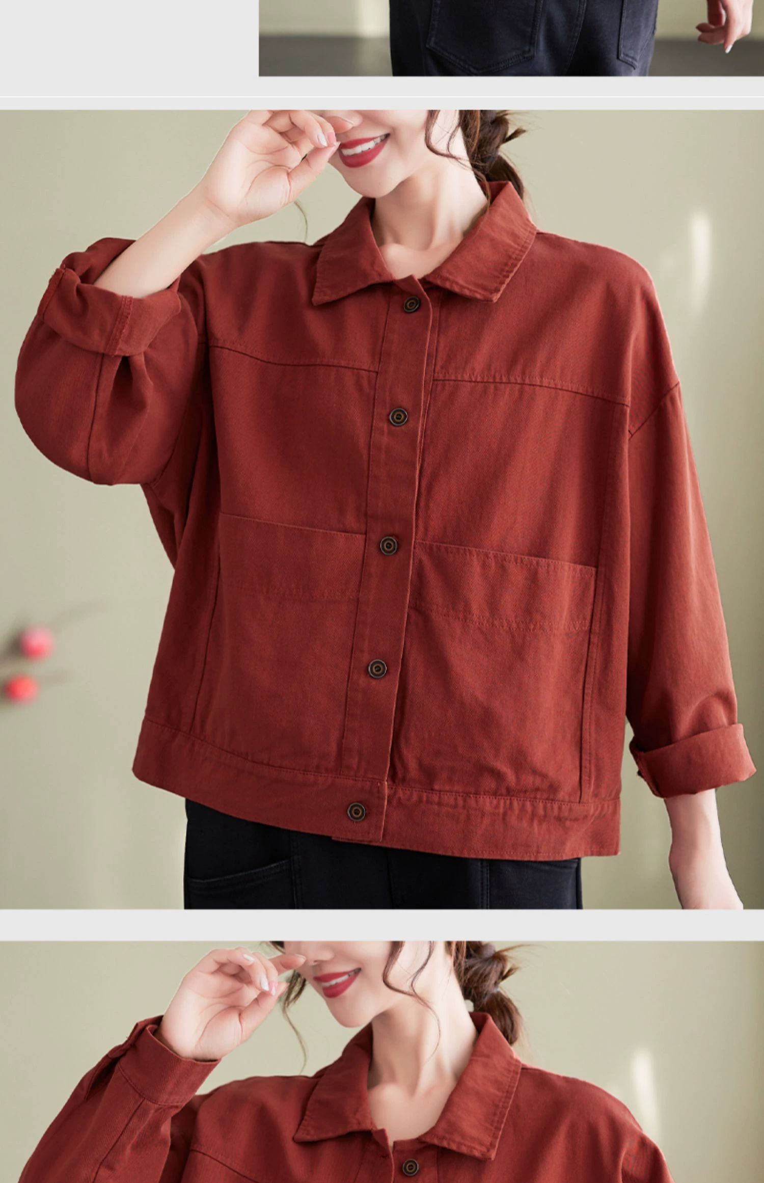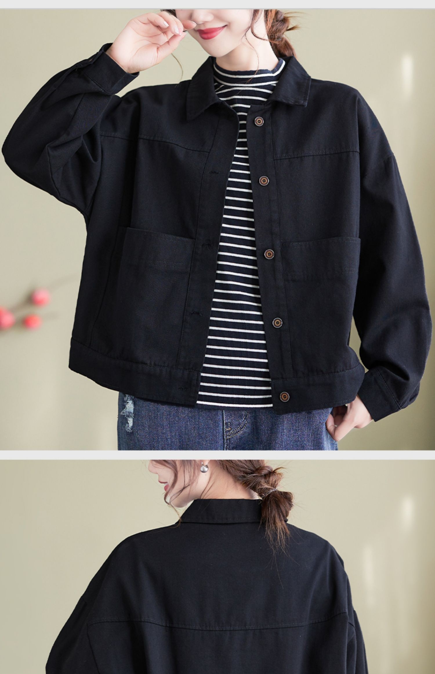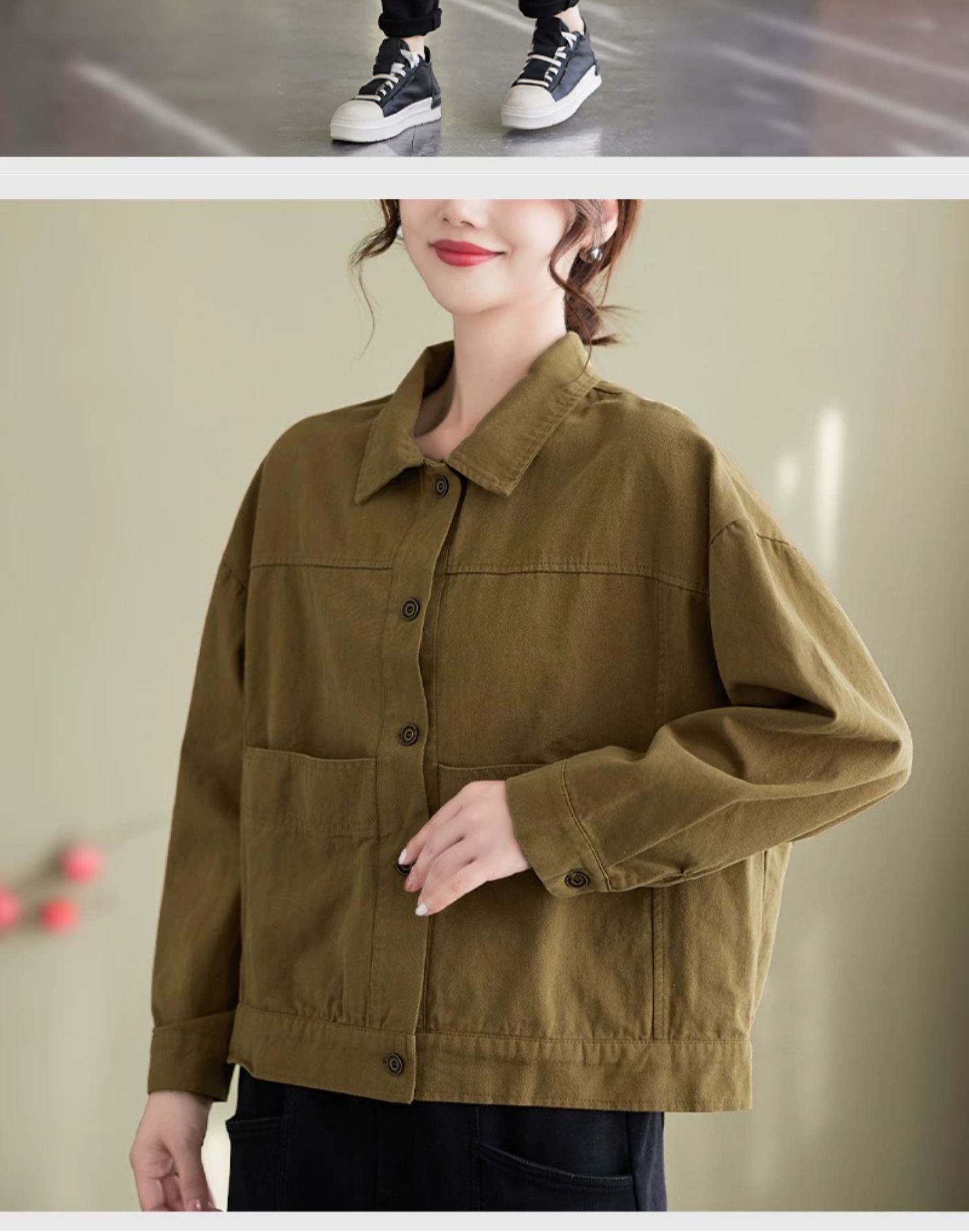 봄과 가을 2025 새로운 패션 캐주얼 올 매치 작업복 여성 쇼트 코트 옷깃 카디건 야구 재킷
