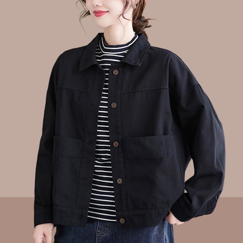 봄과 가을 2025 새로운 패션 캐주얼 올 매치 작업복 여성 쇼트 코트 옷깃 카디건 야구 재킷스토어 가기