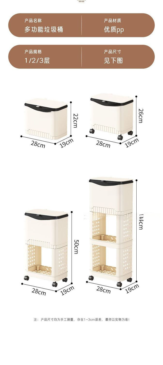 주방 휴지통 가정용 대용량 모바일 더블 레이어 스토리지 벤트 허리 용 뚜껑이있는 일본식 다층 스토리지 랙