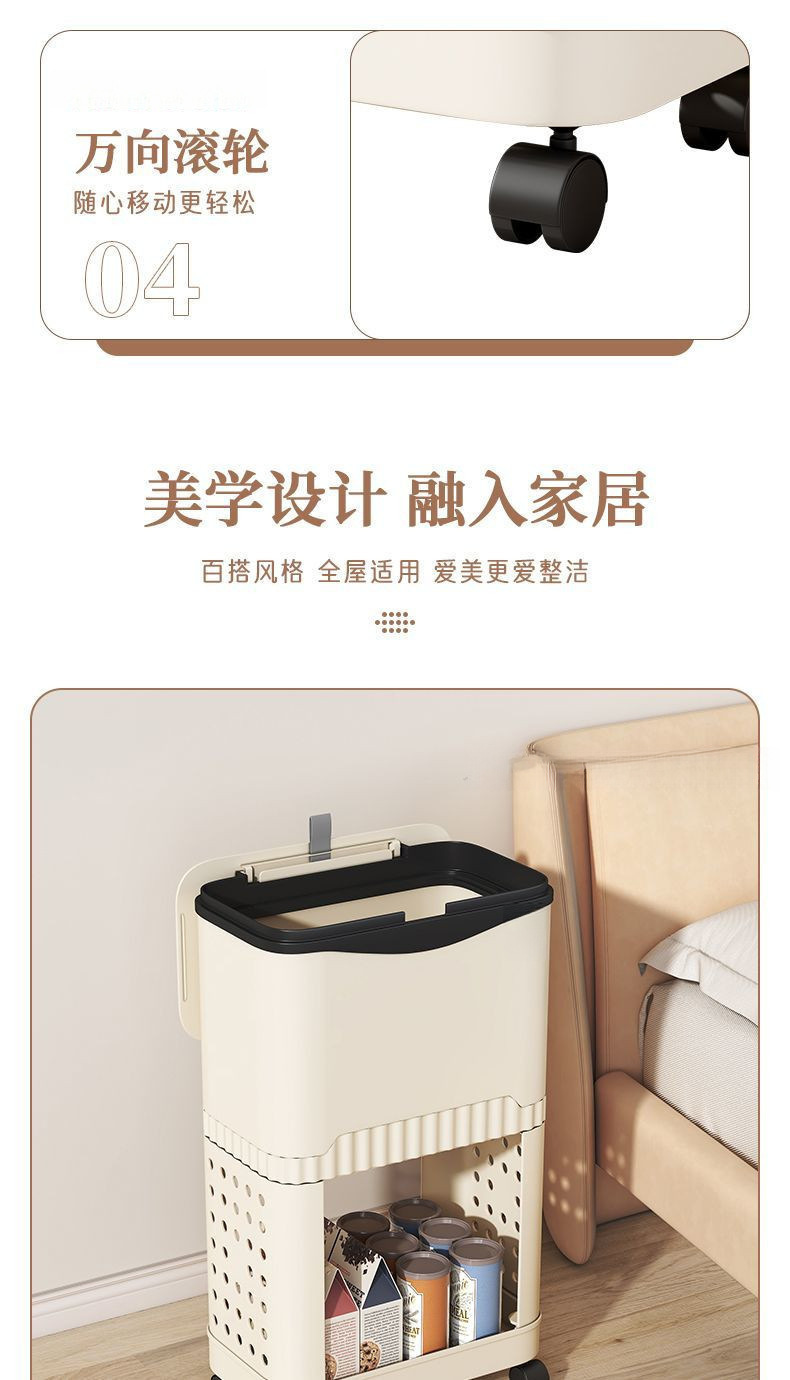 주방 휴지통 가정용 대용량 모바일 더블 레이어 스토리지 벤트 허리 용 뚜껑이있는 일본식 다층 스토리지 랙스토어 가기