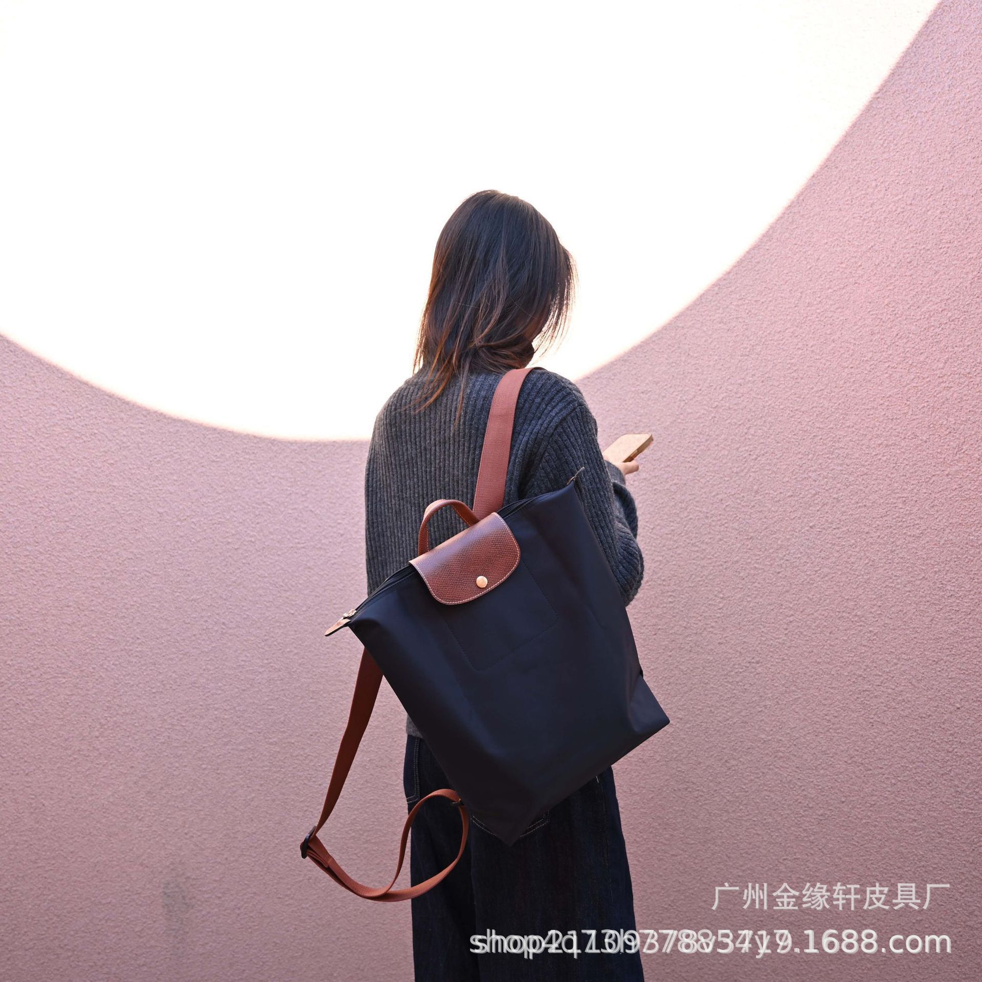 새로운 Longxiang 배낭 대형 나일론 접이식 방수 배낭 대용량 만두 백 트렌디 통근 학교 가방 남성과 여성