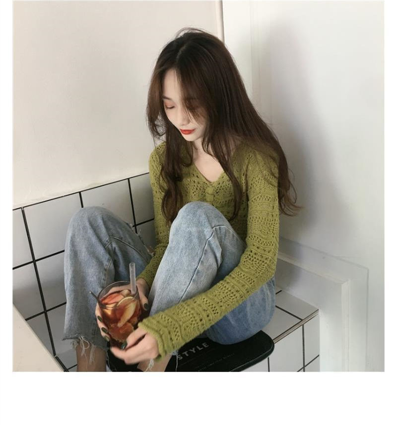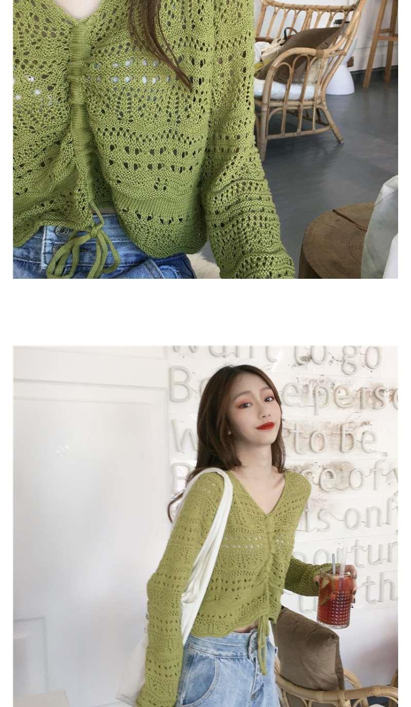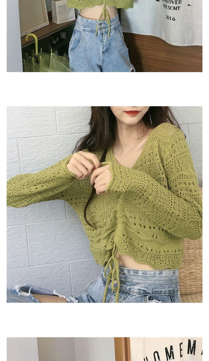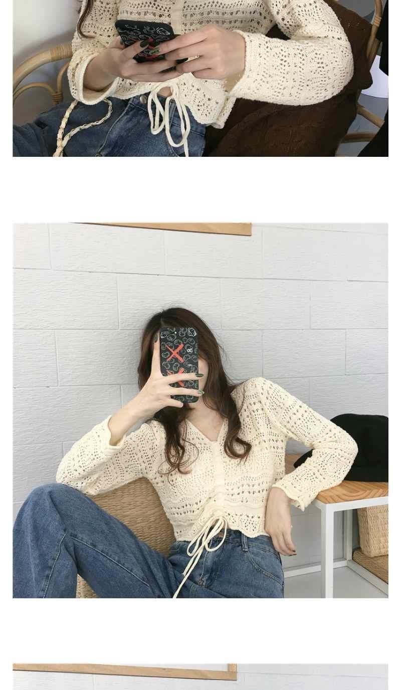2025 봄과 여름 느슨한 드로우 스트링 스트랩 스웨터 할로우 아웃 여성 짧은 사이버 연예인 탑 섹시한 얇은 블라우스 탑 트렌디스토어 가기