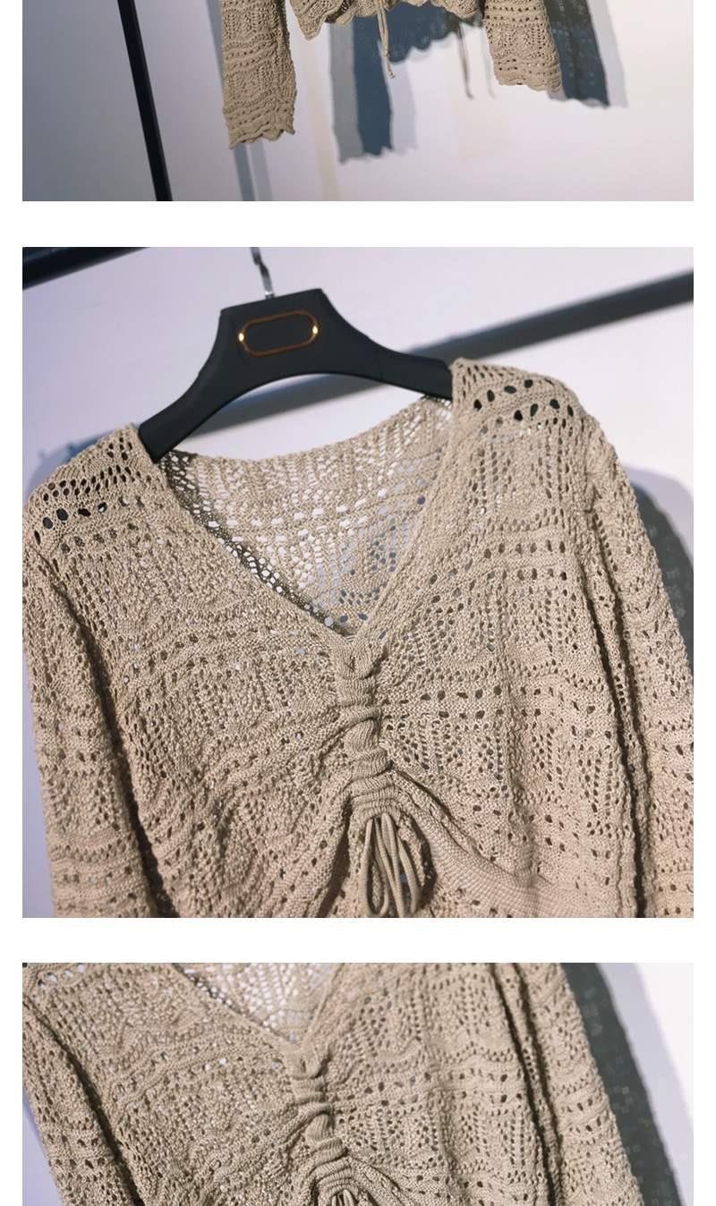 2025 봄과 여름 느슨한 드로우 스트링 스트랩 스웨터 할로우 아웃 여성 짧은 사이버 연예인 탑 섹시한 얇은 블라우스 탑 트렌디