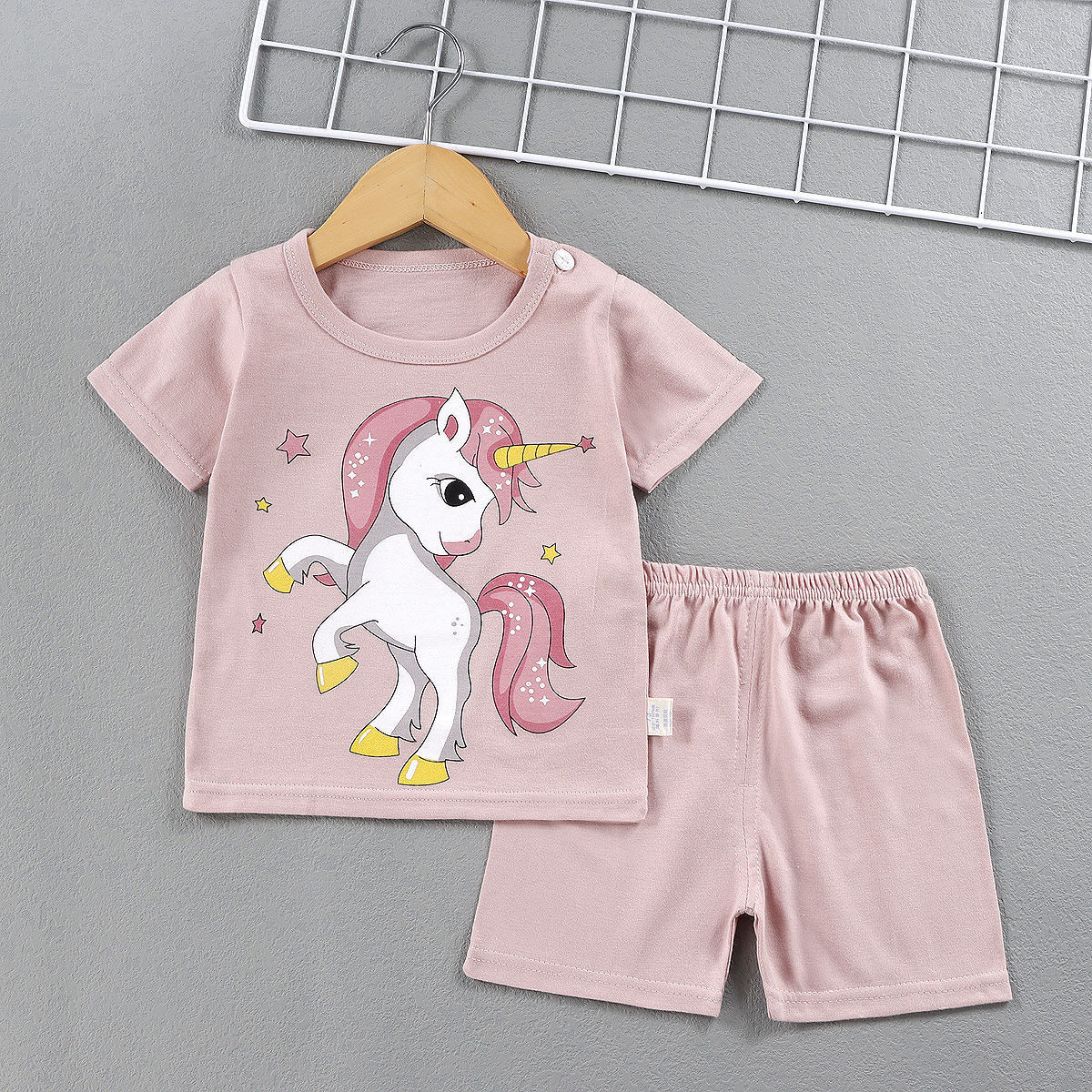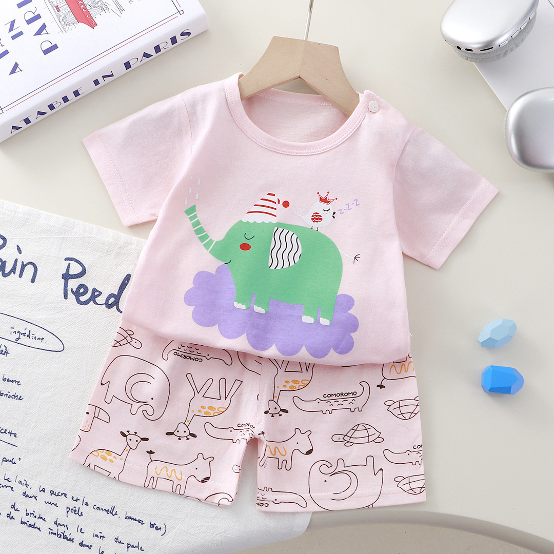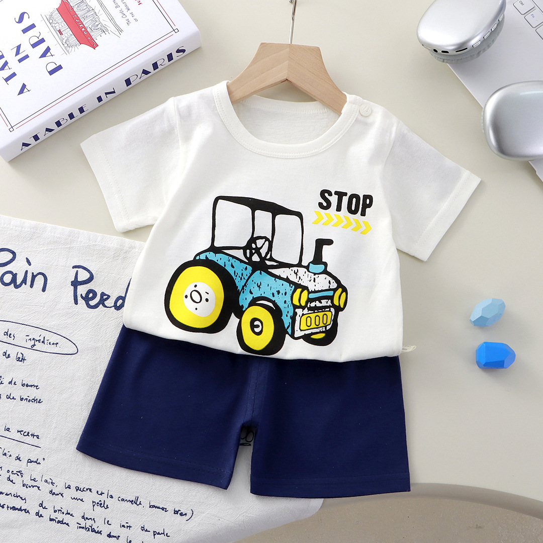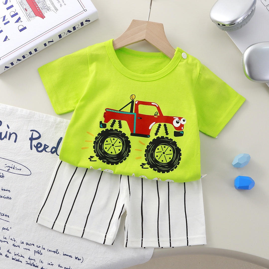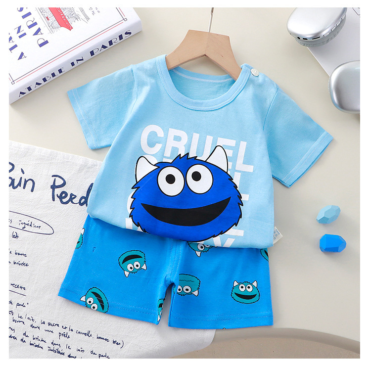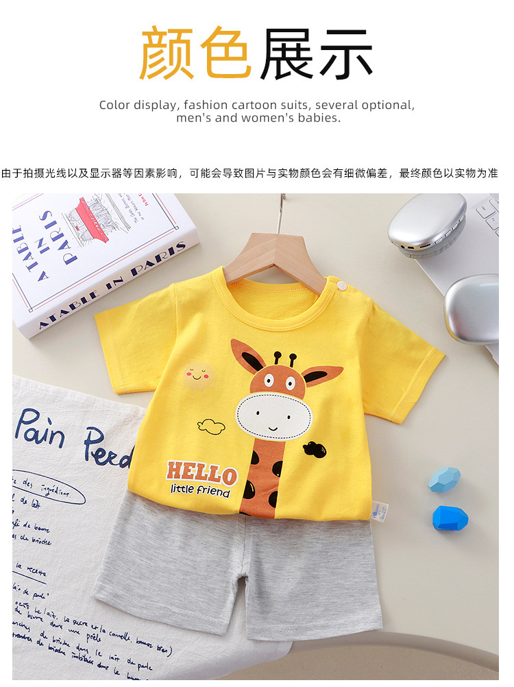 새로운 어린이 반팔 정장 소년 순수 코튼 여름 반바지 투피스 대외 무역 소녀 티셔츠 의류 아동 의류스토어 가기