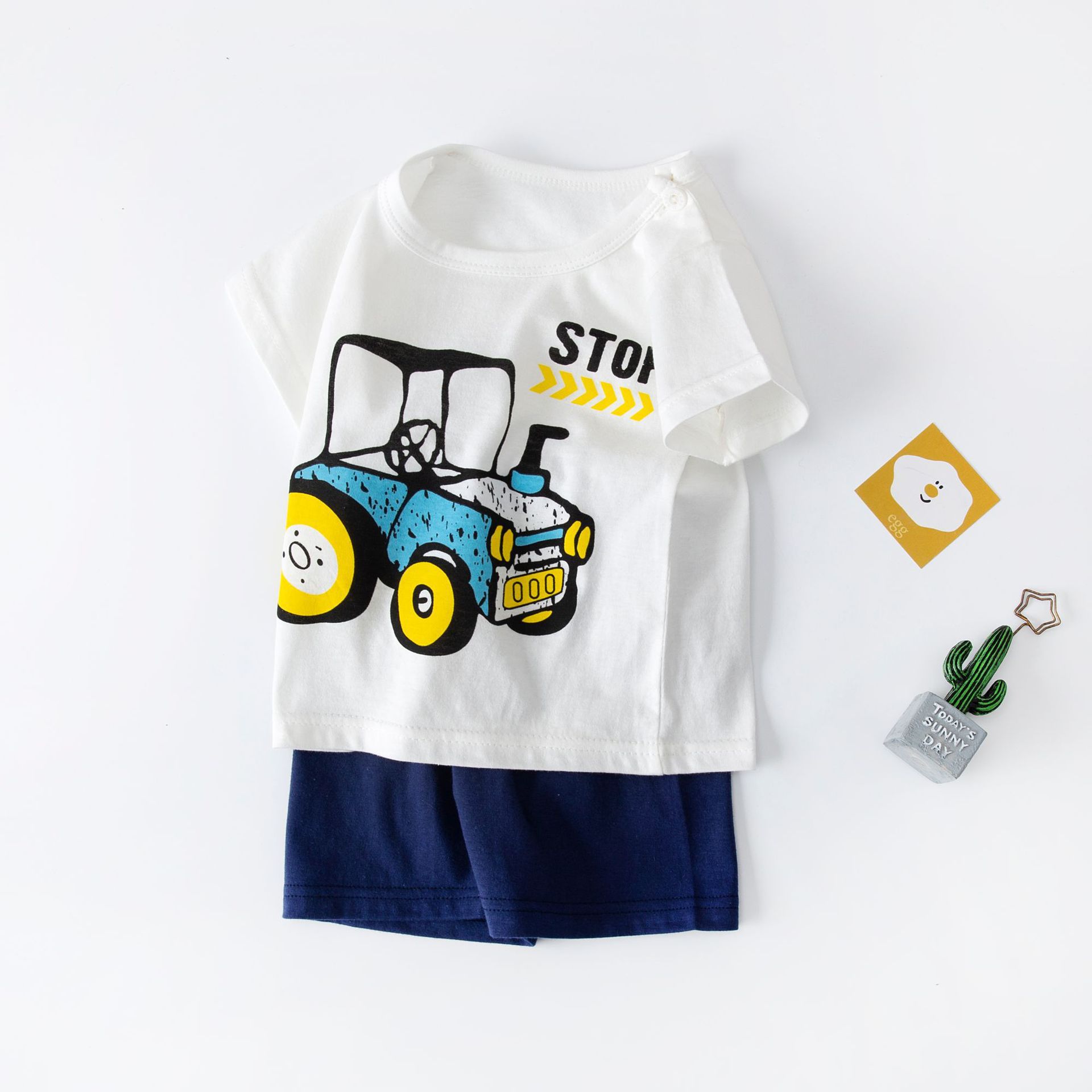2025 새로운 어린이 반팔 정장 소년 면화 여름 반바지 투피스 대외 무역 소녀 티셔츠 의류 아동 의류스토어 가기