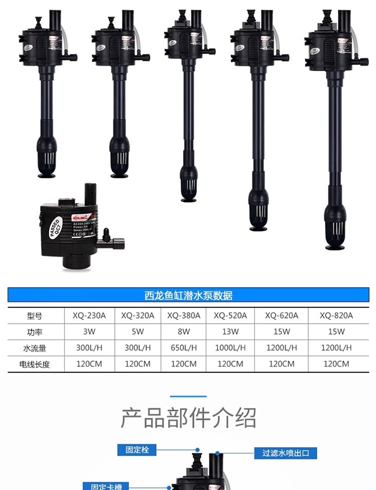 Xilong 물고기 탱크 수족관 펌프 XQ-230A/320A/380A/520A/620A 잠수정 펌프스토어 가기