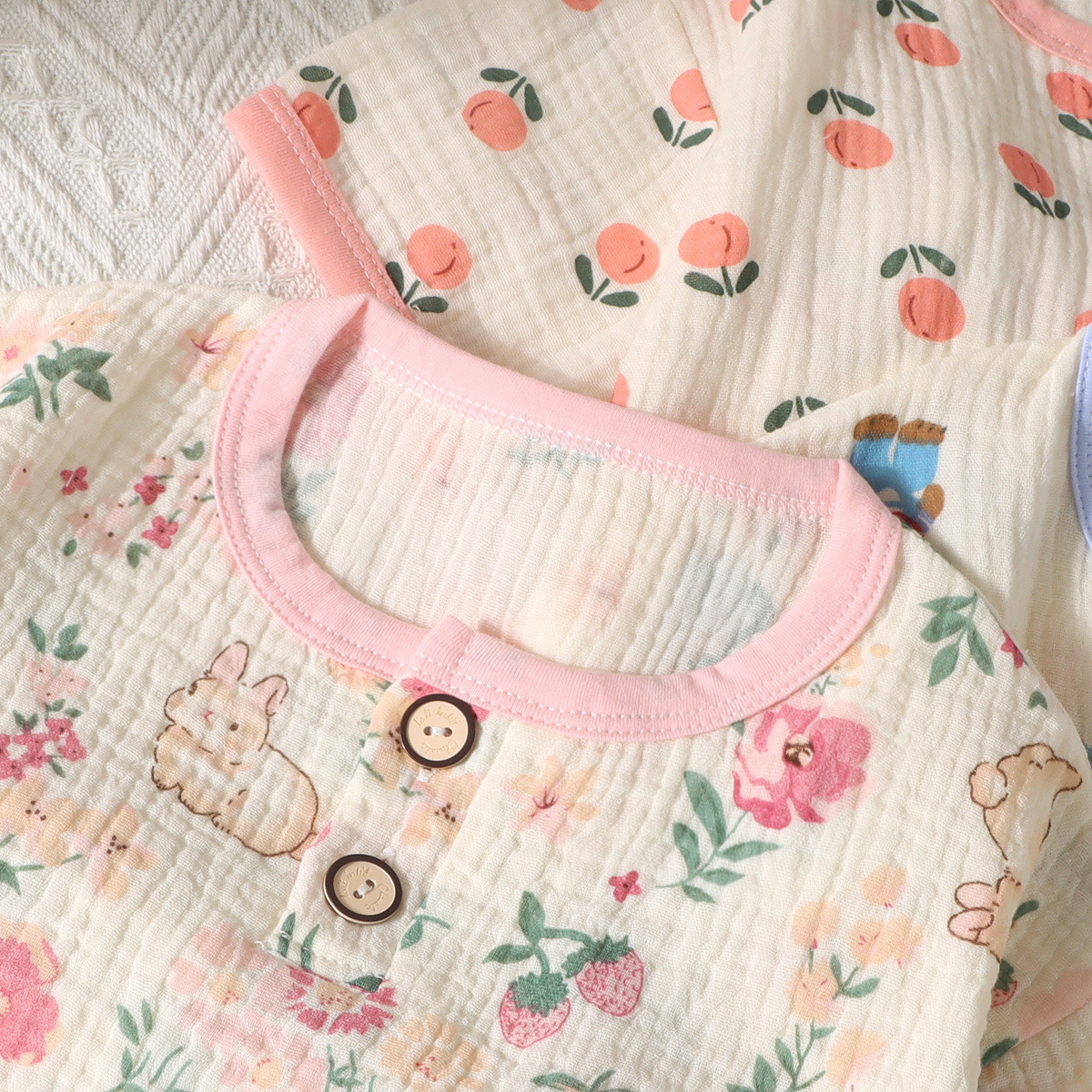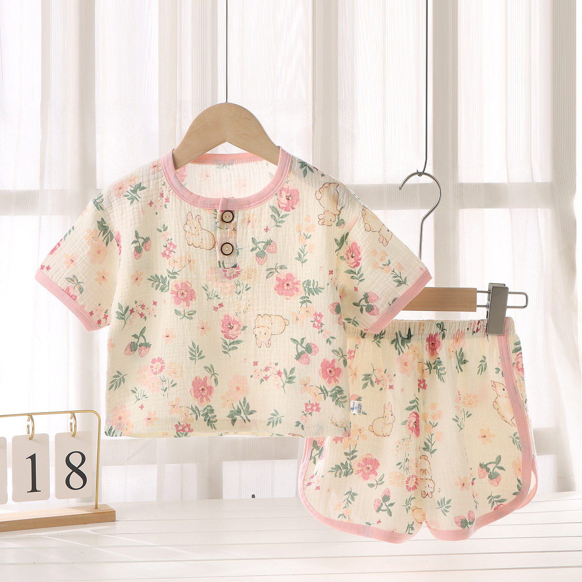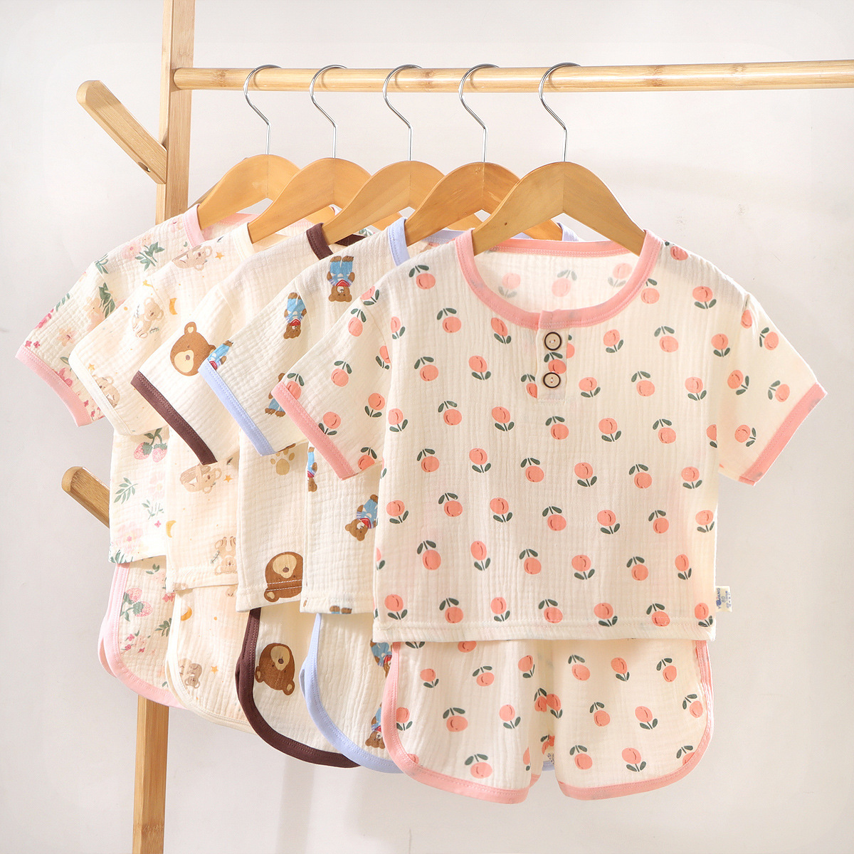 아동용 이중 거즈 반바지, 반팔 잠옷, 여름용 얇은 순면 가정복 세트(남아 및 여아용), 귀여운스토어 가기