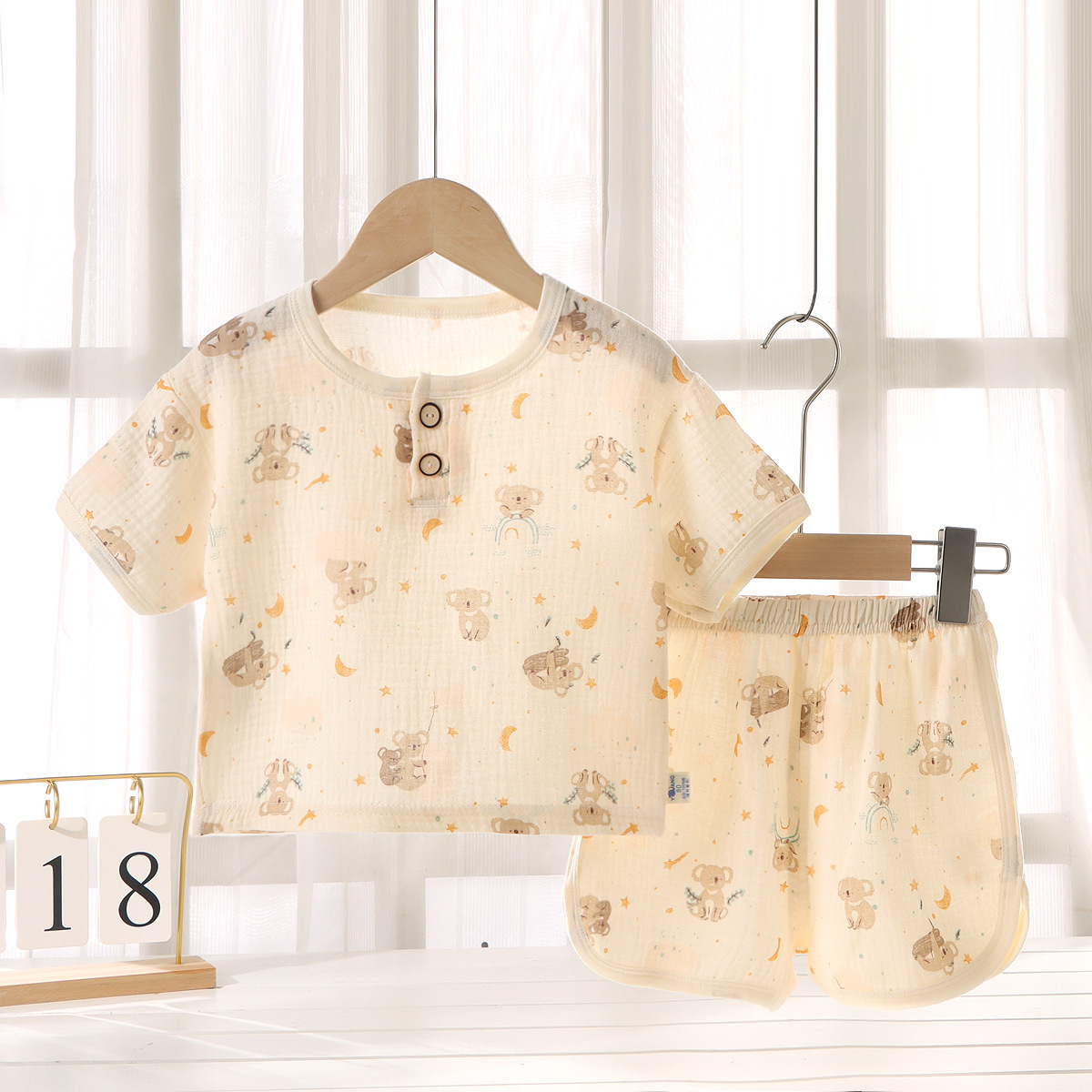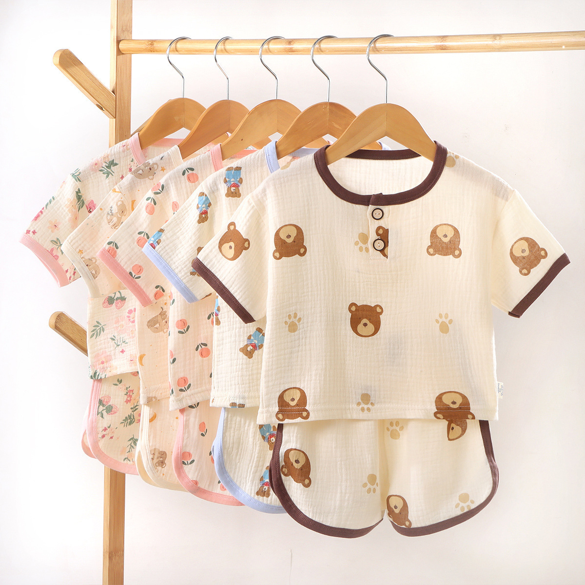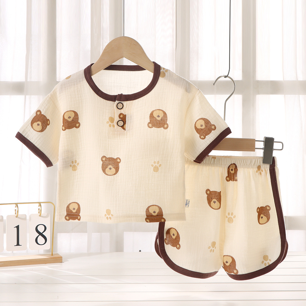 • 거즈반팔반바지-브라운베어헤드