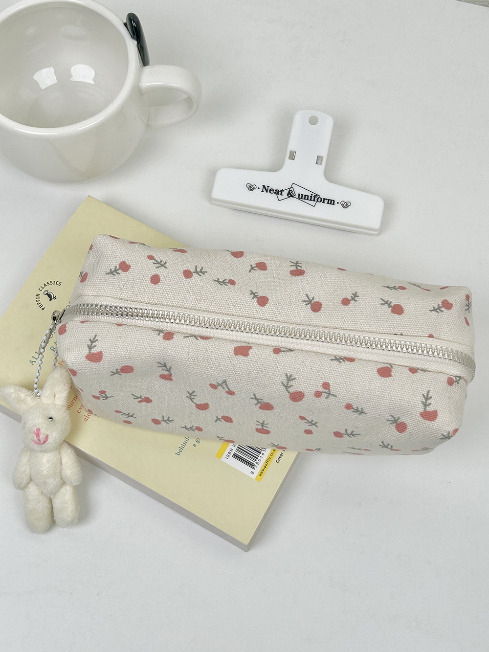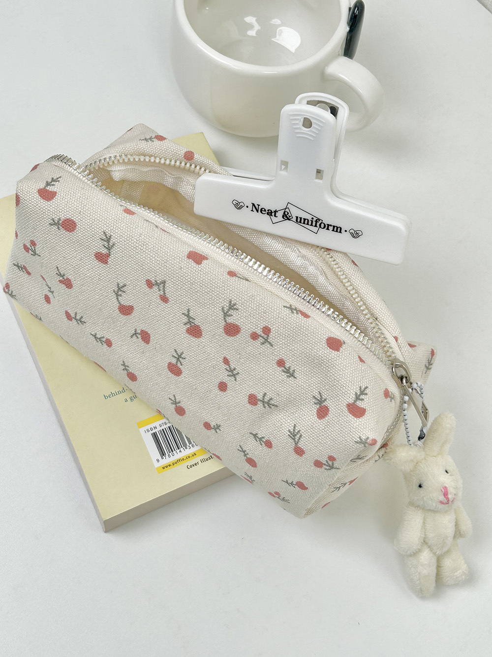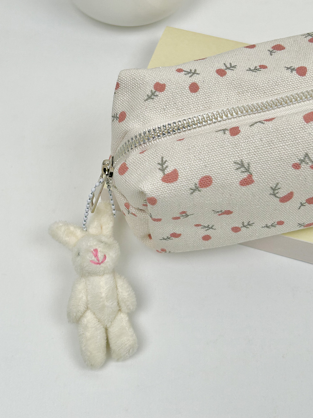 • 크림색 작은 꽃무늬 필통 + 토끼