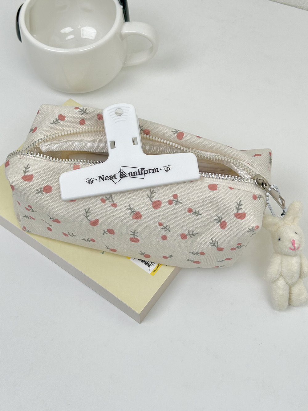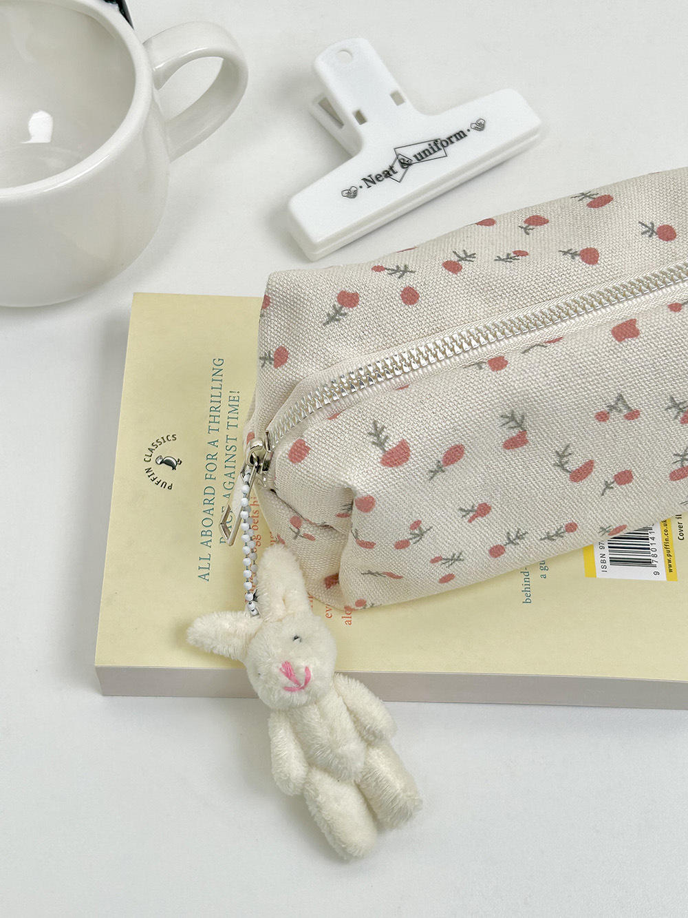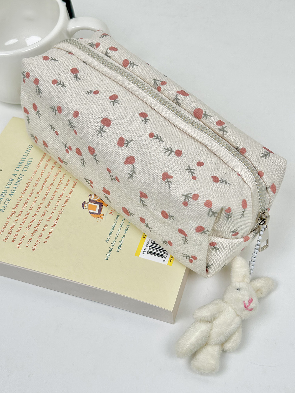 • 크림색 작은 꽃무늬 필통 + 토끼