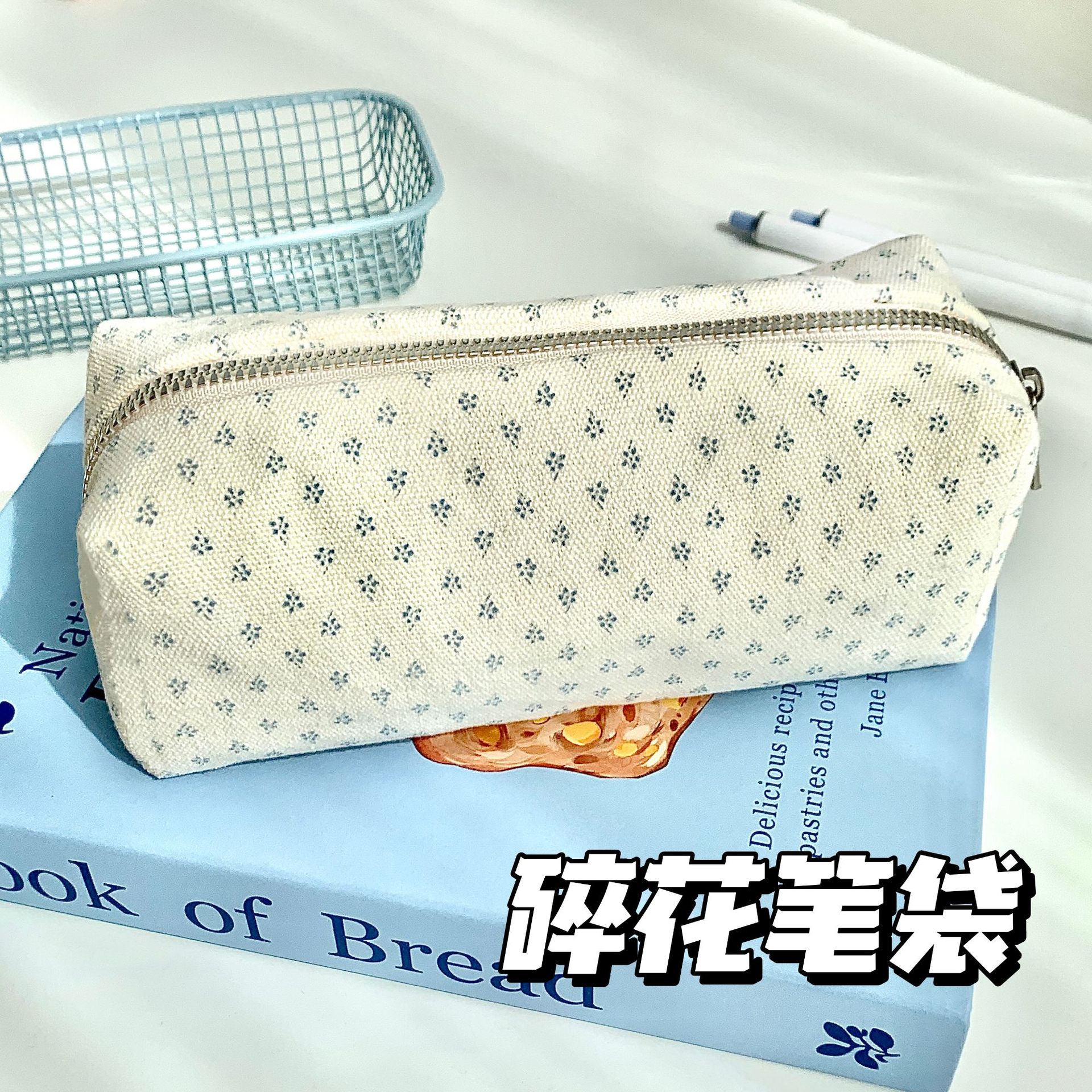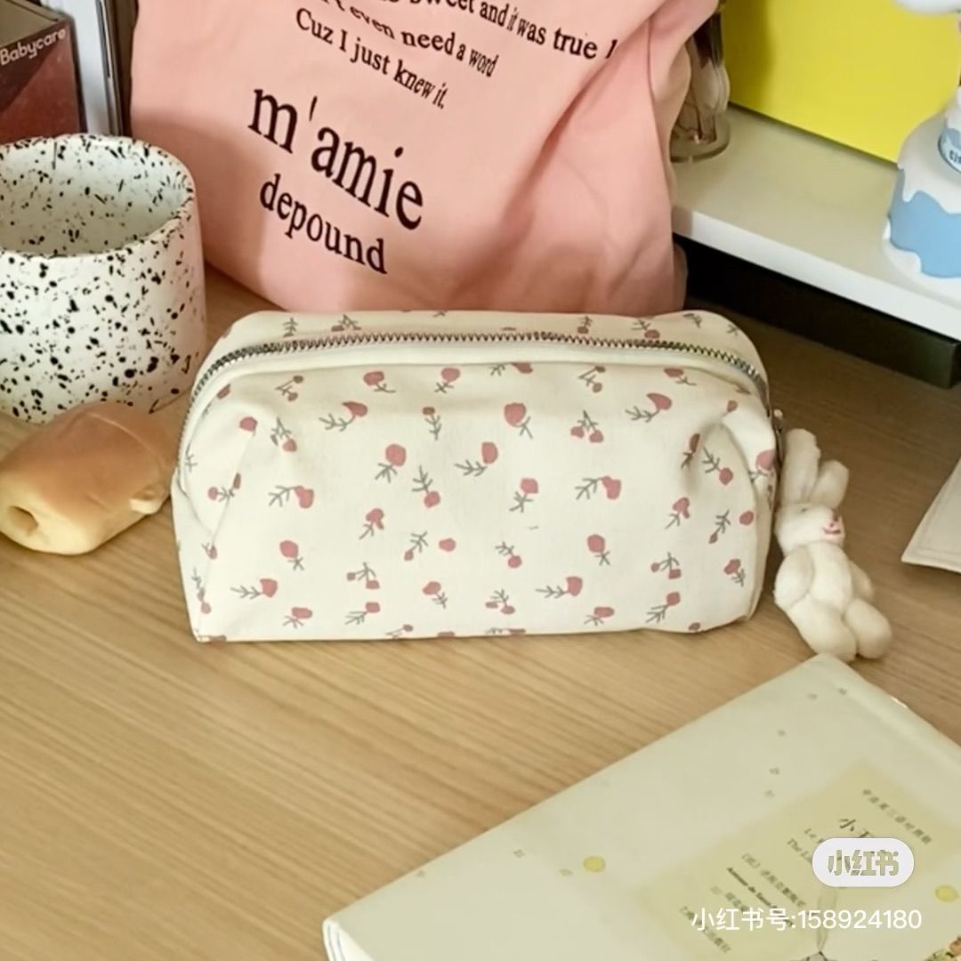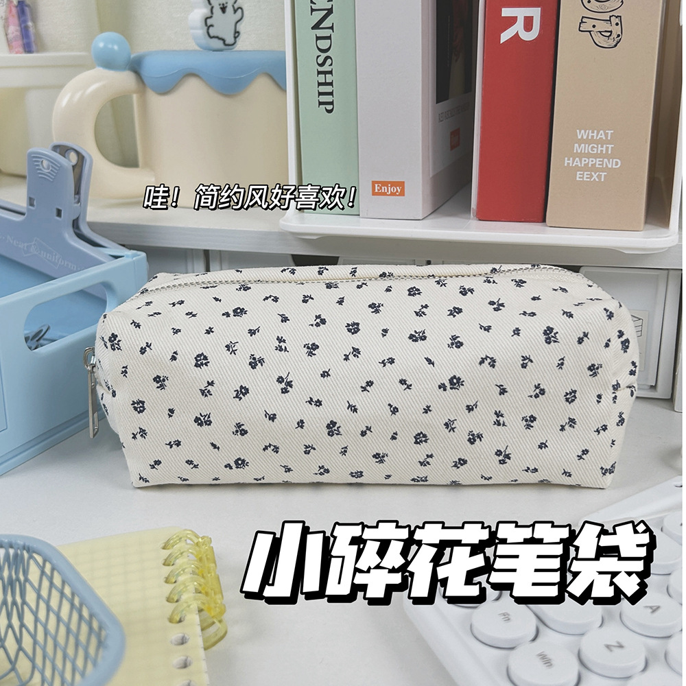 새로운 크림 꽃 Ins 일본 스타일 수제 패브릭 연필 케이스 귀여운 간단한 인쇄 신선한 소녀 대학생스토어 가기