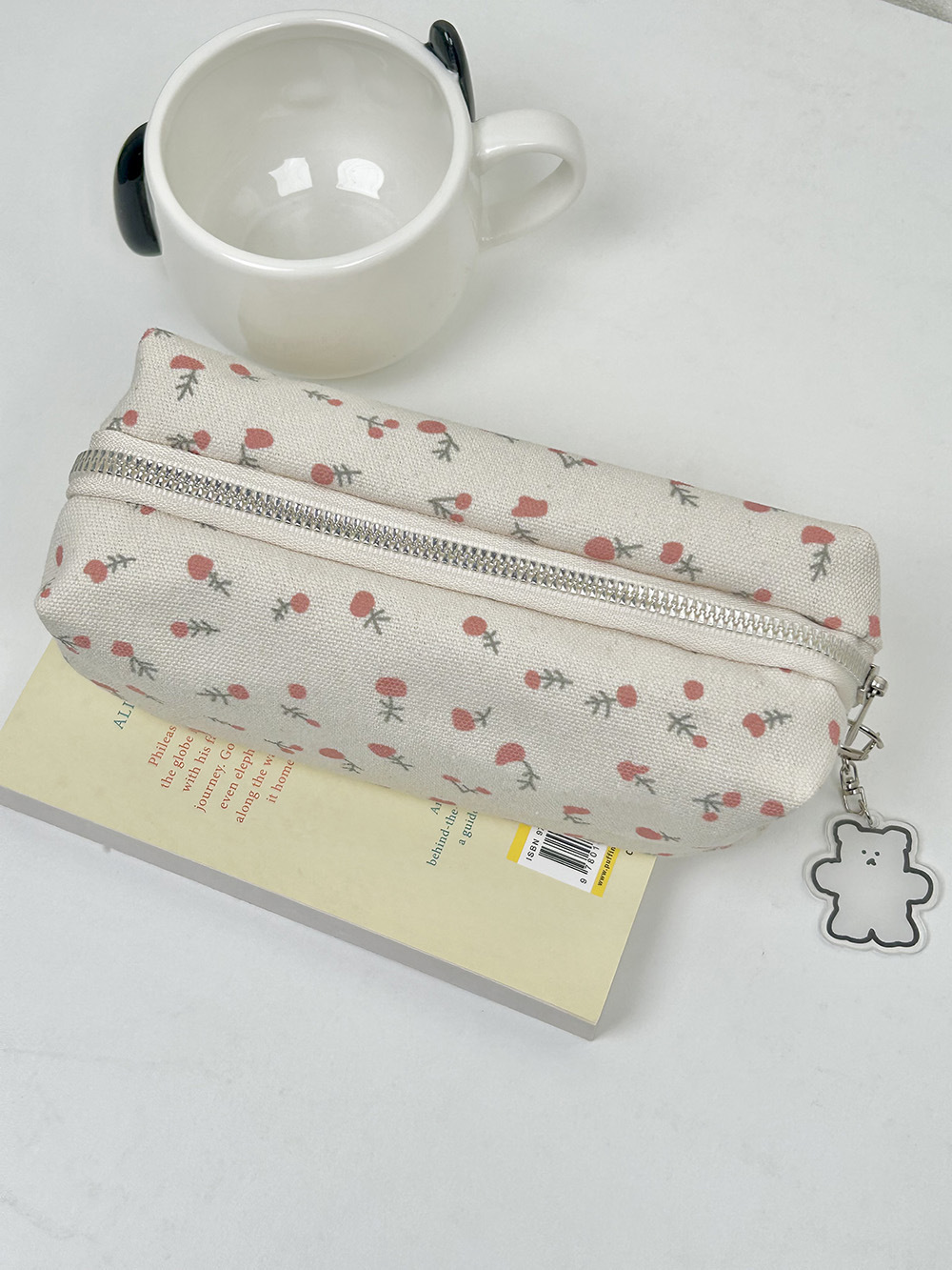 • 크림색 작은 꽃무늬 필통 + 펜던트