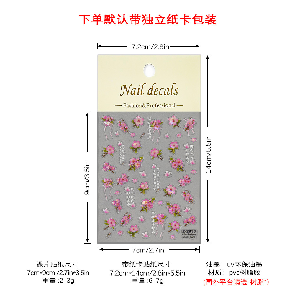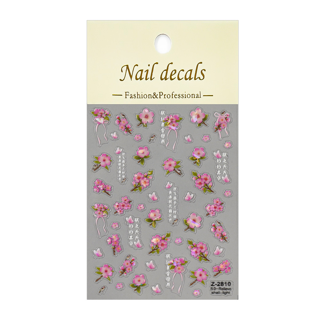 Redanco 새로운 5D 양각 네일 아트 스티커 Ins 스타일 쉘 라이트 피치 블라썸 스테레오 네일 데칼 Z-2810스토어 가기