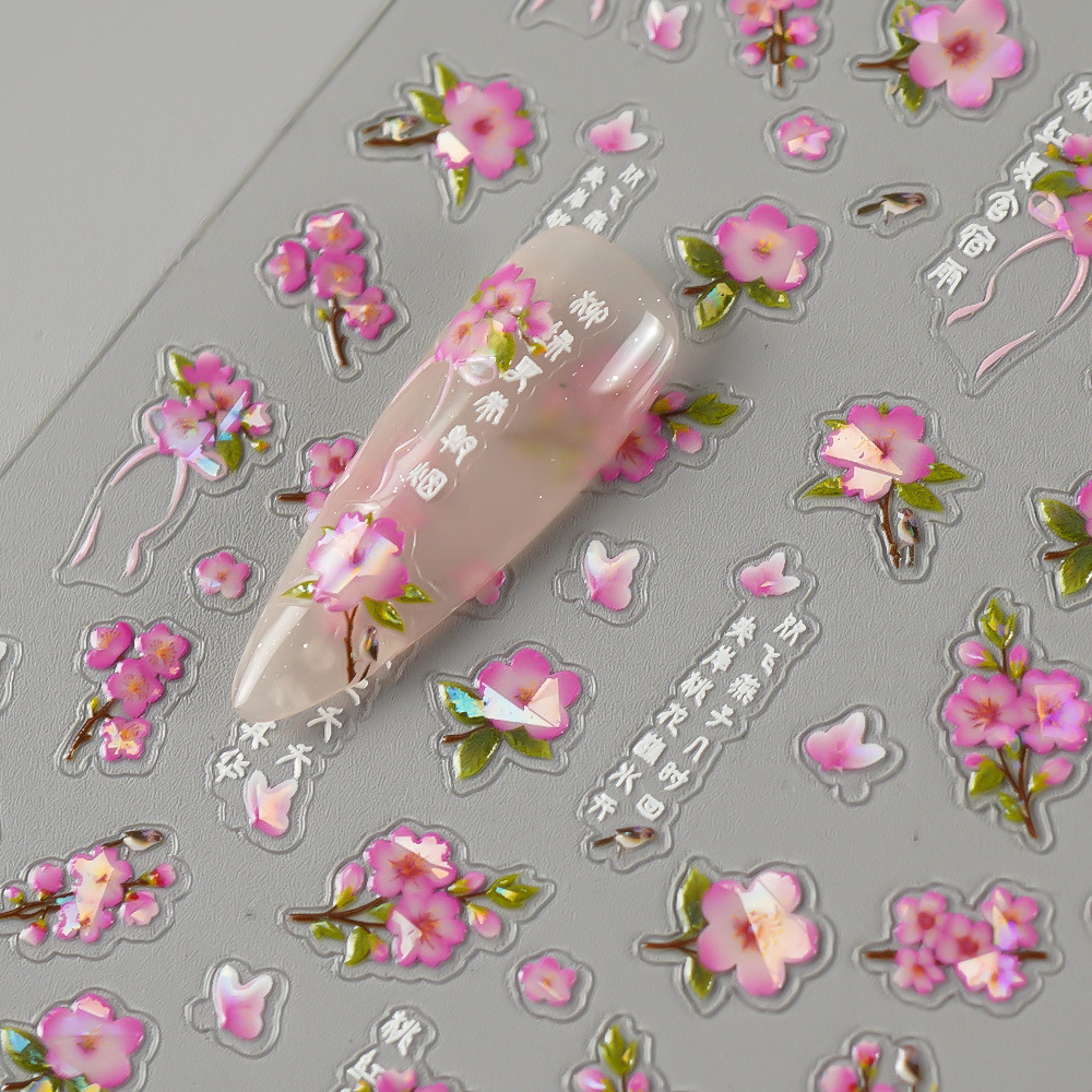 Redanco 새로운 5D 양각 네일 아트 스티커 Ins 스타일 쉘 라이트 피치 블라썸 스테레오 네일 데칼 Z-2810