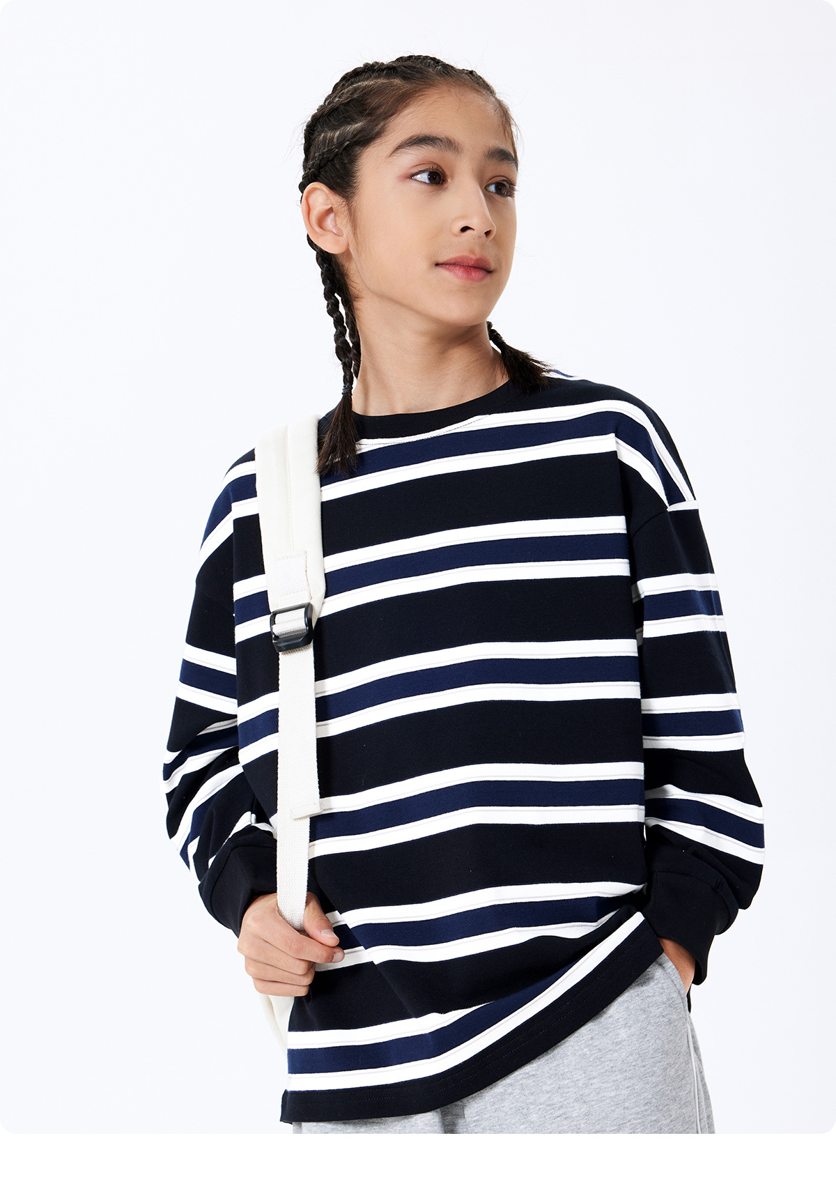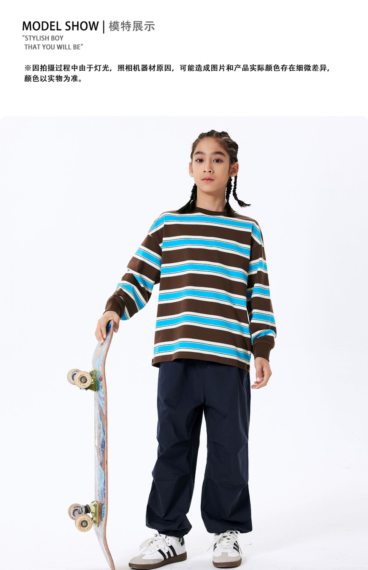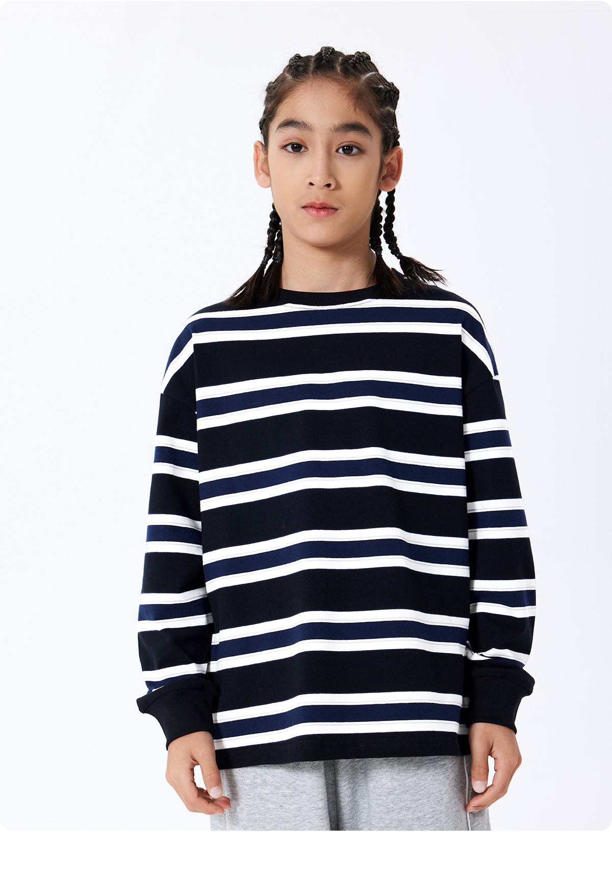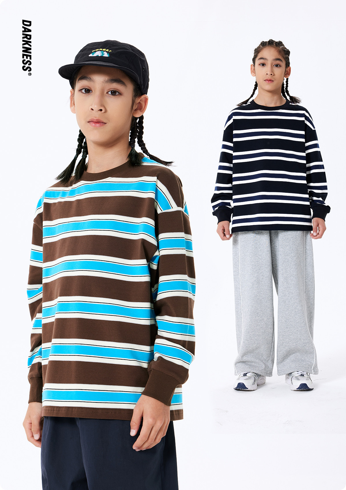 DK 아동복 2025 가을 의류 소녀 및 소년 미국 복고풍 줄무늬 긴팔 티셔츠 아동 중대형 아동 캐주얼 바닥 셔츠스토어 가기
