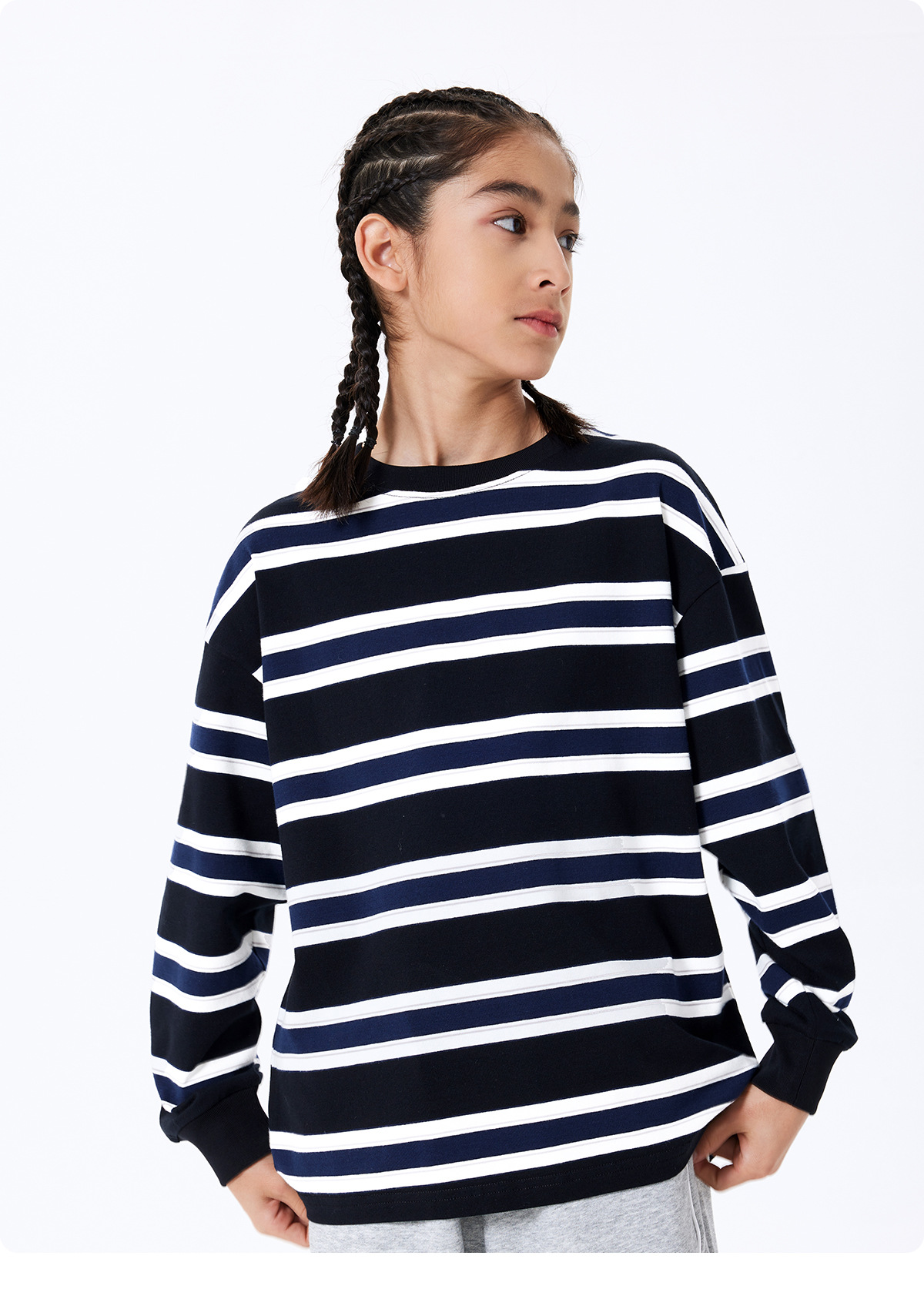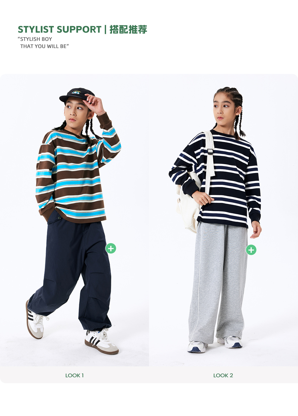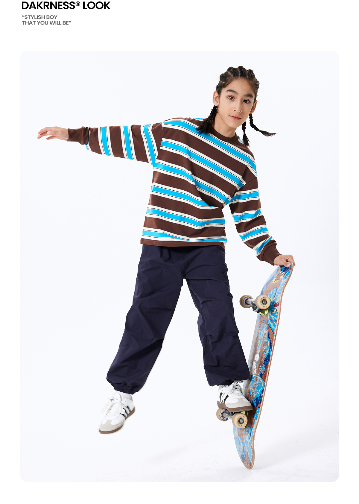 DK 아동복 2025 가을 의류 소녀 및 소년 미국 복고풍 줄무늬 긴팔 티셔츠 아동 중대형 아동 캐주얼 바닥 셔츠스토어 가기