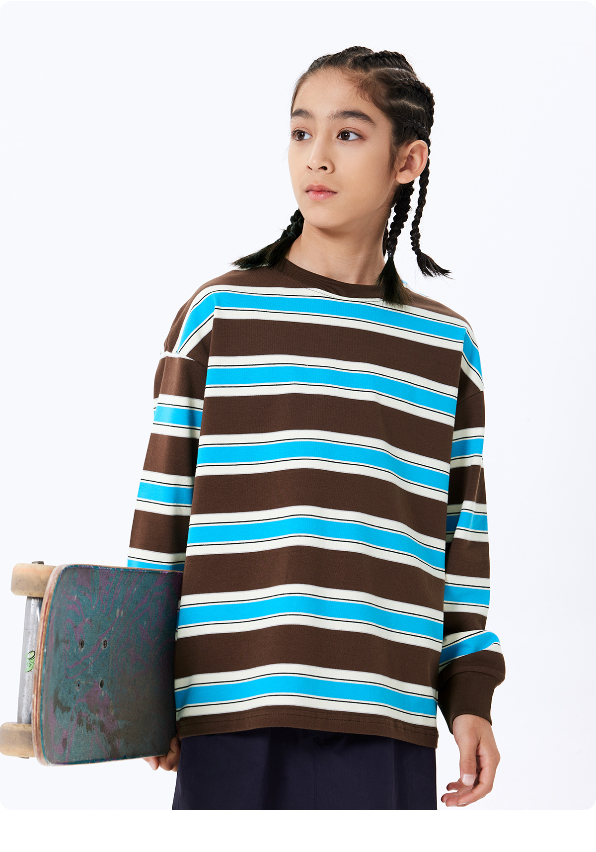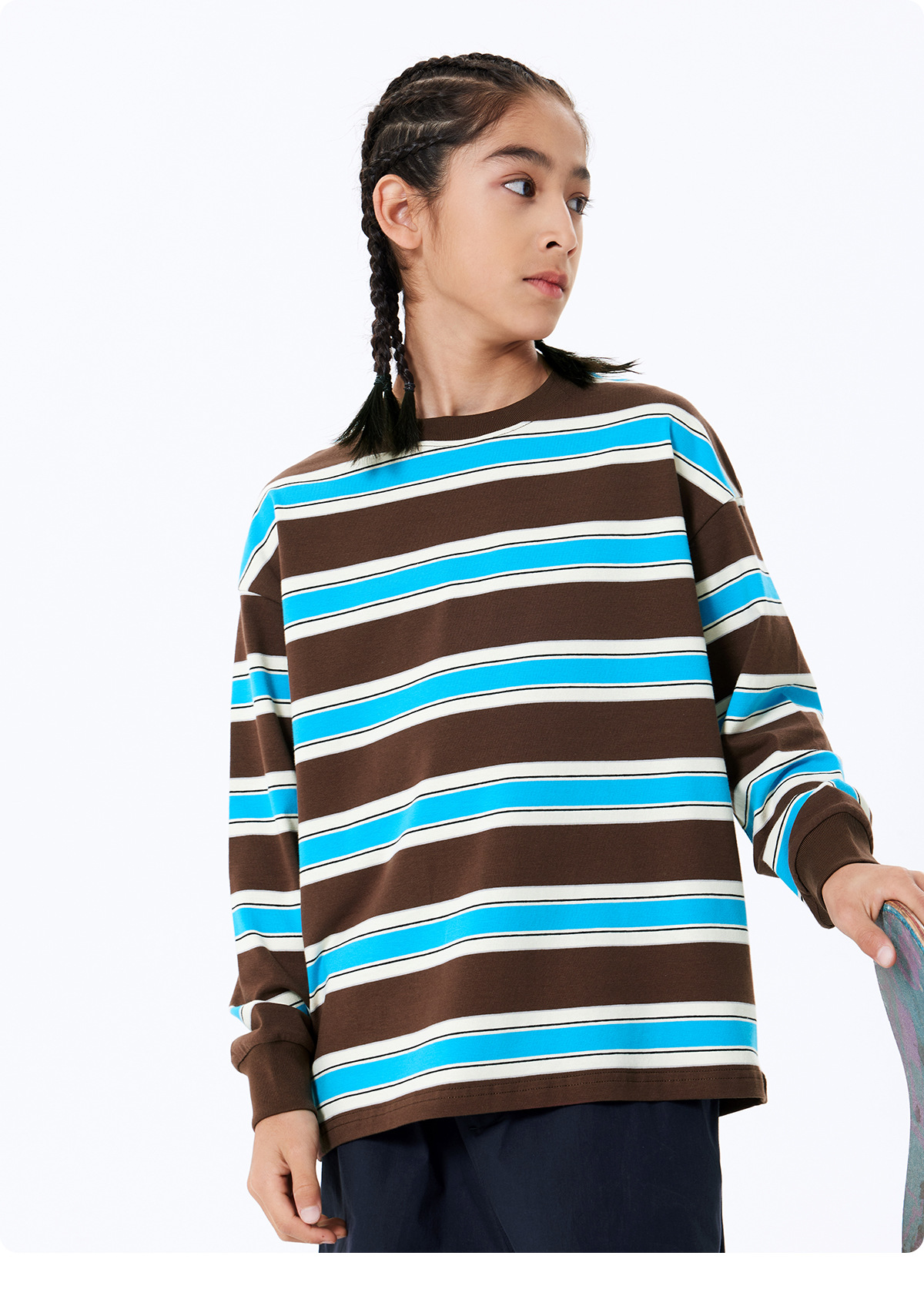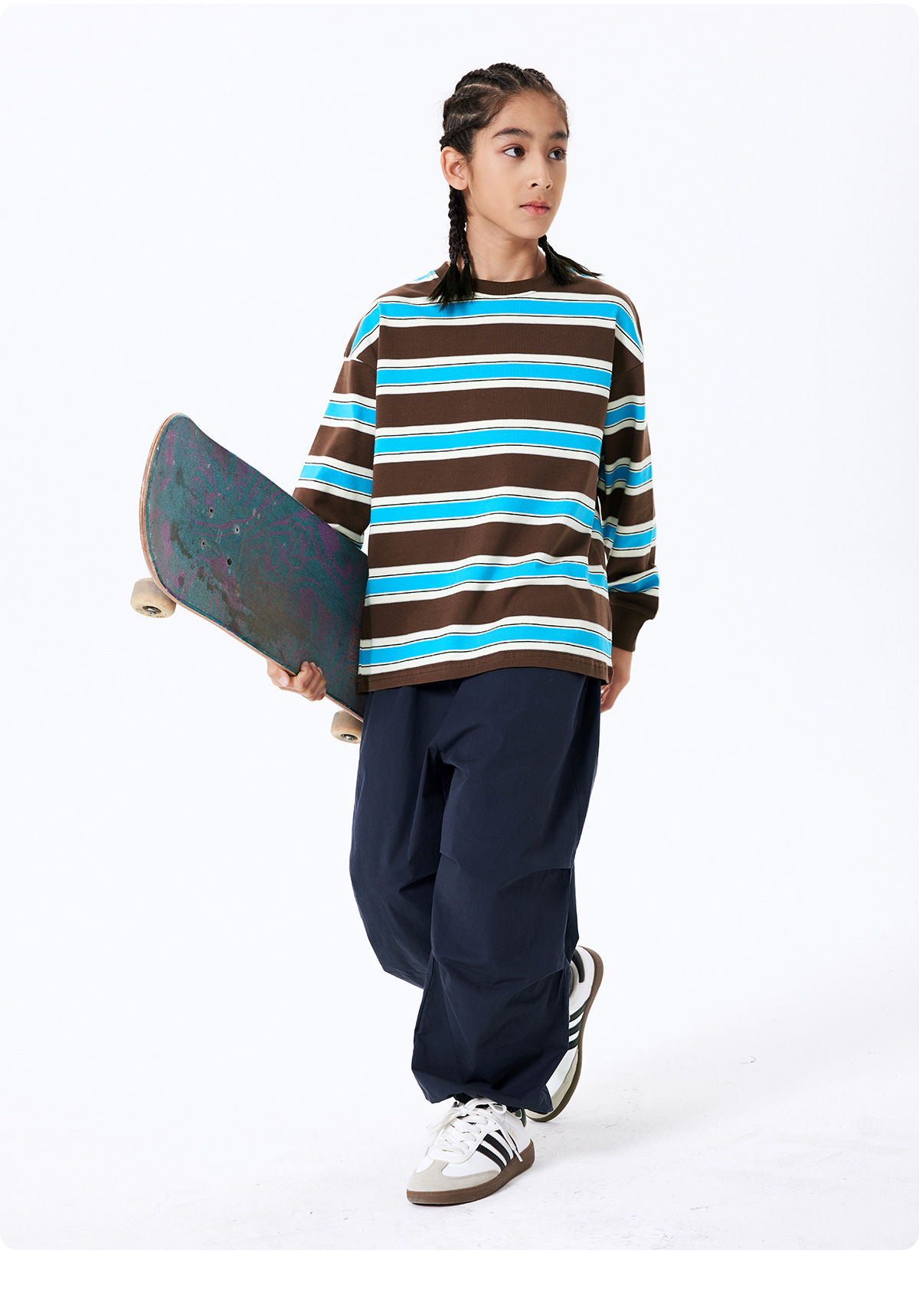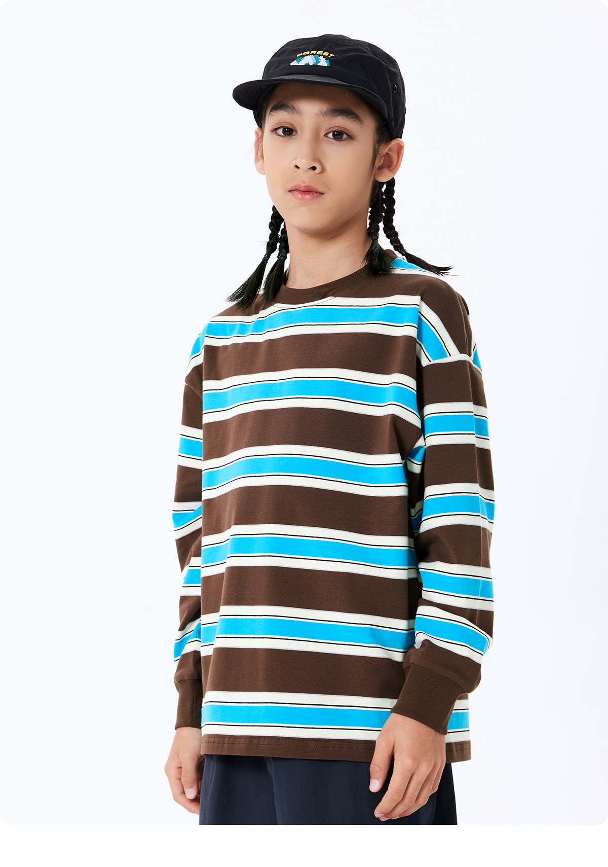 DK 아동복 2025 가을 의류 소녀 및 소년 미국 복고풍 줄무늬 긴팔 티셔츠 아동 중대형 아동 캐주얼 바닥 셔츠스토어 가기