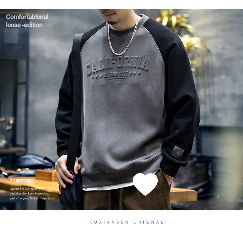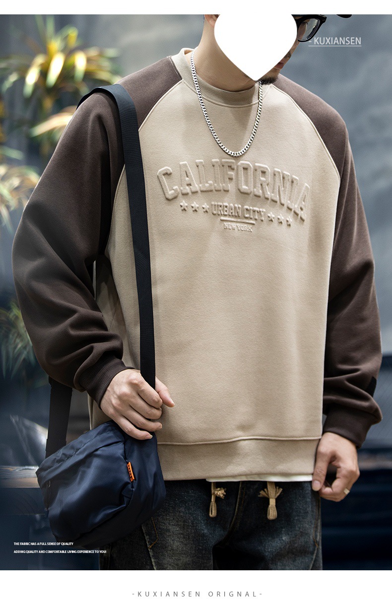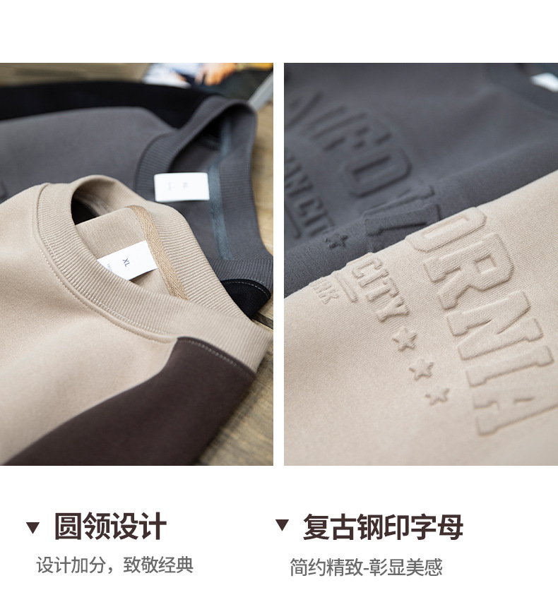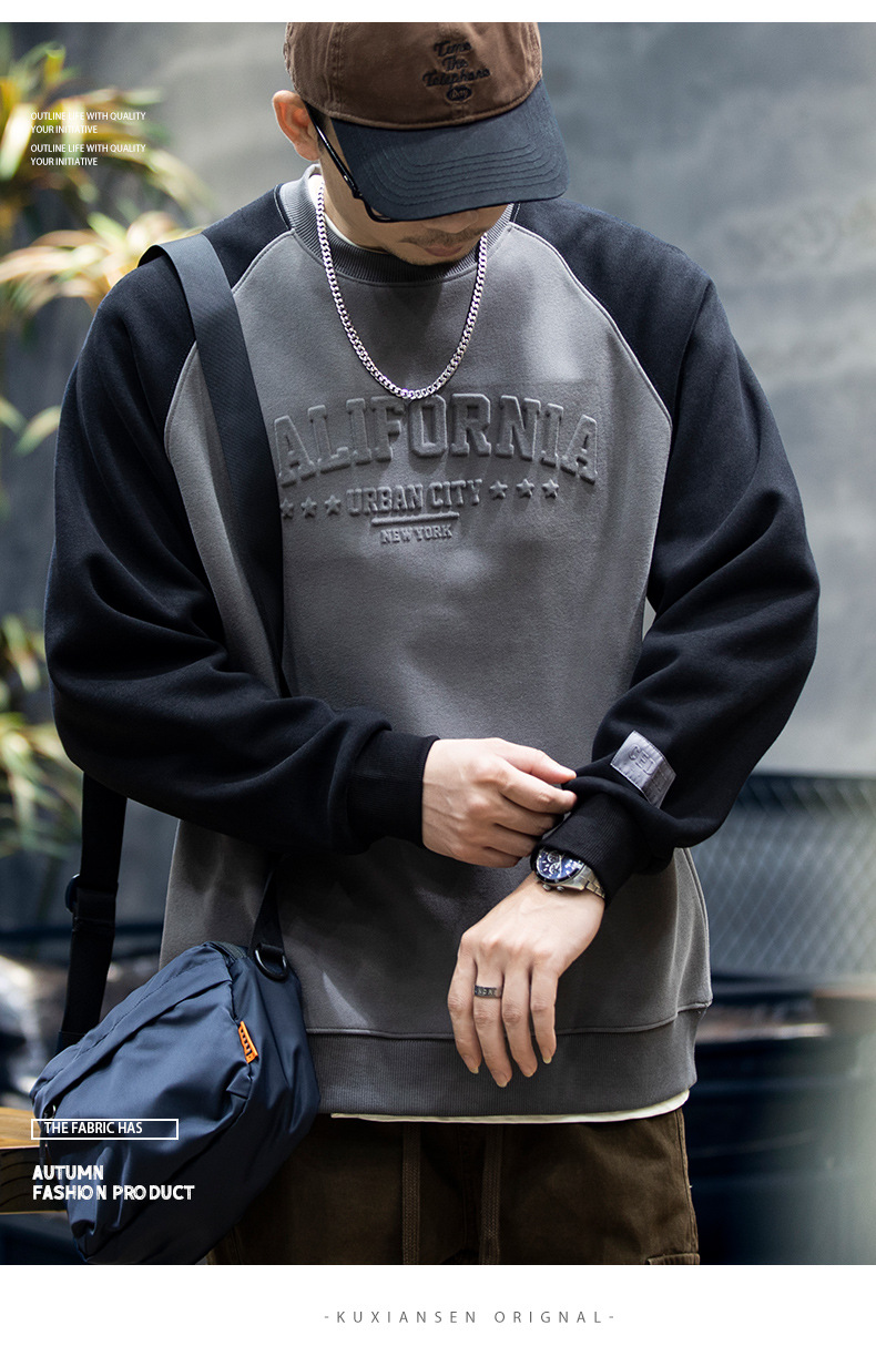 새로운 폭발 360g 미국 스틸 프린트 대비 컬러 기모 조끼 남성 가을과 겨울 복고풍 조수 브랜드 느슨한 승무원 목 휴 세대 헤어