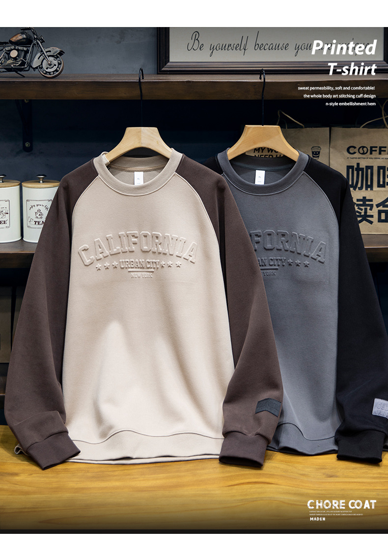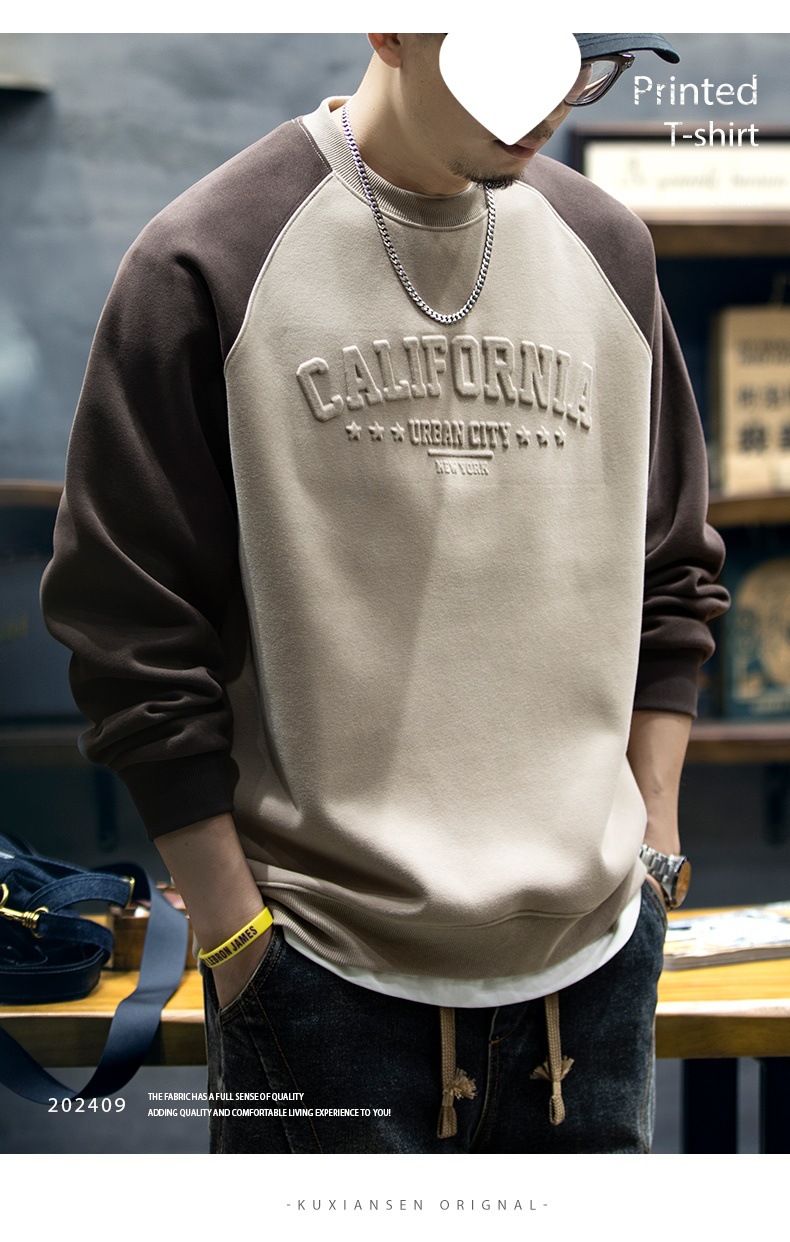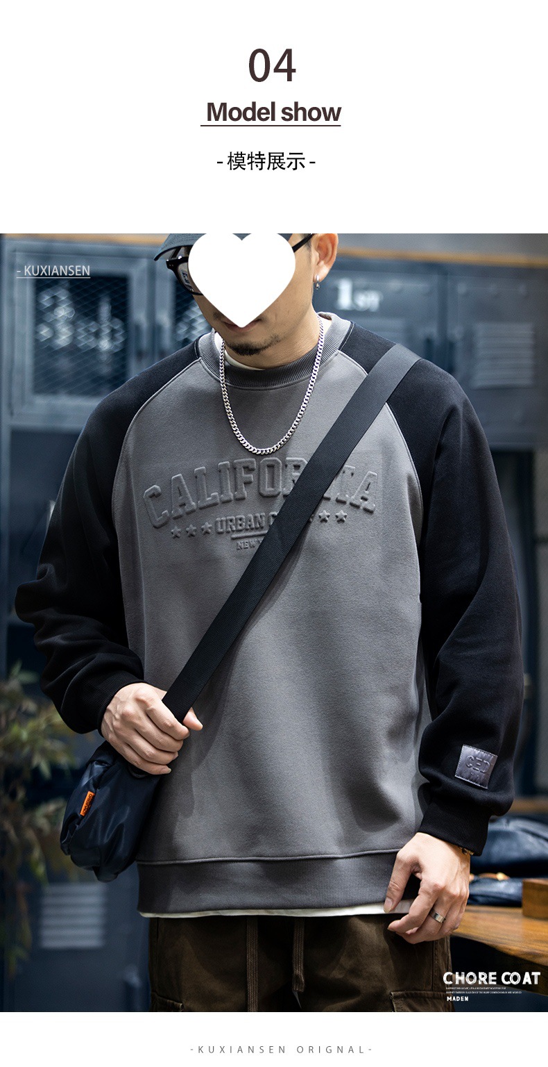 새로운 폭발 360g 미국 스틸 프린트 대비 컬러 기모 조끼 남성 가을과 겨울 복고풍 조수 브랜드 느슨한 승무원 목 휴 세대 헤어