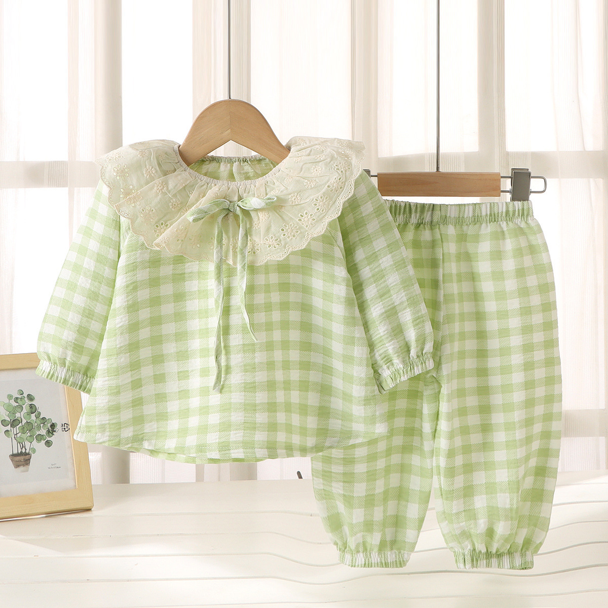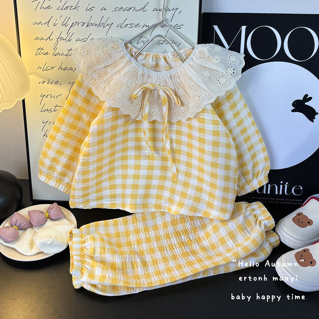 소녀의 구름 면화 홈 의류 세트 귀여운 신선한 인형 칼라 여름 느슨한 어린이 잠옷 투피스 세트