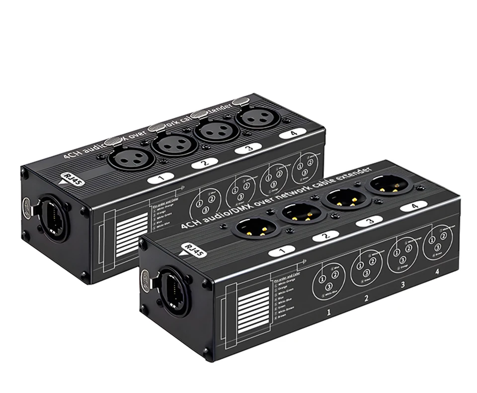 HTA004是一款工业级四通道DMX 网络延伸器,带屏蔽网络抗干扰特性,该音频网线拓展器连同一卷网络线缆,占用的存储空间小,运输轻便,在各种室内和室外环境中享受平衡的数字或者模拟信号传输和清晰、灯光舞台DMX数据转网络传输,便携、高品质高品质 XLR 4CH XLR扩展器为现场声音、舞台或工作室录音和照明、电影套装、电视和广播、制作公司、酒店、教堂、游轮等提供快速的设备配置。
