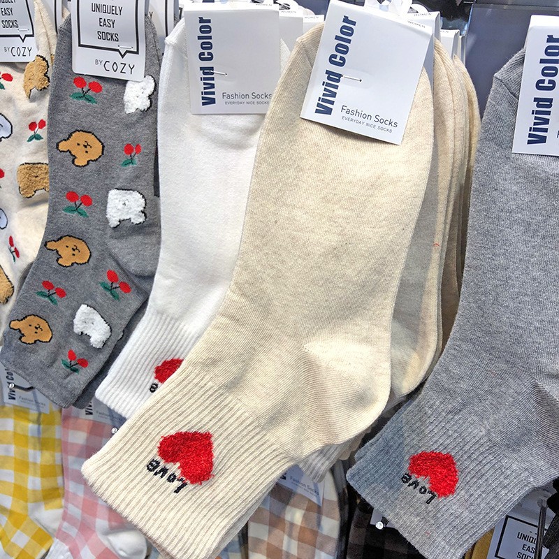 한국 동대문 수입양말 넘기기 사랑 모리 걸스 양말 생체 솔리드 컬러 심플한 바람면 양말스토어 가기