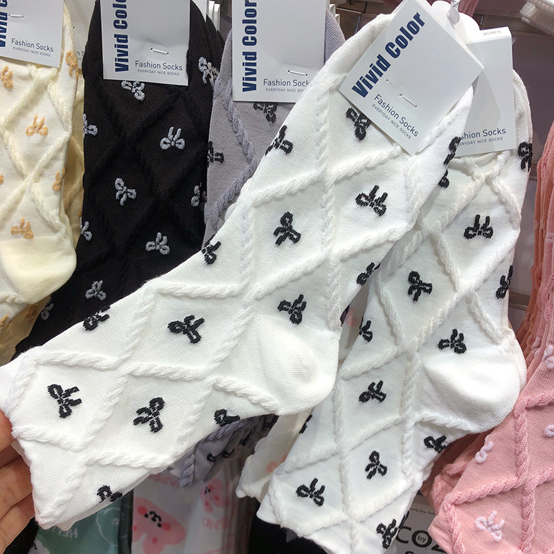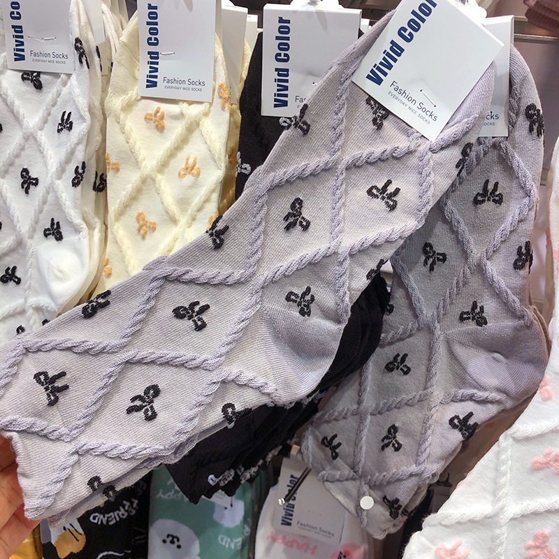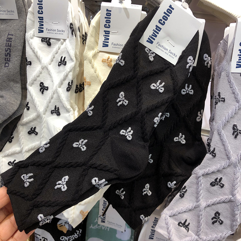 [재고] 2025 한국 생생한 봄과 여름 새로운 양말 발레 활 소녀 양말 다이아몬드 튜브