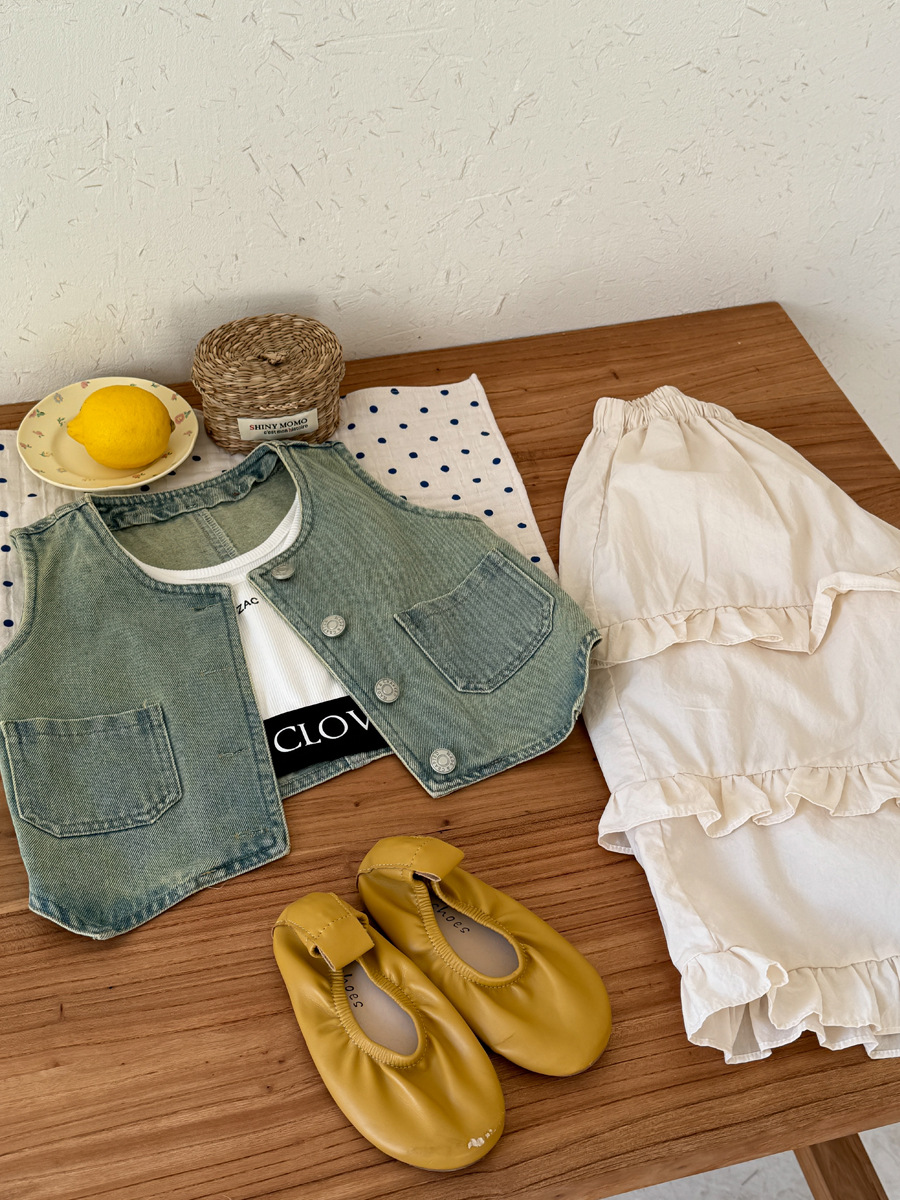 반품 불가 여아 봄 여름 한국 스타일 데님 조끼 아동용 오래된 복고풍 데님 조끼 재킷스토어 가기