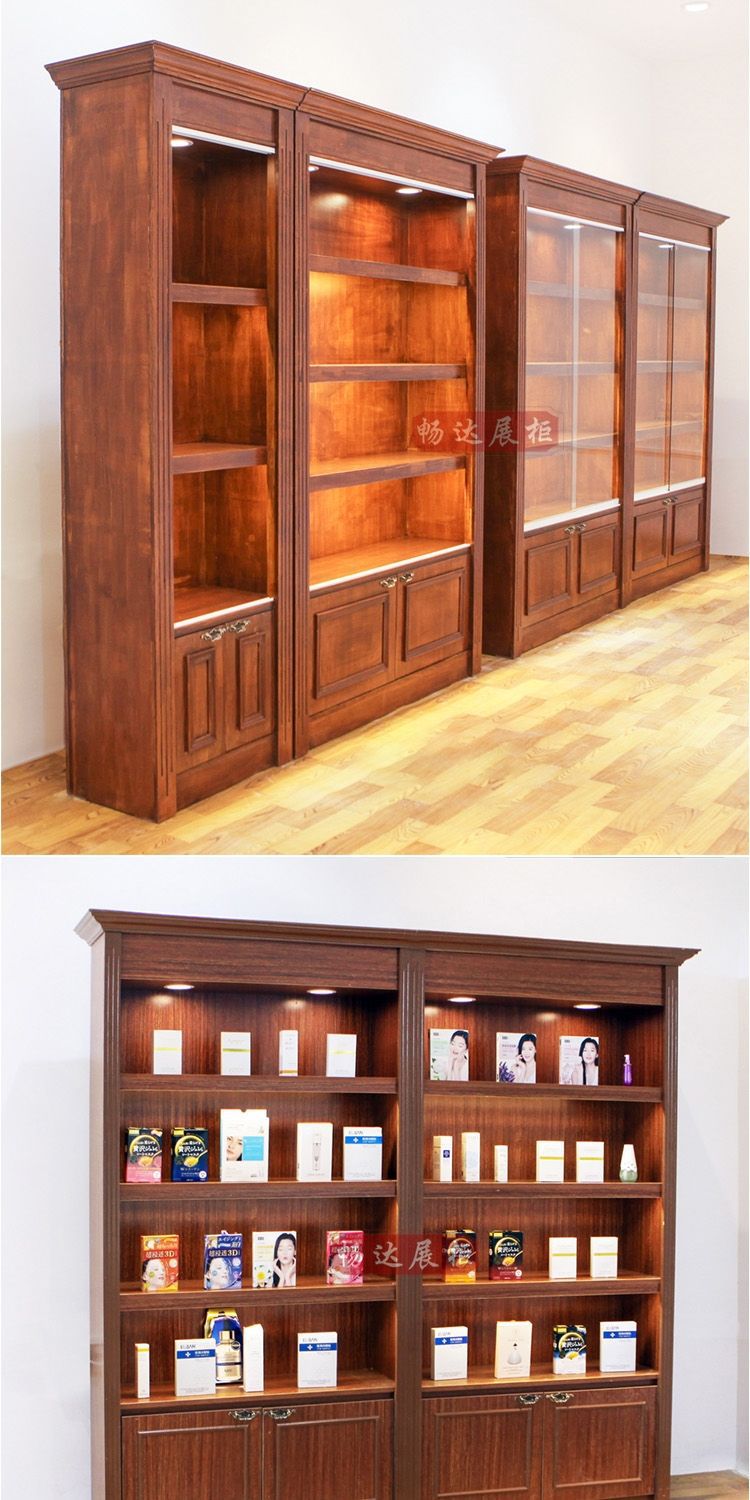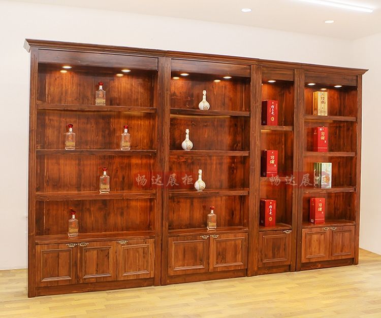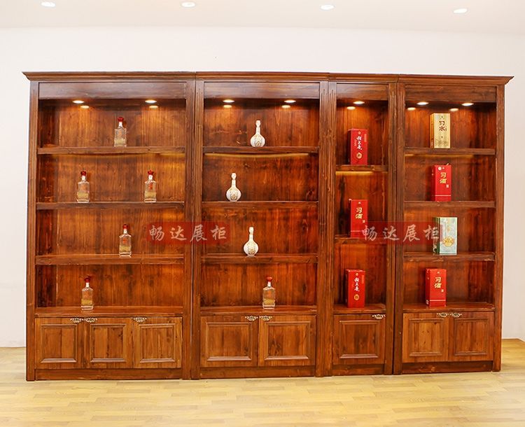 단단한 나무 빈티지 알코올 및 담배 디스플레이 캐비닛 주류 차 보석 디스플레이 캐비닛 유리 옥 가방 화장품 카운터스토어 가기