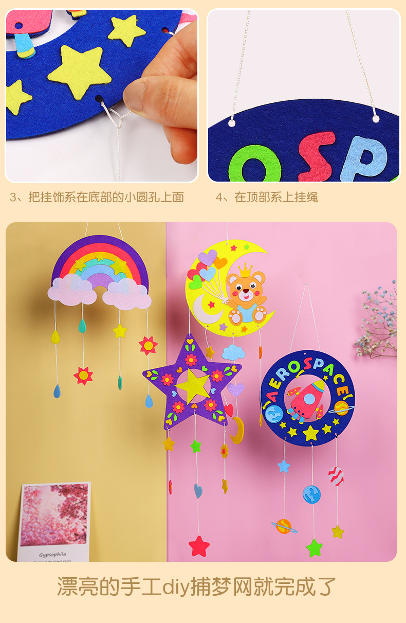 국경 간 수동 꿈 포수 유치원 어린이 부모-자식 깨달음 diy 소재 가방 부직포 꿈 포수 매달린 장식품스토어 가기