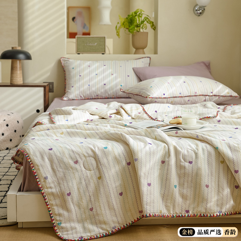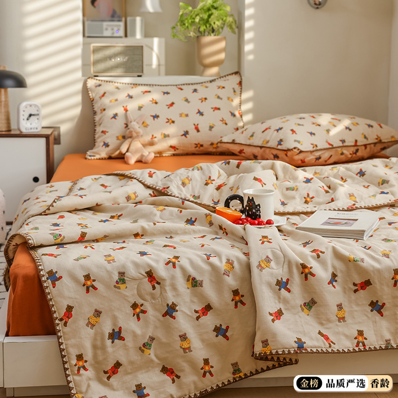 클래스 A 면 이중층 원사 대두 퀼트 코어 여름 얇은 면 에어컨 이불 20% 콩 여름 시원한 이불 세척 가능스토어 가기