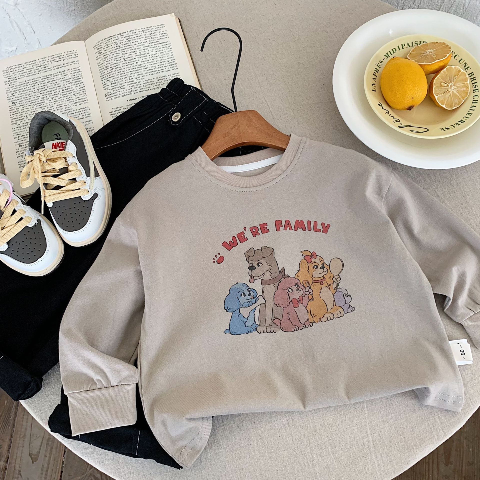 【클리어런스 특가, 반품 및 교환 불가】봄 가을 신상품 어린이 강아지 가족 풀오버 티셔츠 H0053