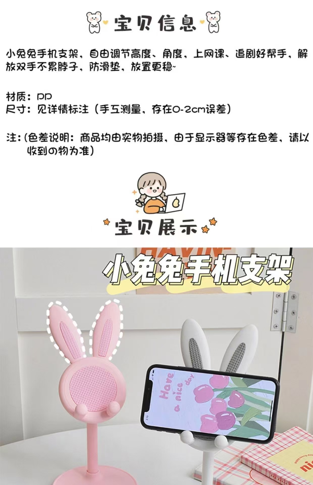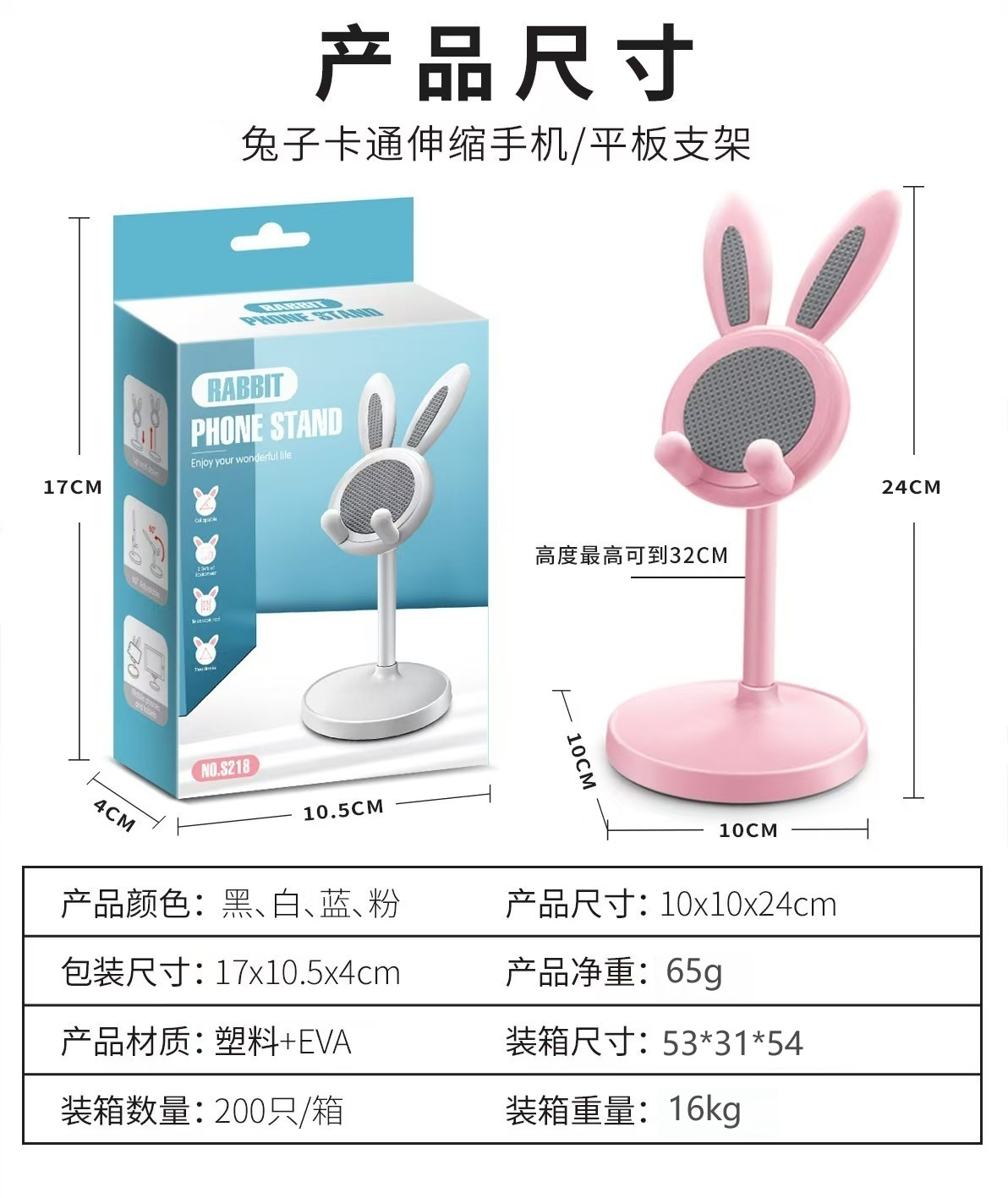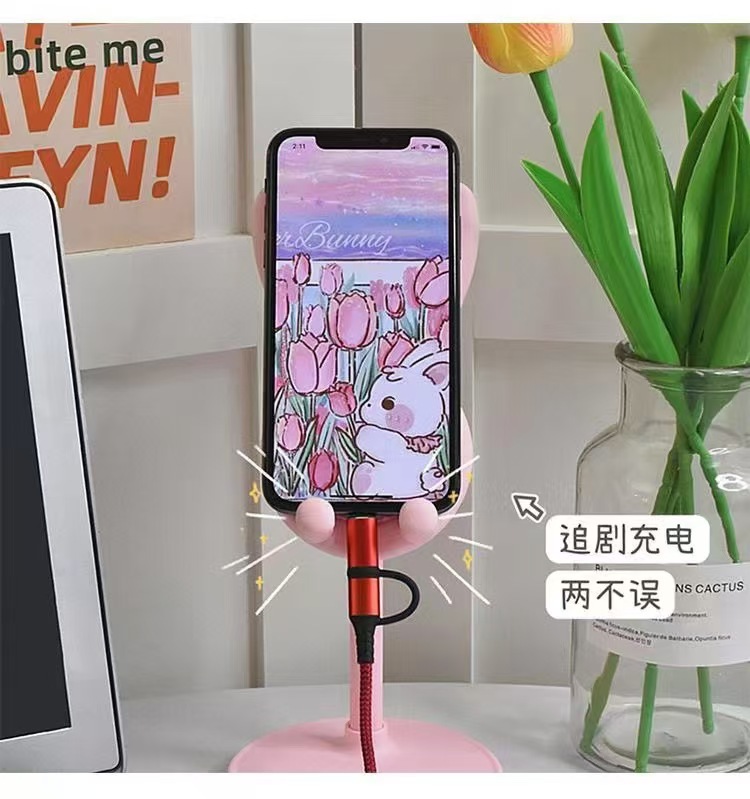 국경 간 토끼 휴대 전화 브래킷 데스크탑 창조적 인 리프팅 텔레스코픽 셀카 라이브 게으른 휴대 전화 브래킷 도매스토어 가기