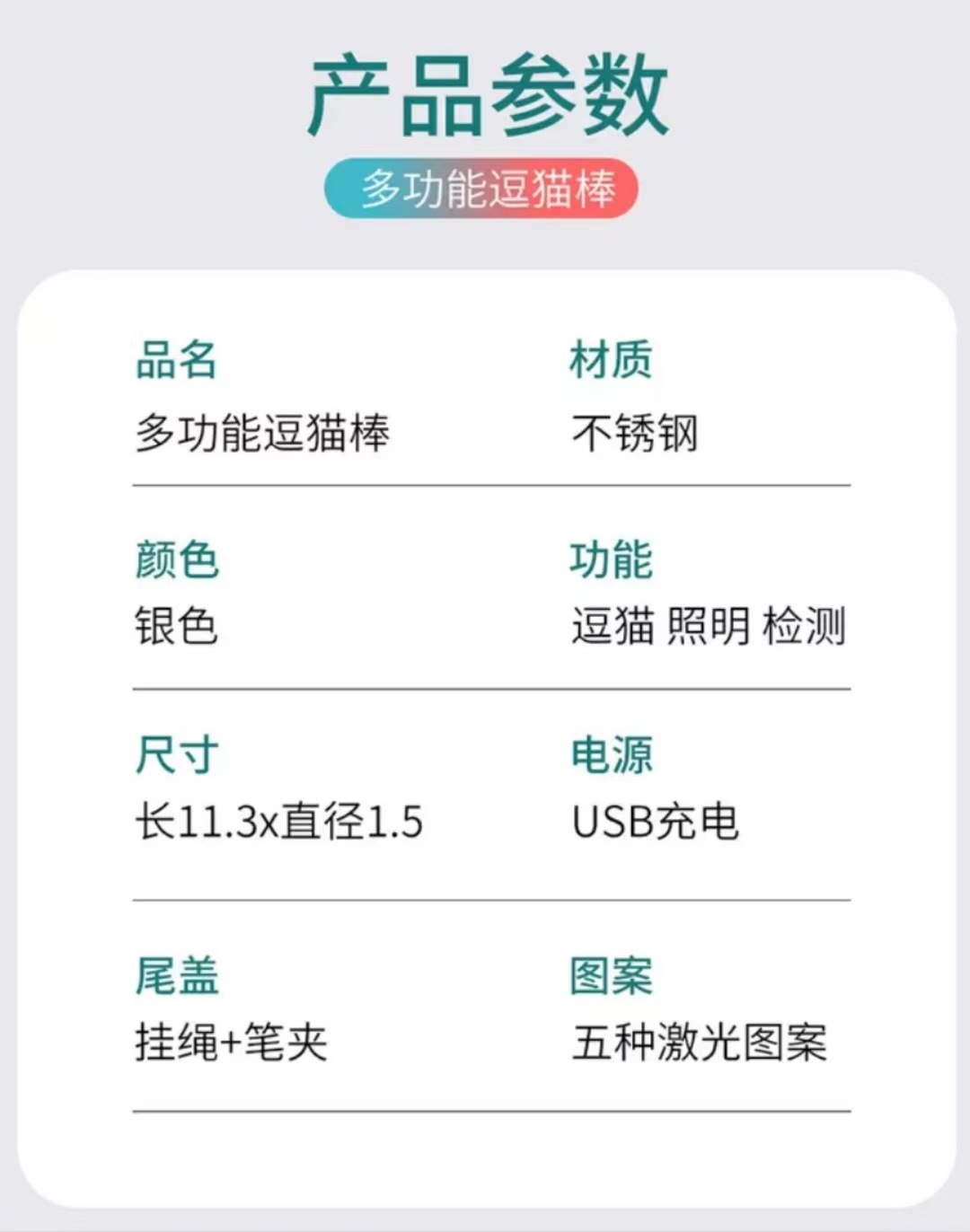 • USB 충전 + 패턴 + 레이저 + 보라색 빛 고양이 이끼 + 사진
