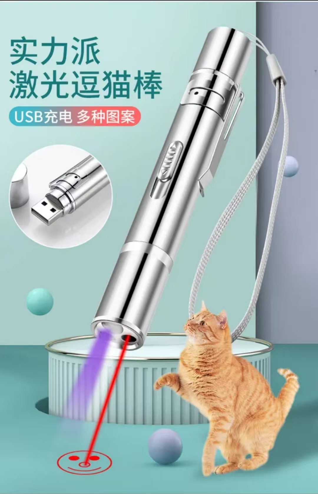 고양이 장난감 고양이 레이저 포인터 USB 충전식 고양이 셀프 안녕 패턴 고양이 적외선 애완 동물 용품스토어 가기