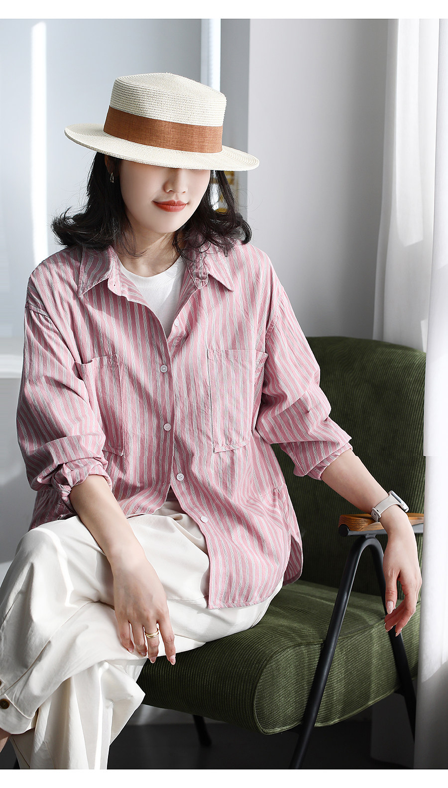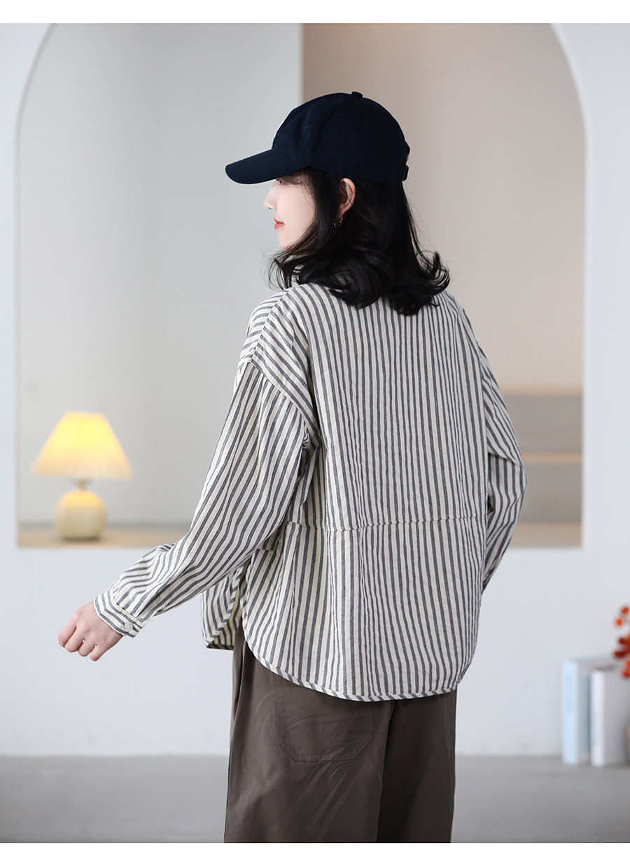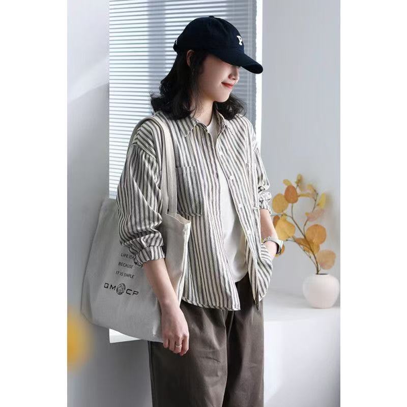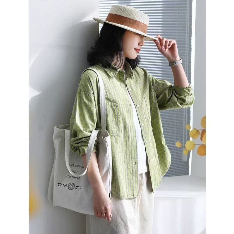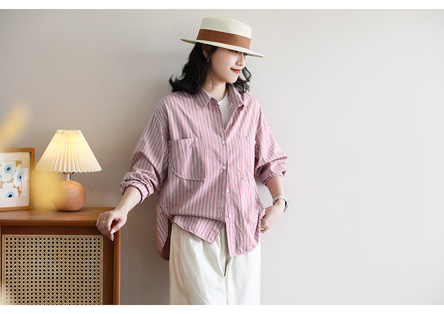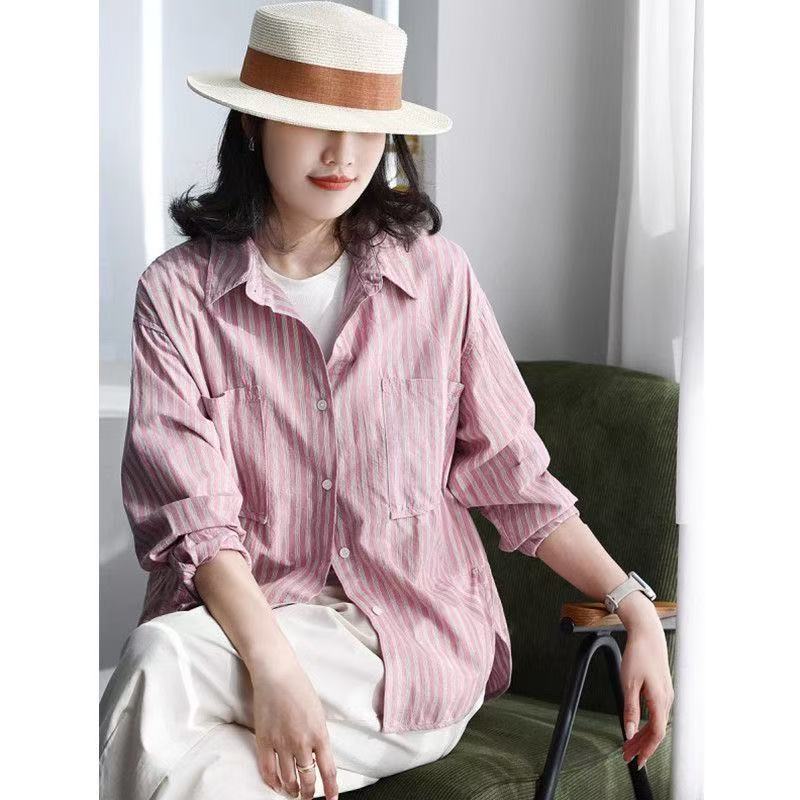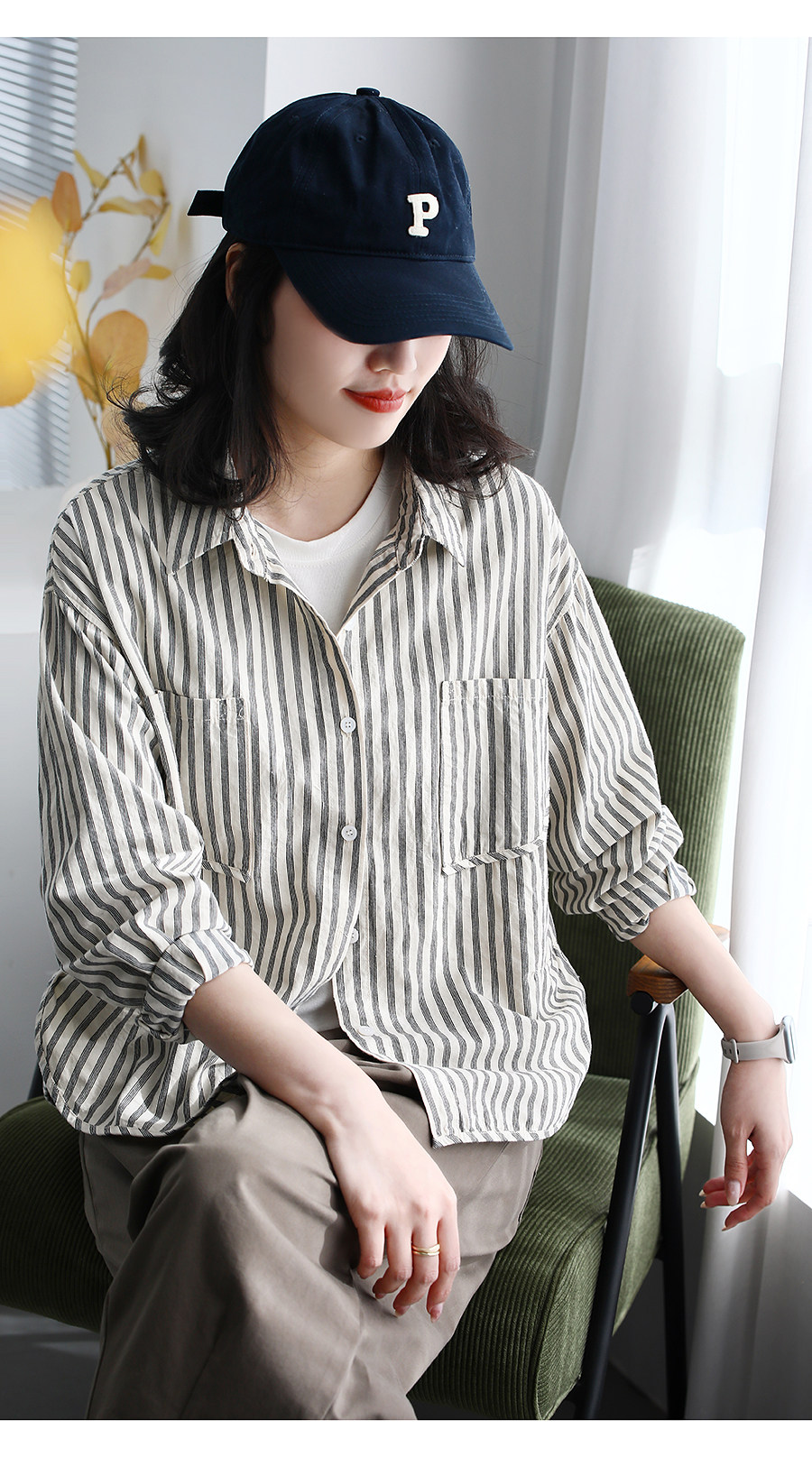 봄 새 도착 줄무늬 셔츠 여자 옷깃 캐주얼 올매치 느슨한 슬리밍 한국 긴팔 셔츠 6870스토어 가기