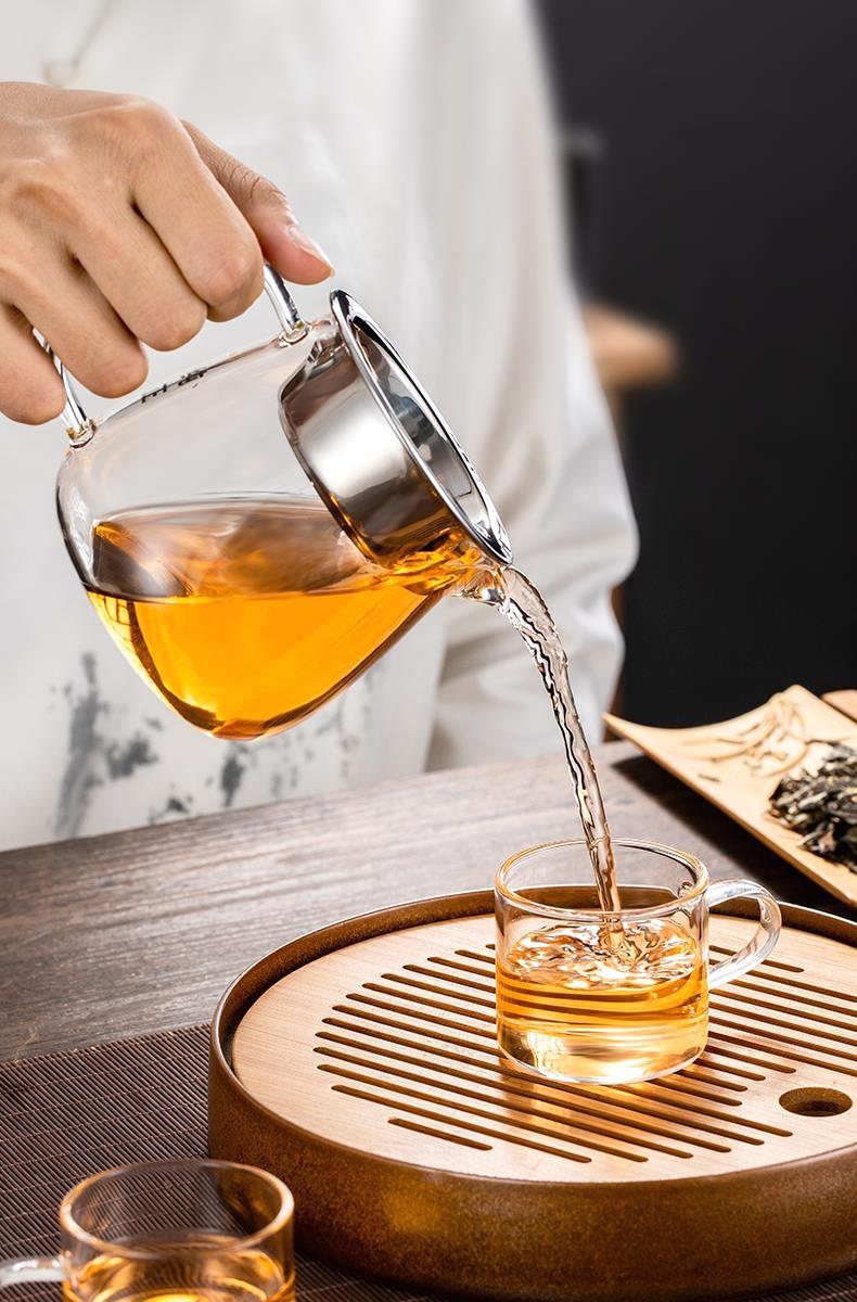 하이 엔드 크리스탈 요금 컵 순수 유리 두꺼운 내열성 쿵푸 차 세트 차 배수 통합 찻잔 세트