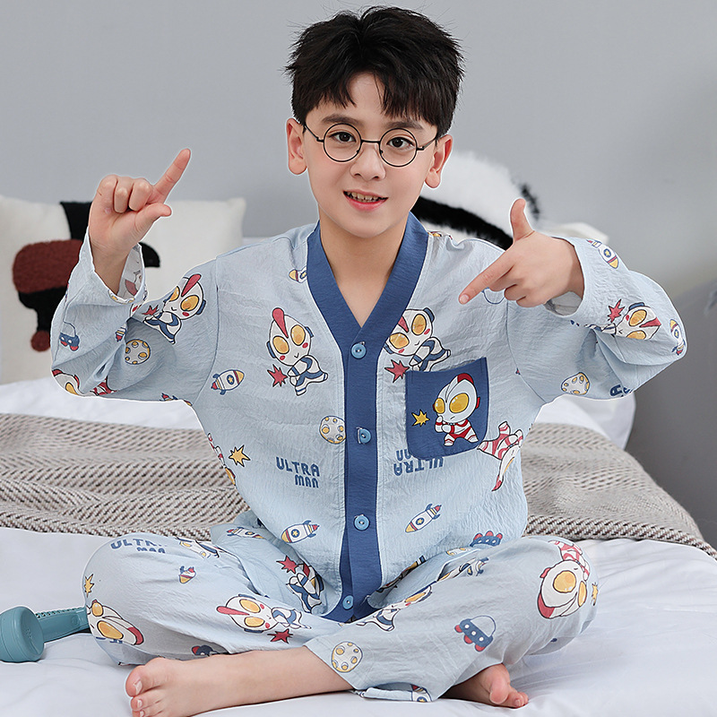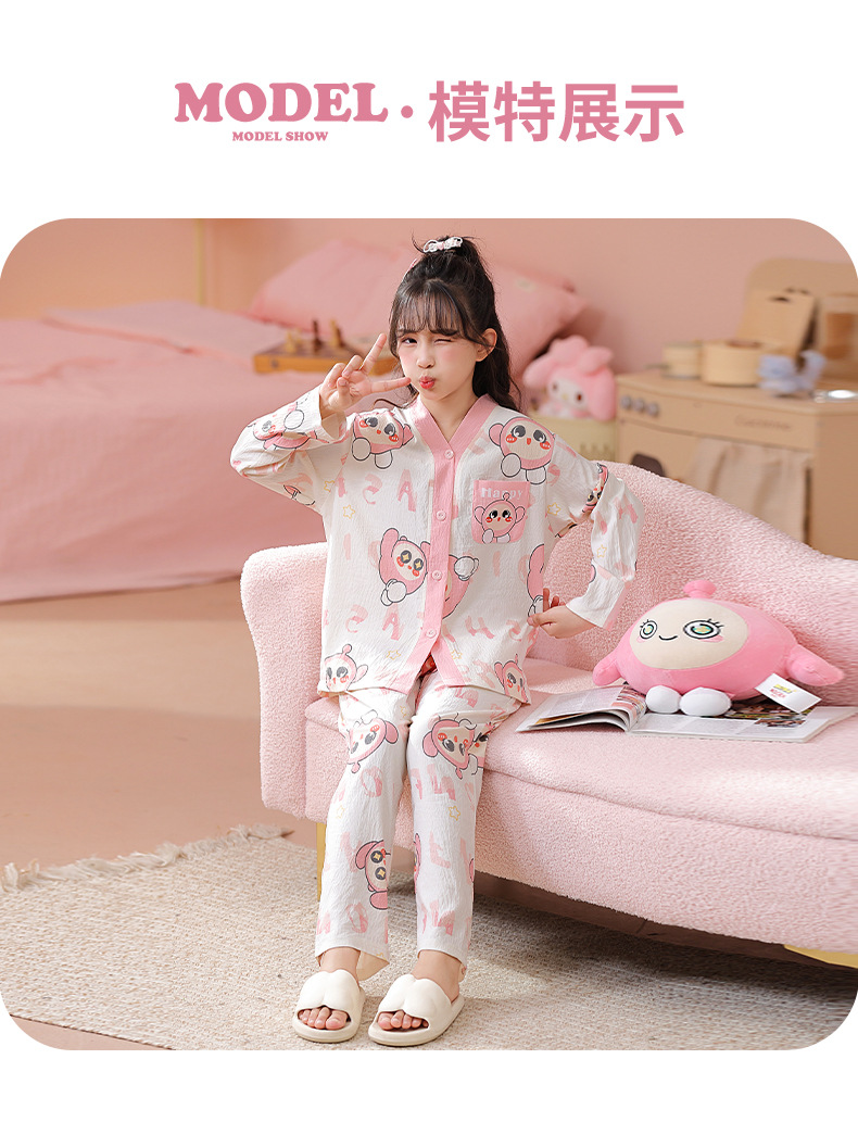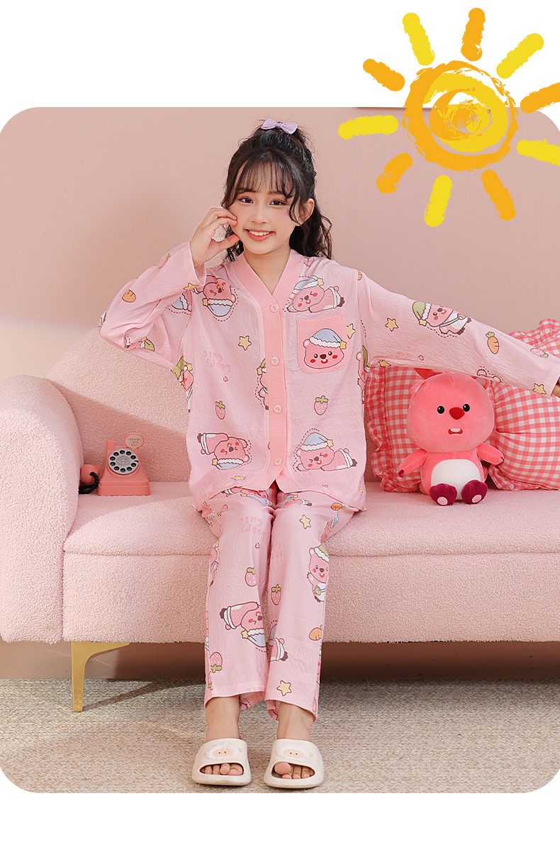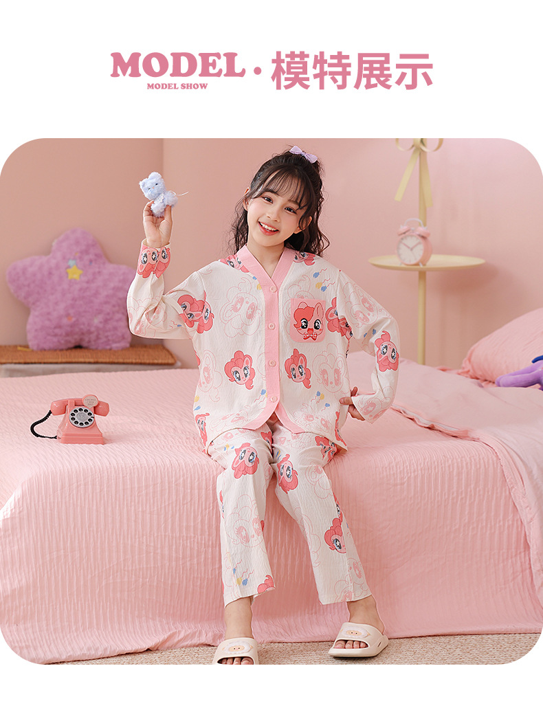 어린이 잠옷 소녀 봄과 가을 긴 소매 얇은 여름 소녀 만화 귀여운 아기 중간과 큰 어린이 집 옷 세트