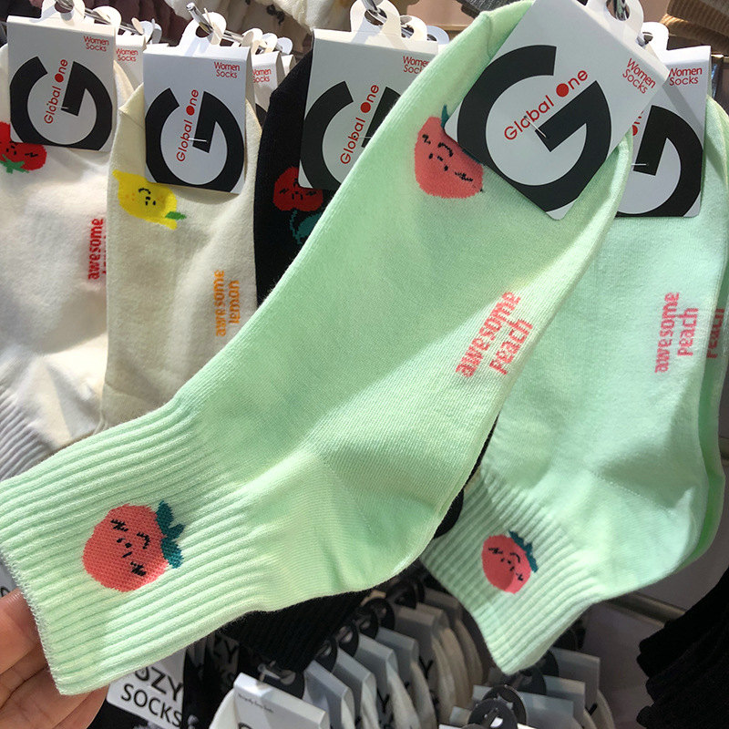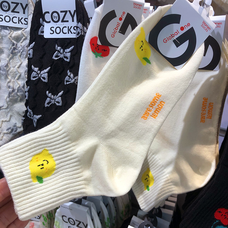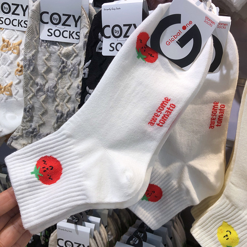 2025 봄과 여름 새로운 양말 한국 수입 여성 양말 귀여운 과일 만화 면 양말 glalalane 짧은 튜브 양말스토어 가기