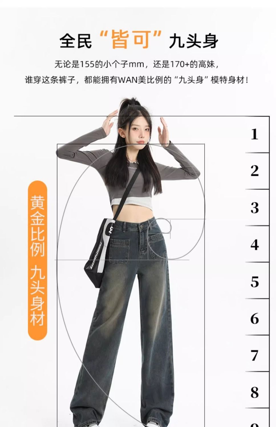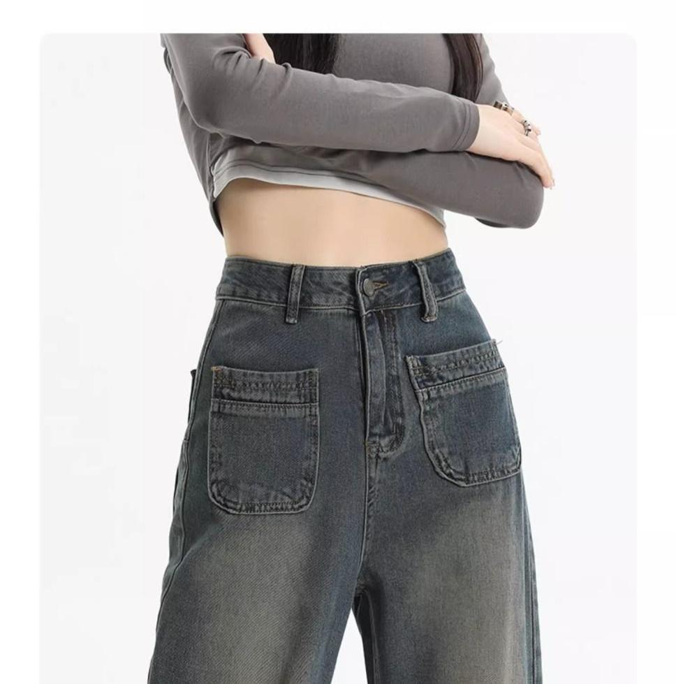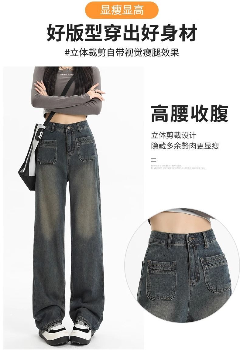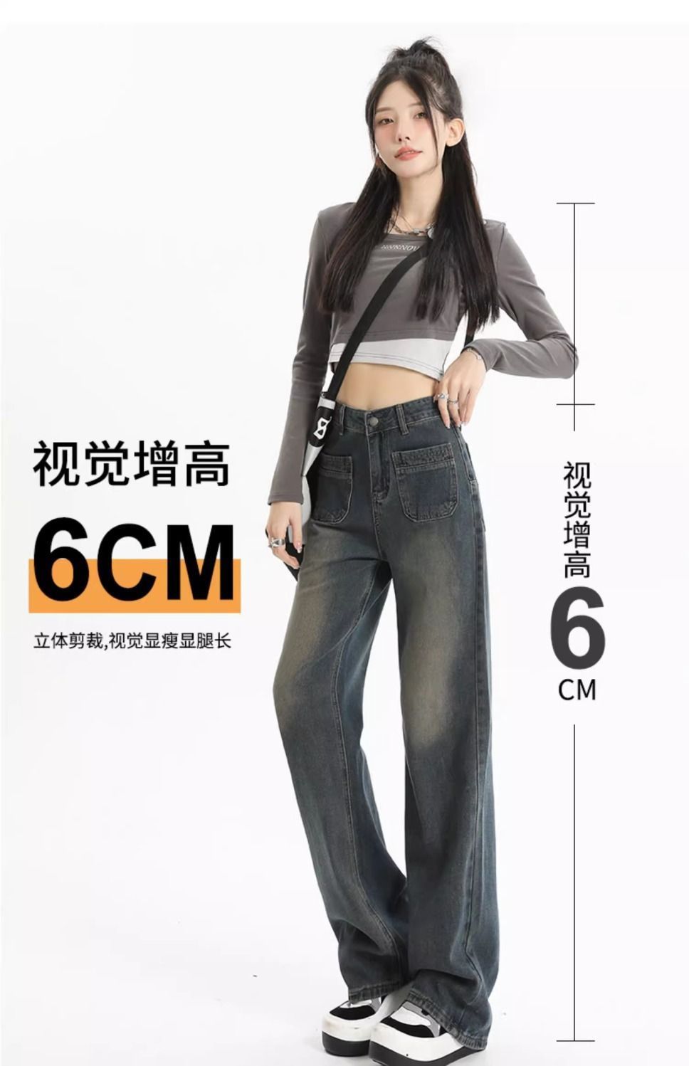 시멘트 회색 넓은 다리 청바지 여성의 느슨한 봄과 가을 새로운 높은 허리 향수 레트로 좁은 버전 스트레이트 바닥 긴 바지스토어 가기
