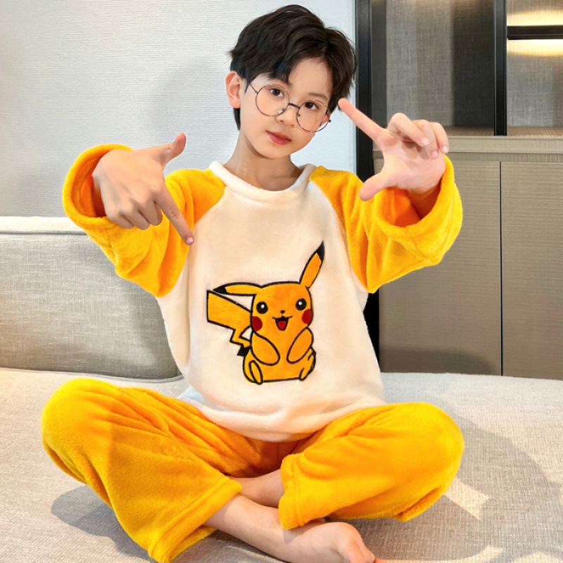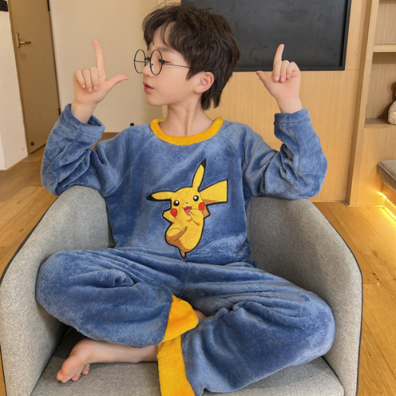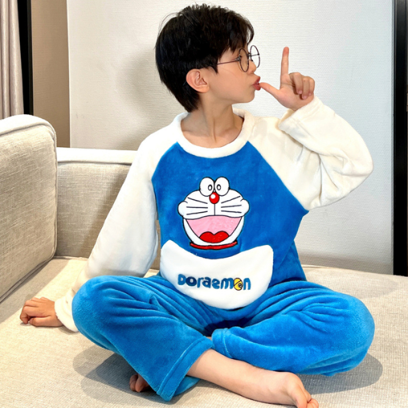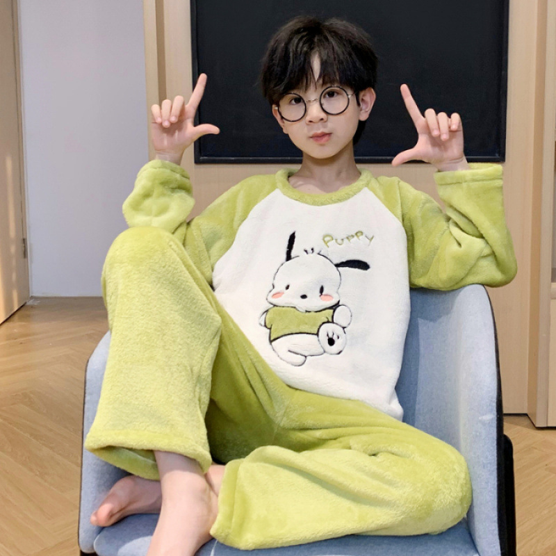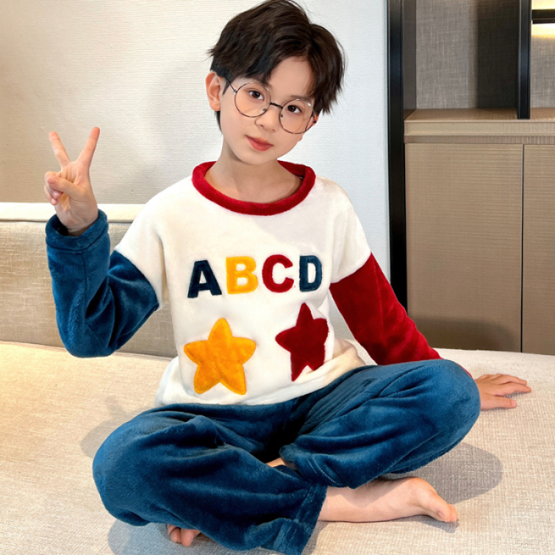 어린이 잠옷 플란넬 겨울용 남녀공용 코랄벨벳 풀오버 중대형 어린이 남아 홈웨어 세트