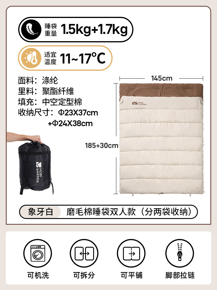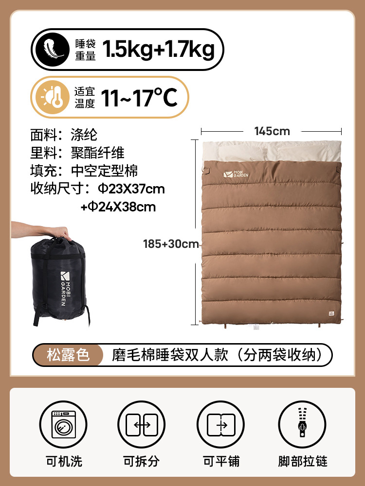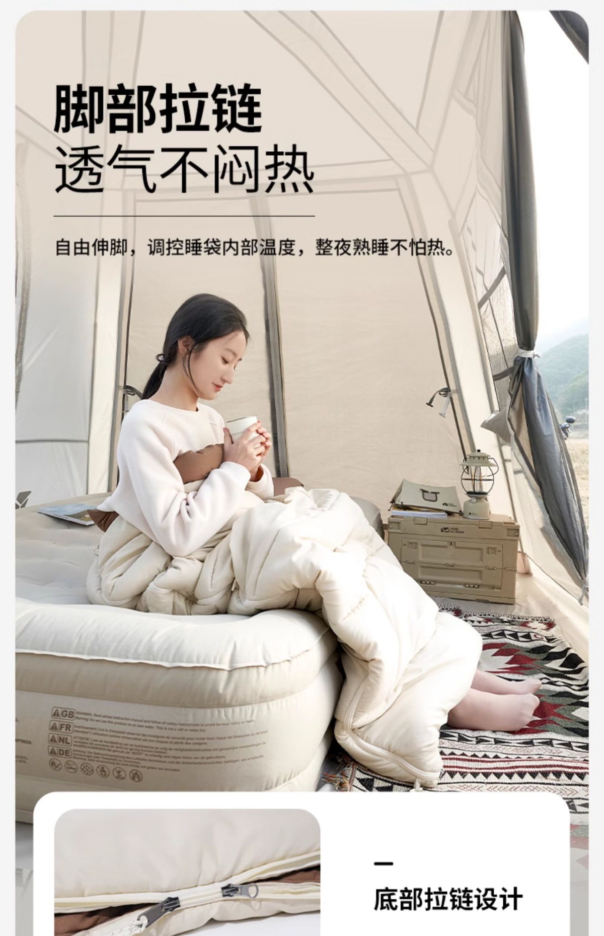 Muco Flute 슬리핑 백 가을과 겨울 성인 야외 방한 캠핑 퀼트 성인 점심 휴식 겨울 샌딩 더블 크레센트스토어 가기