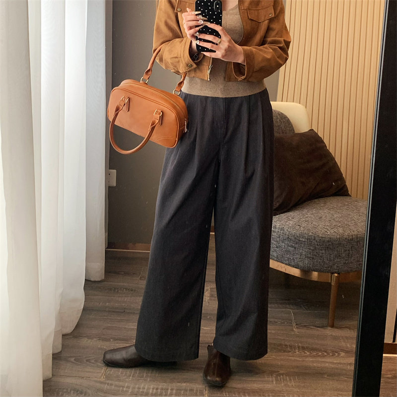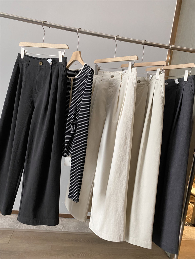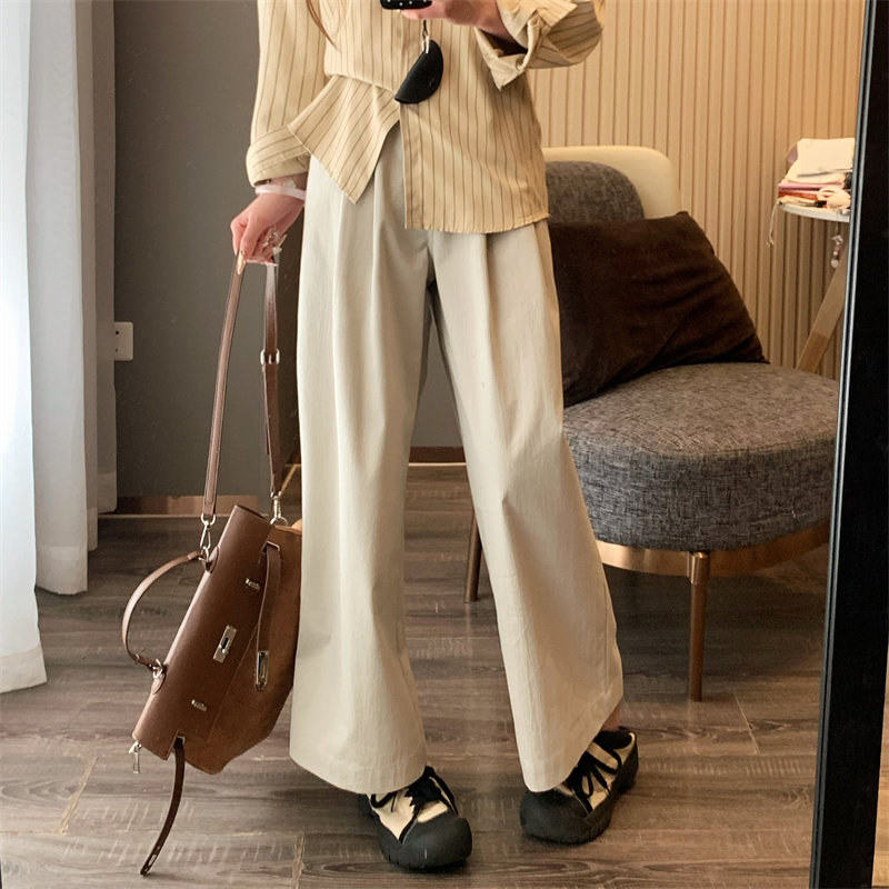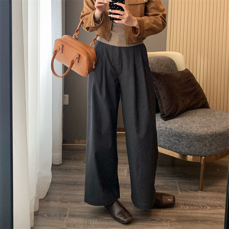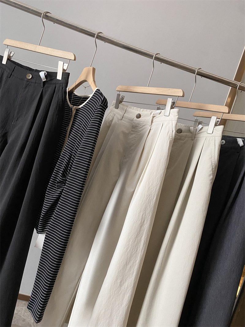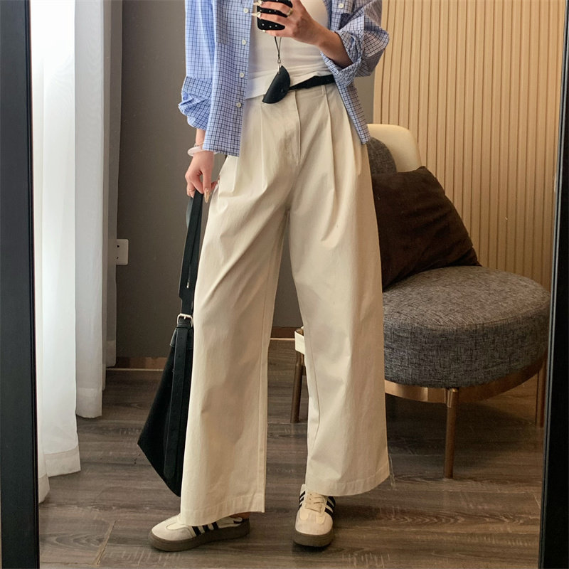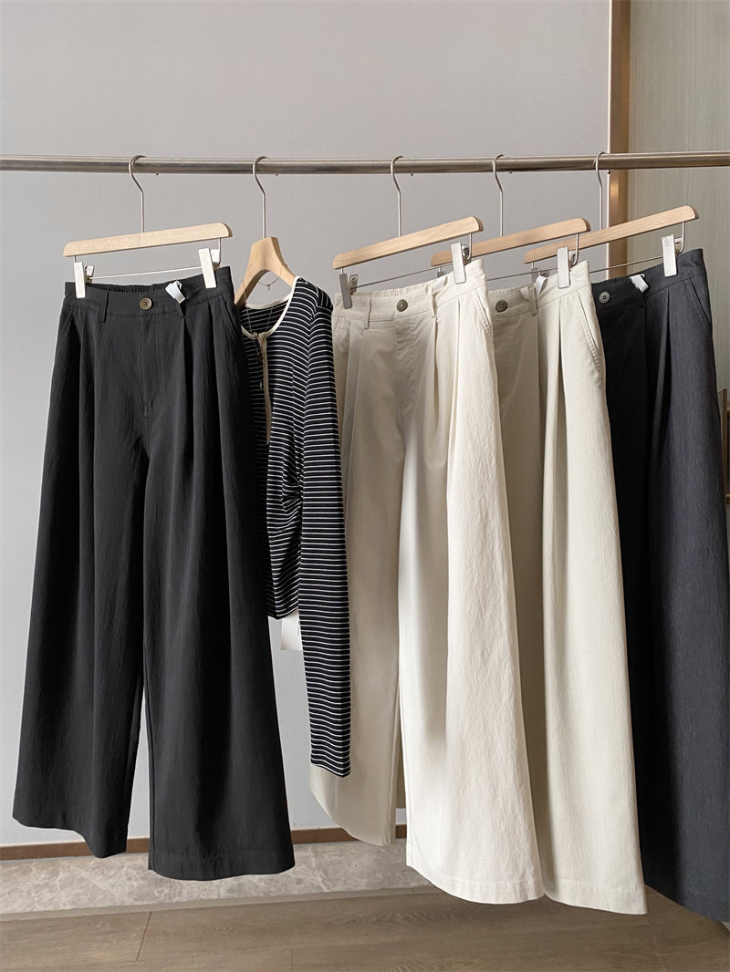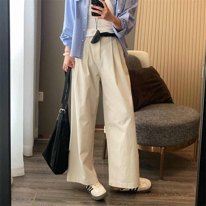 클래식 리턴 두부 바지! 높은 짠 고밀도 세척 코튼 힙을 덮는 스트레이트 캐주얼 팬츠 봄 높은 허리 자른 바지