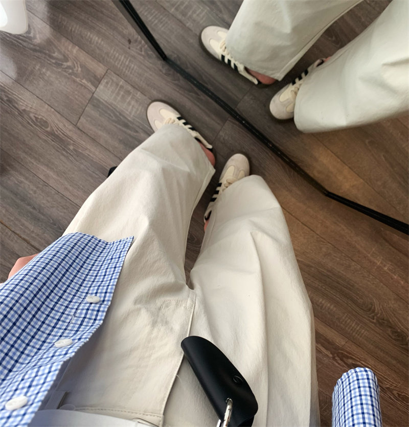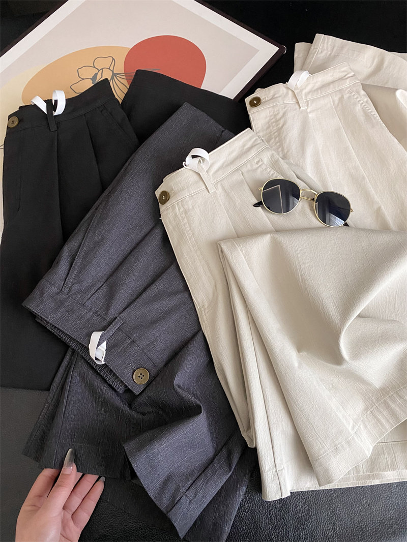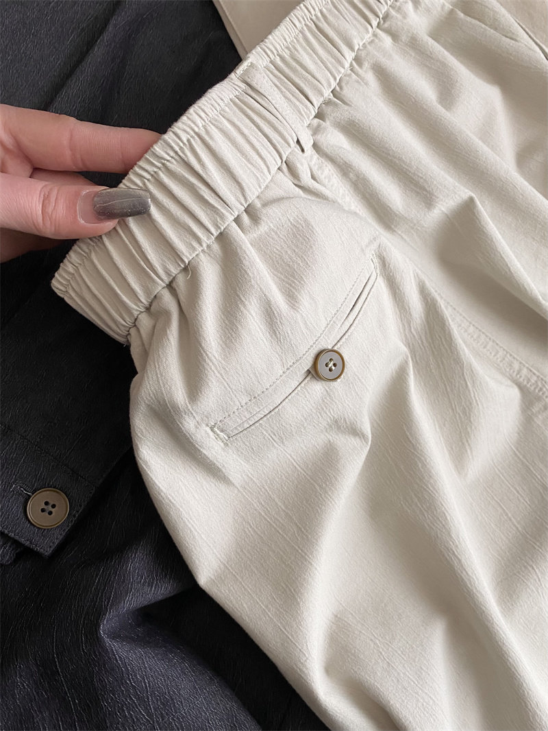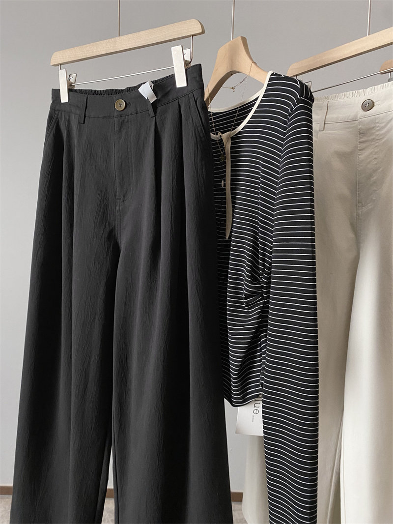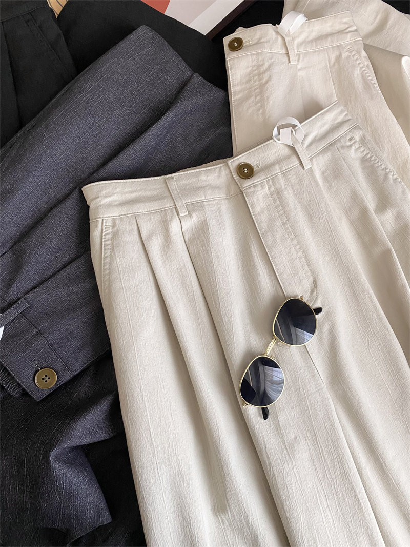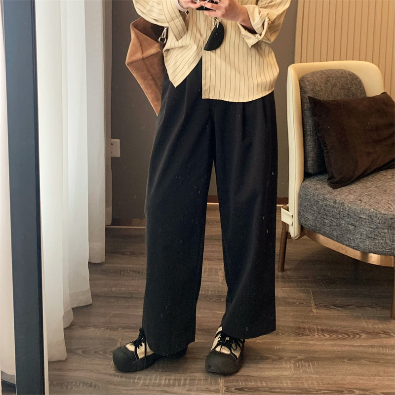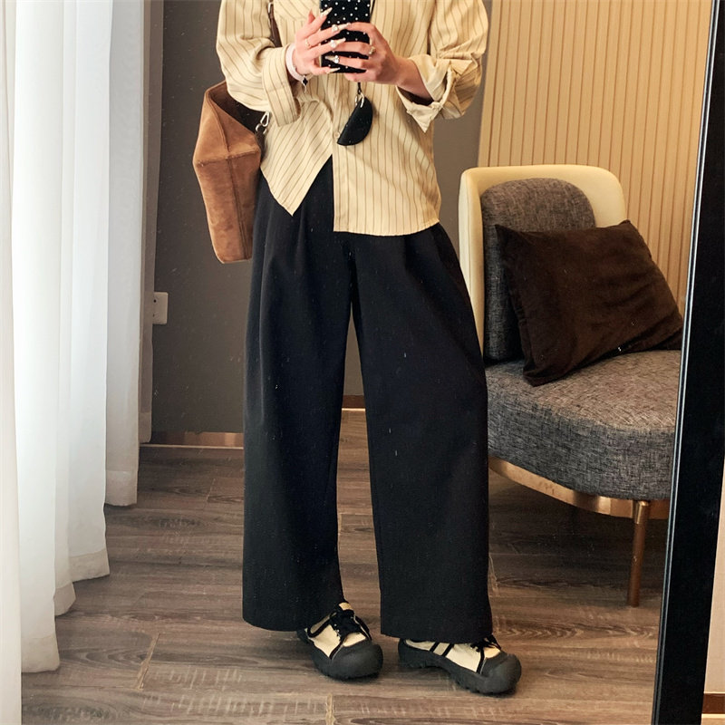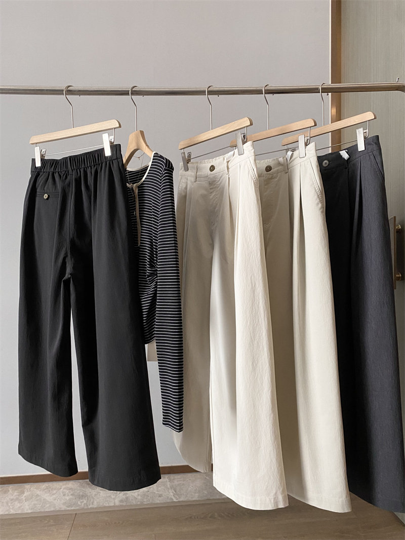 클래식 리턴 두부 바지! 높은 짠 고밀도 세척 코튼 힙을 덮는 스트레이트 캐주얼 팬츠 봄 높은 허리 자른 바지