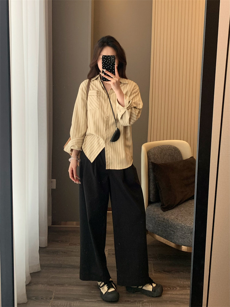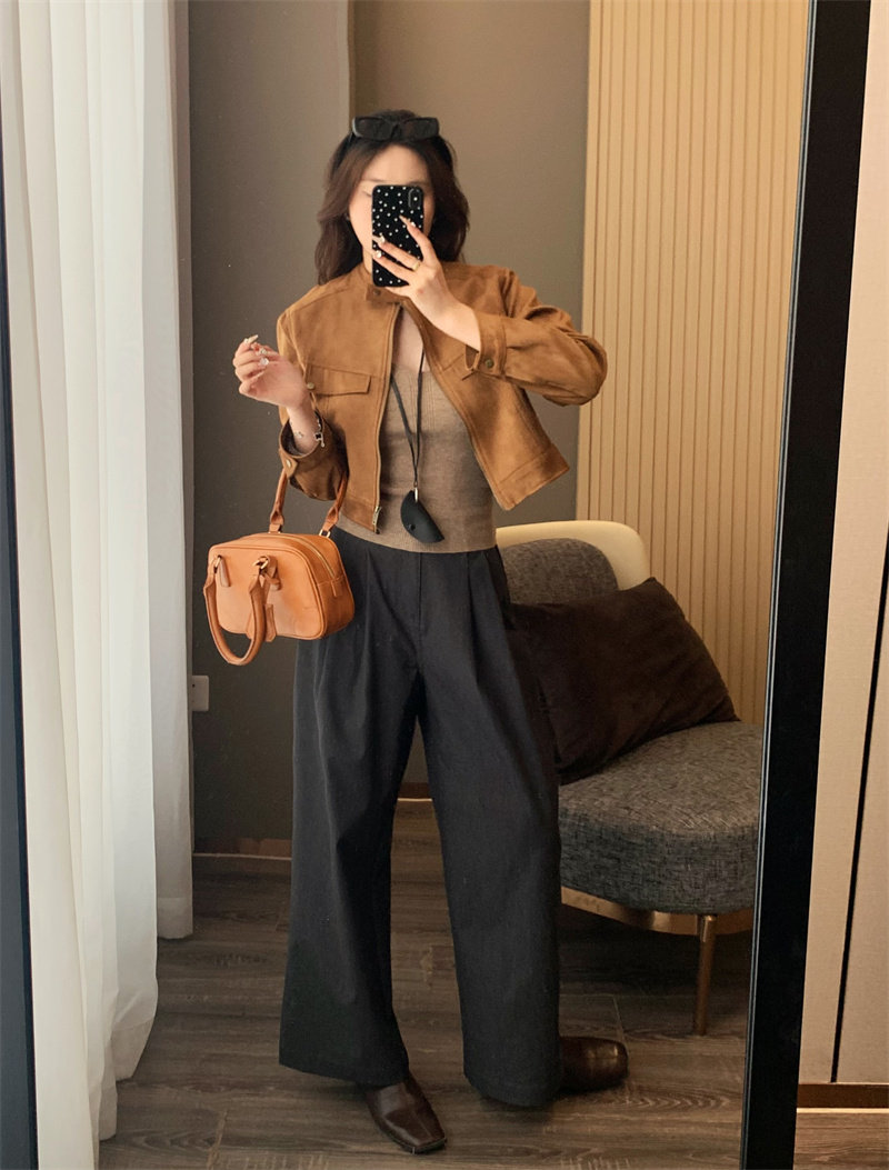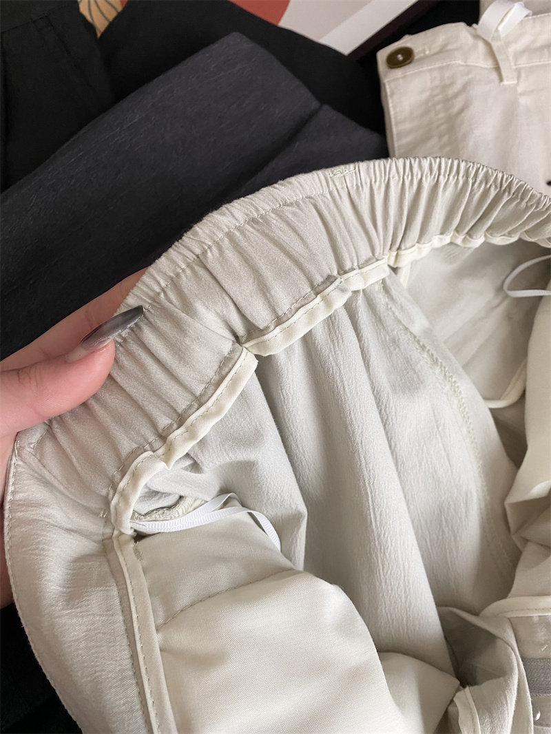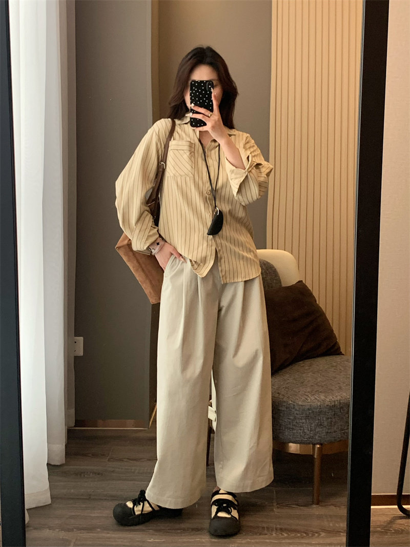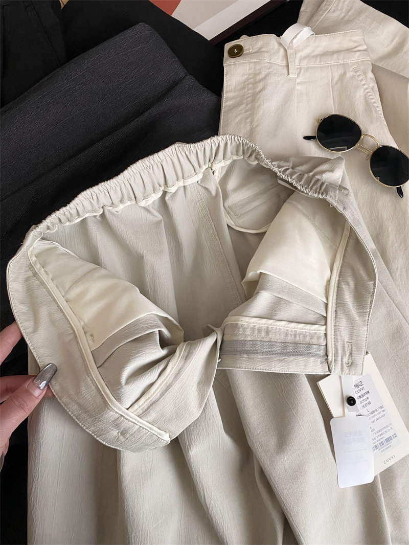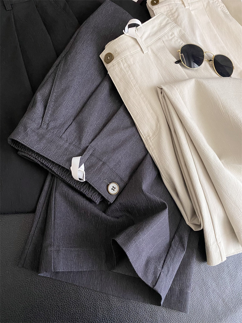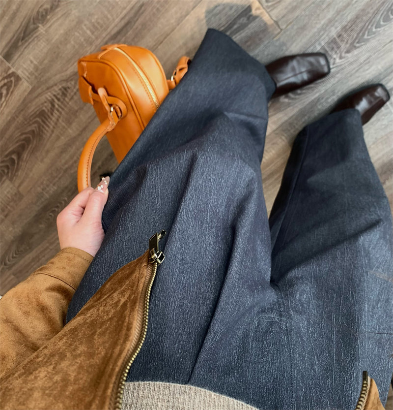 클래식 리턴 두부 바지! 높은 짠 고밀도 세척 코튼 힙을 덮는 스트레이트 캐주얼 팬츠 봄 높은 허리 자른 바지